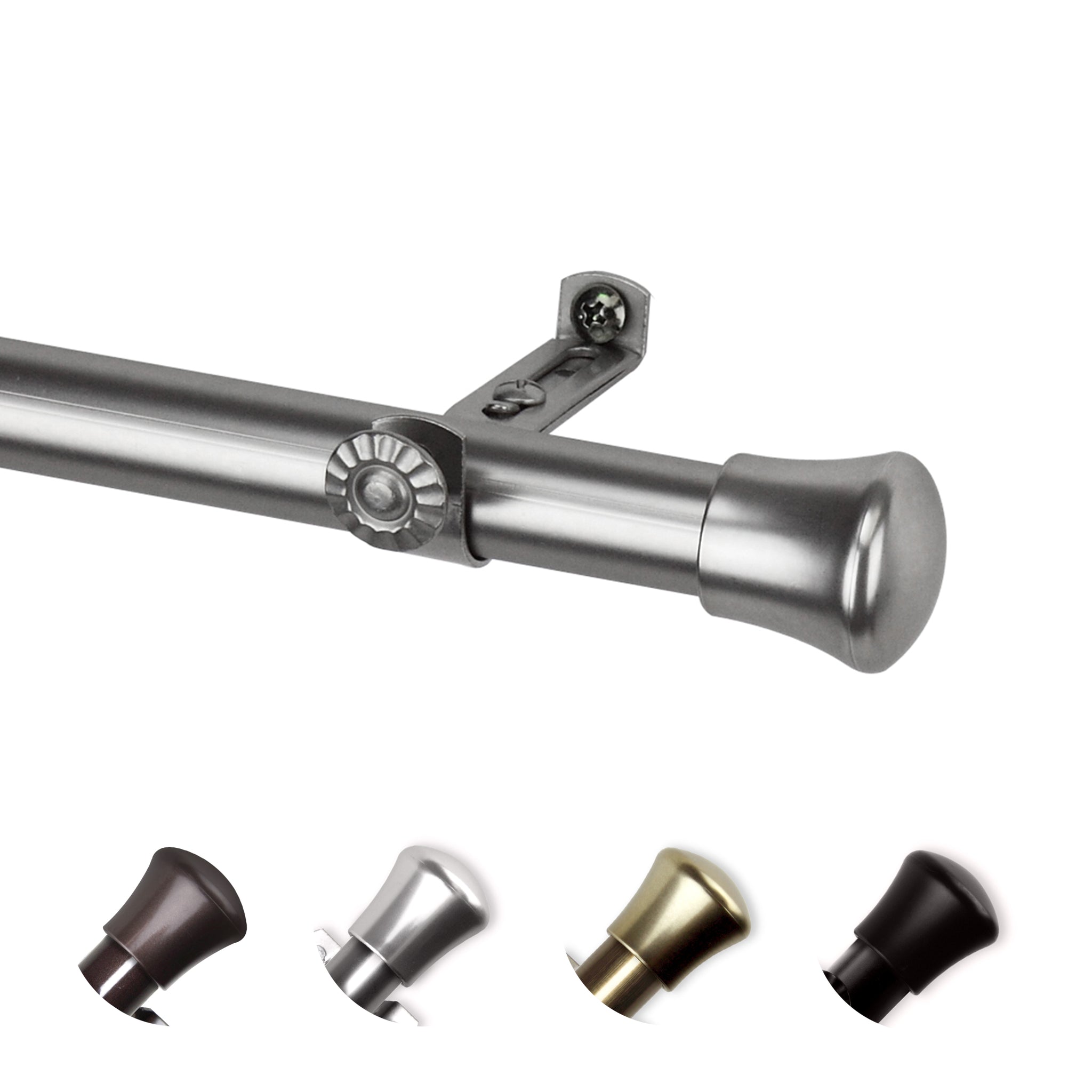 Includes one 13/16" adjustable high-quality steel telescoping pole, two basic end caps, brackets, and mounting hardware
