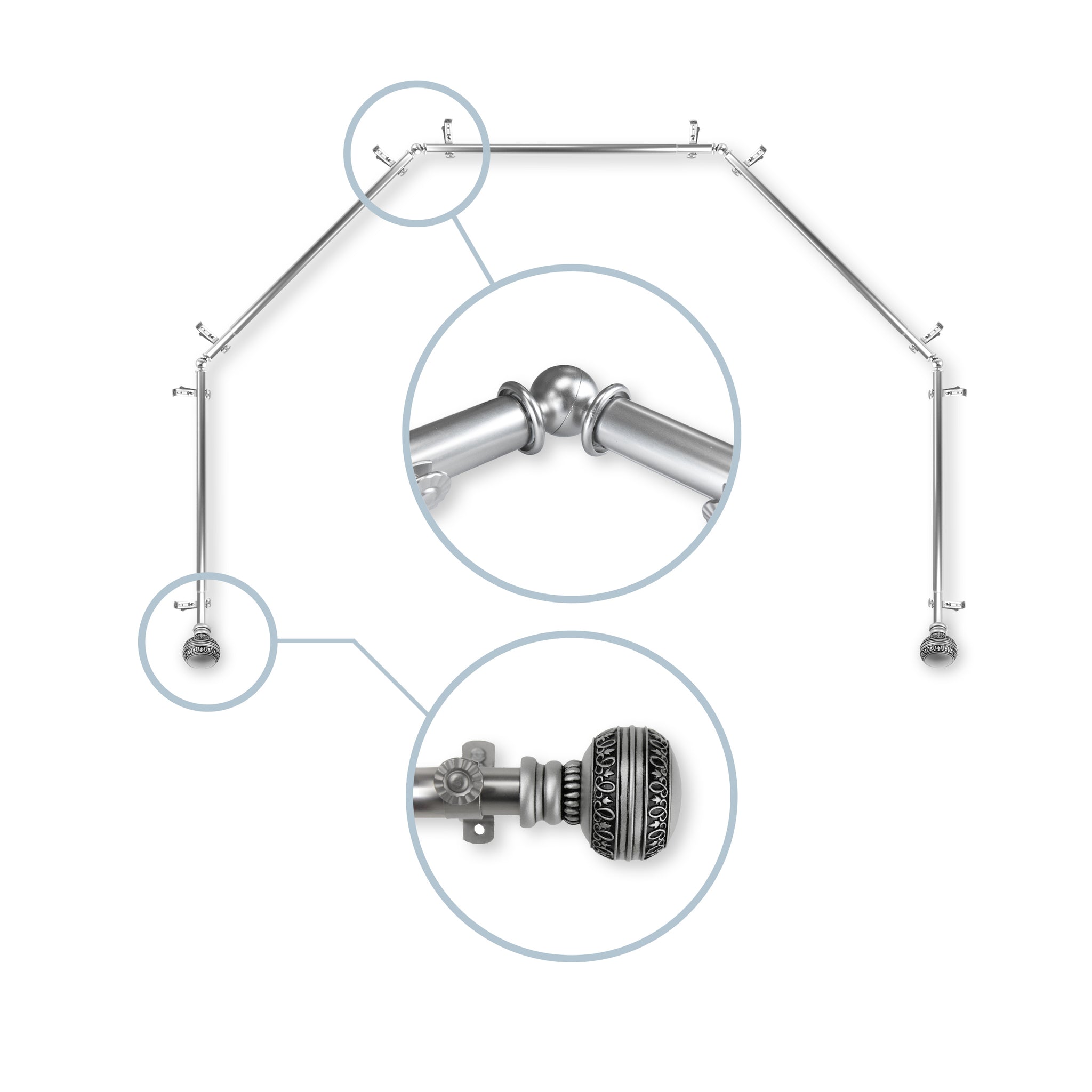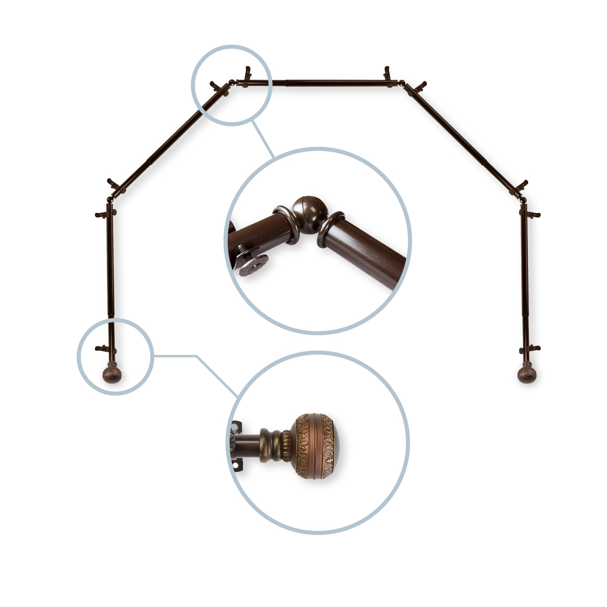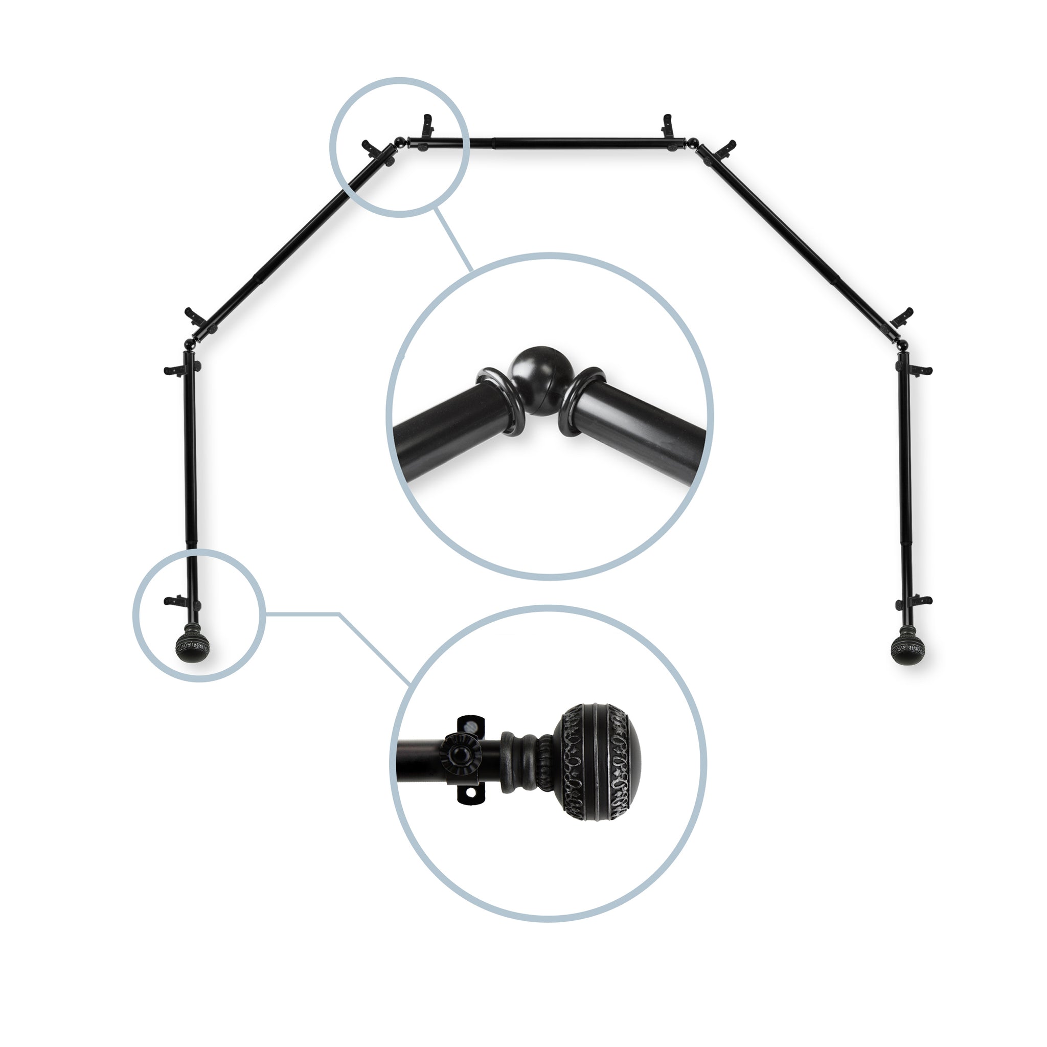Includes five 13/16" diameter adjustable poles, one pair of decorative finials, 10 single brackets, 4 corner connectors, and mounting hardware
