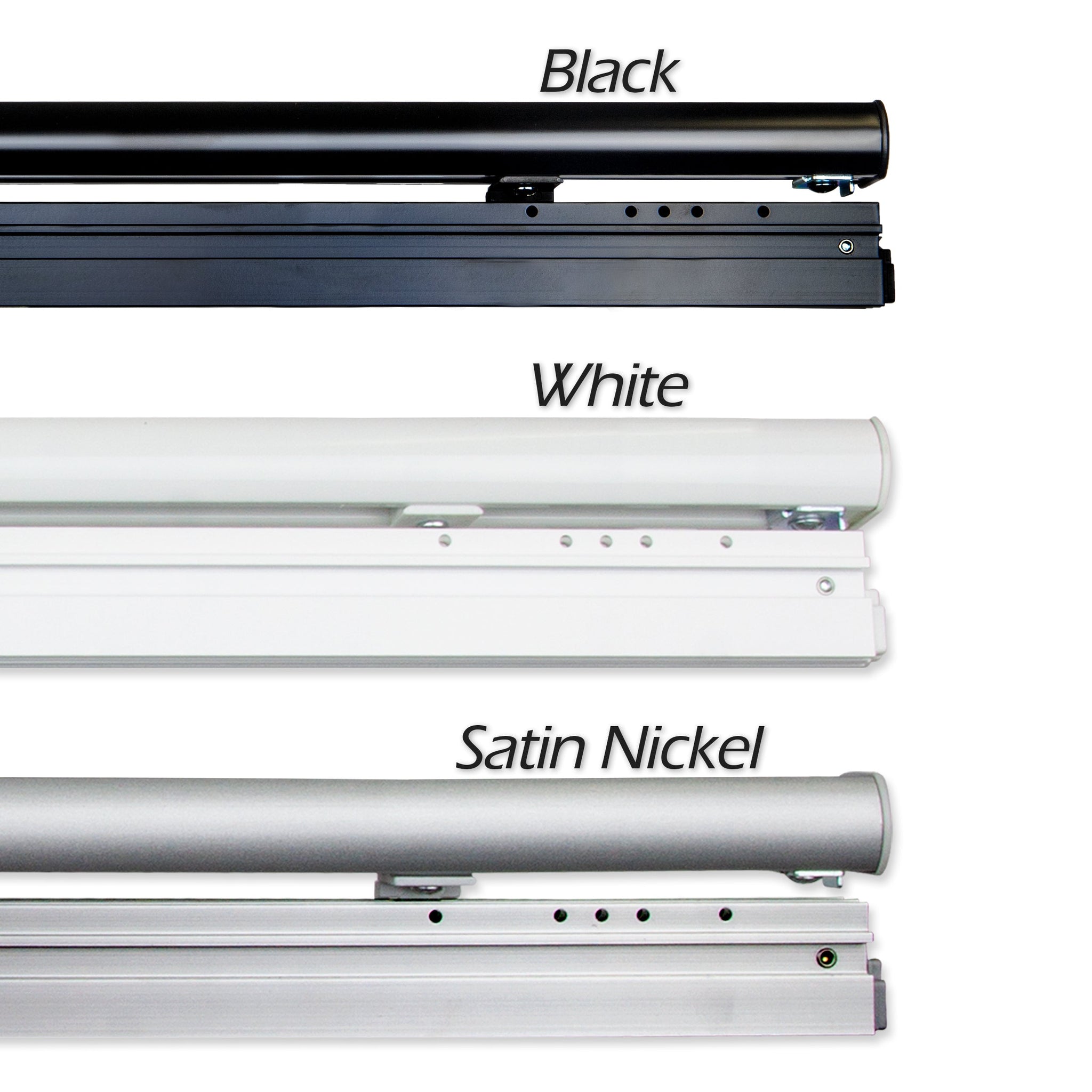 Panel track is available in Satin Nickel, White, or Black; Panel height is available in 91.4" or 116"