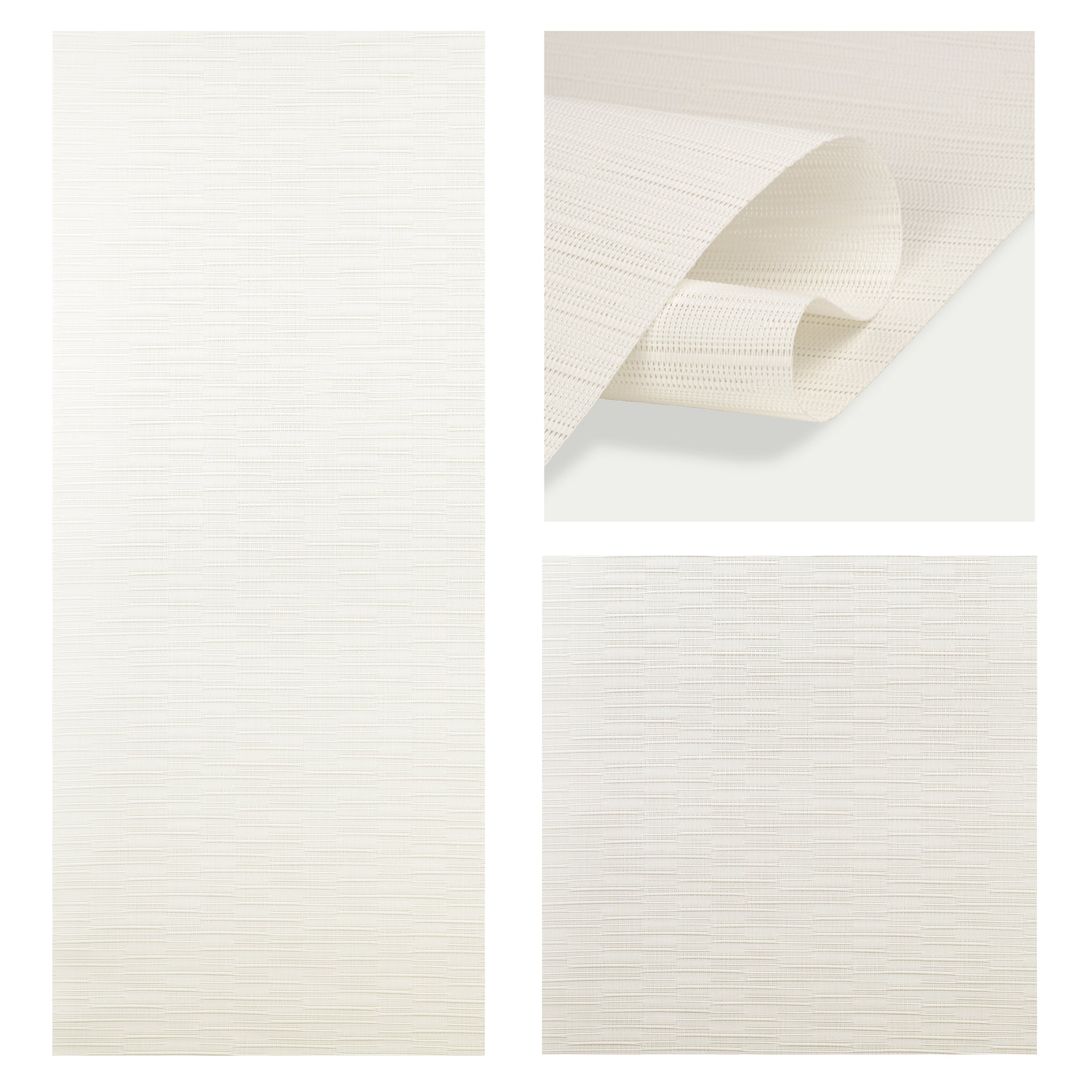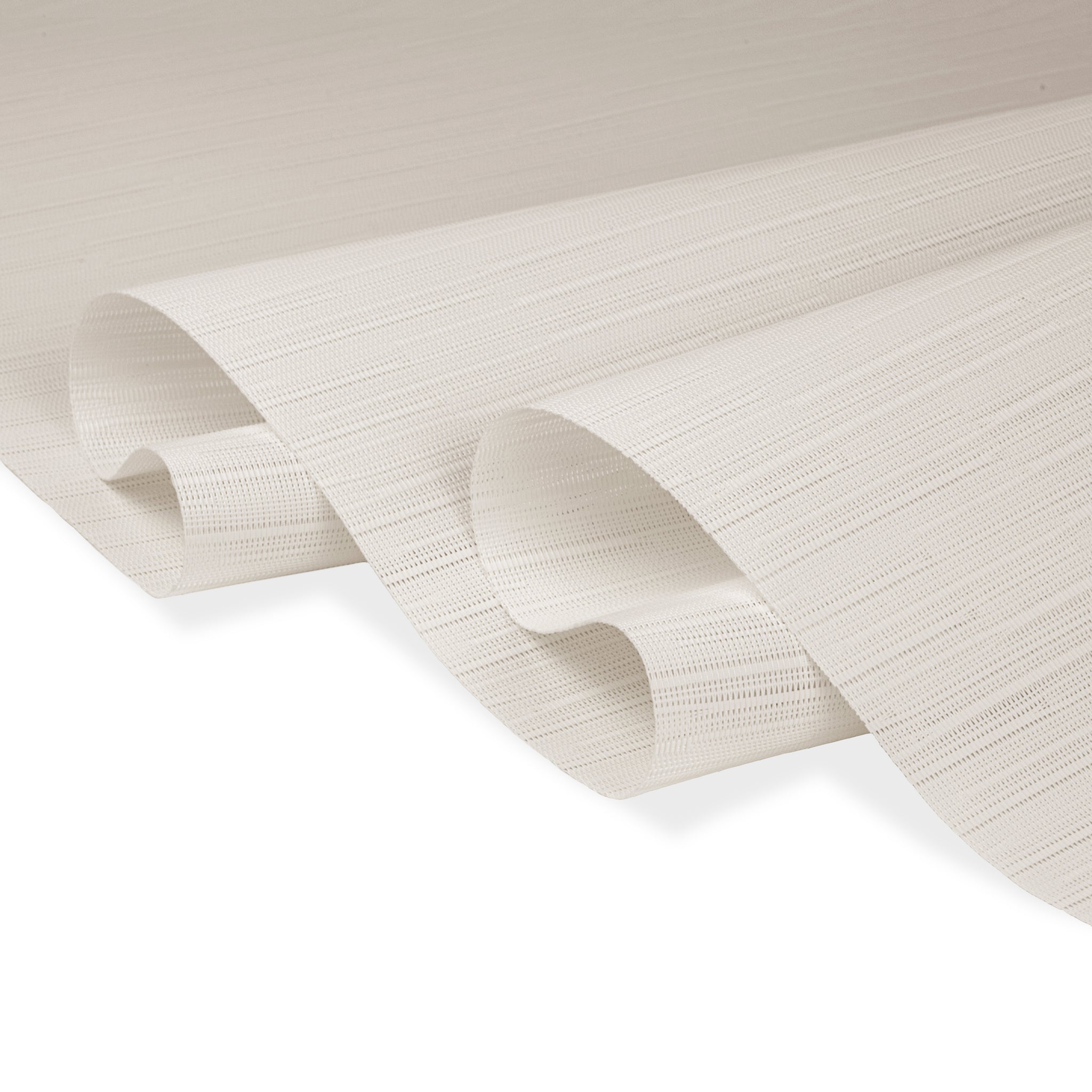 The panels are made from 69% Vinyl 31% Polyester; Light filtering shade, blocks the light by 50%; Fire resistant