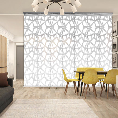 Shattered 7-Panel Single Rail Panel Track Extendable 58"-98"W, Panel width 15.75" - 50% LIGHT-FILTERING