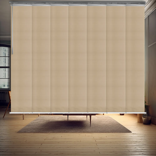 Dunmore Cream 7-Panel Single Rail Panel Track Extendable 58"-98"W x 91.4"H, Panel width 15.75" - 80% LIGHT-FILTERING