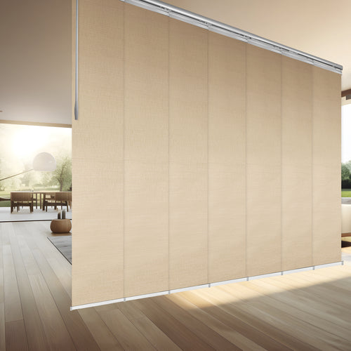Cornsilk 7-Panel Single Rail Panel Track Extendable 58"-98"W x 91.4"H, Panel width 15.75" - 80% LIGHT-FILTERING