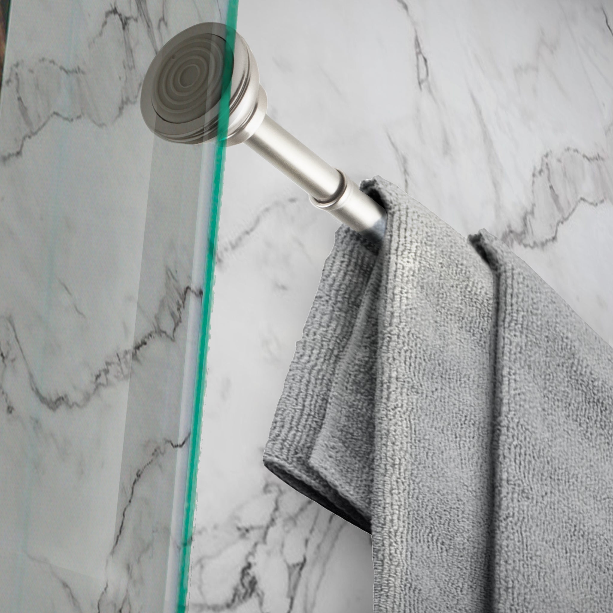 Steel rod; Plastic ends hold the rod securely in place without damaging the mounting surface
