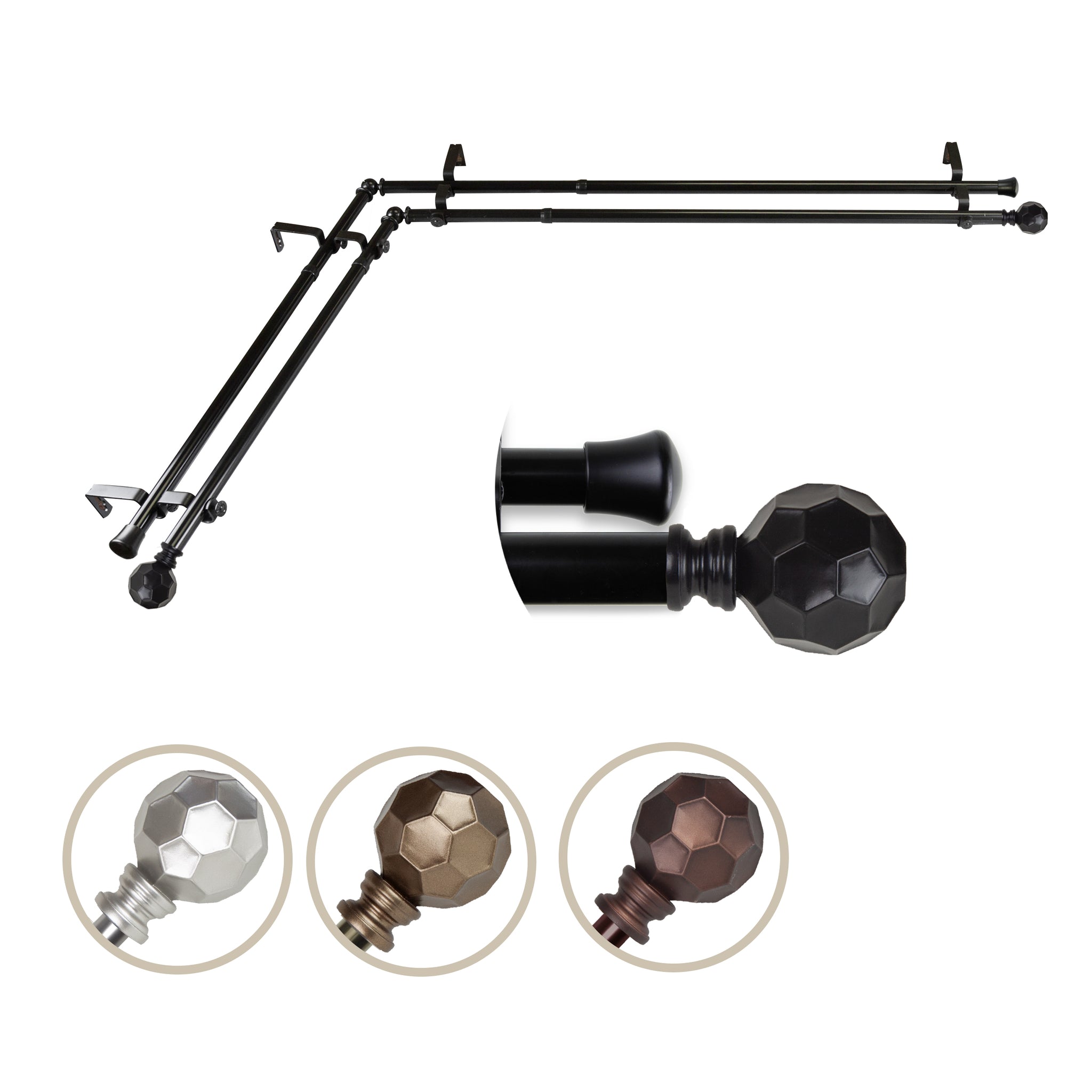 Includes four 13/16" diameter adjustable poles, one pair of decorative finials, one pair of end caps, two corner connectors, brackets, and mounting hardware