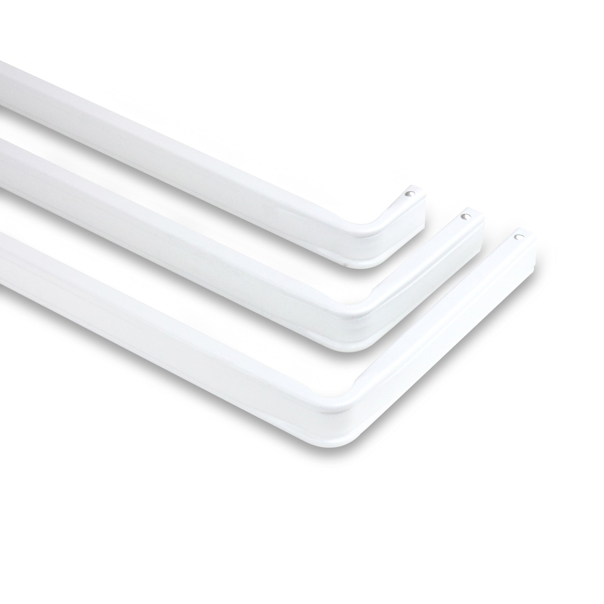 Includes one heavy duty triple lockseam curtain rod 3/4 inch tall, brackets, and mounting hardware