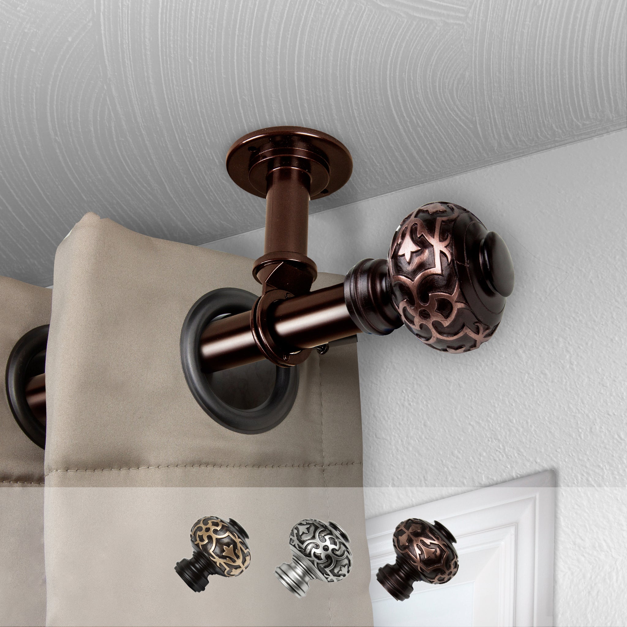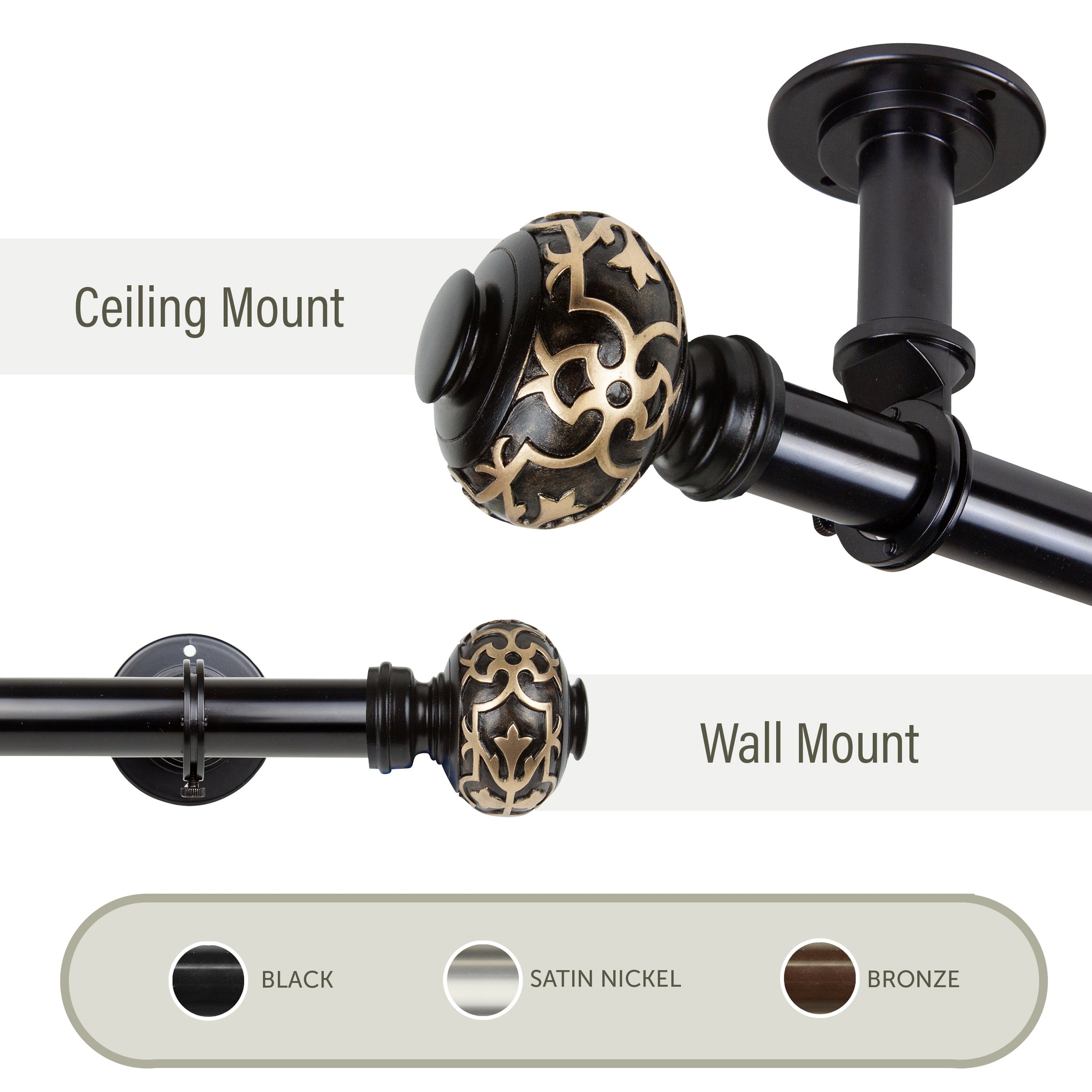 Include one 1" diameter adjustable pole, decorative finials, brackets, and mounting hardware
