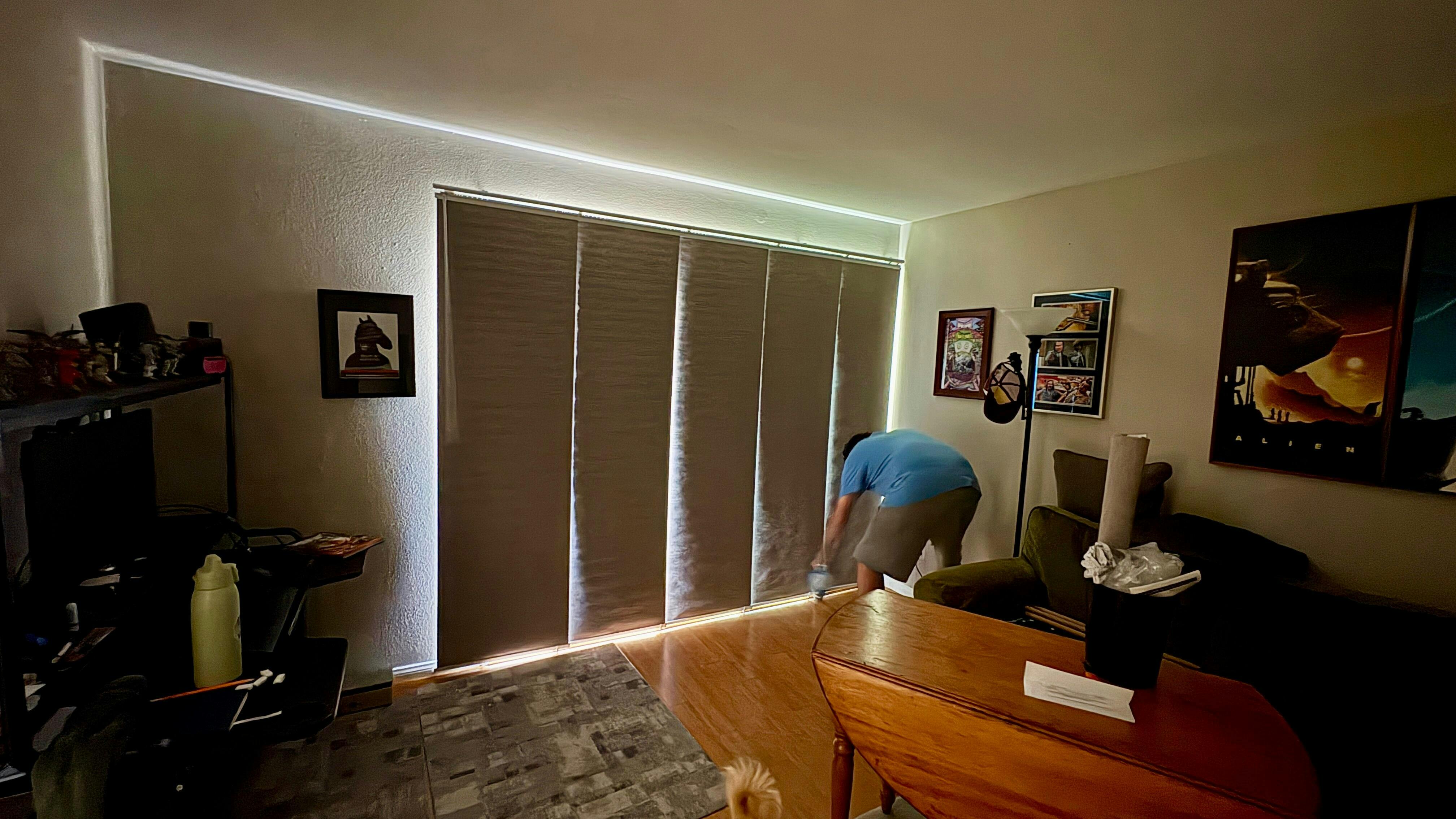 Patented Sliders Design: Durable and smooth operation, the patented sliders are made with aluminum and fitted with bearings that allow the sliders to glide across the rail. The sliders are also stacked closer together than conventional panel tracks, which reduces light bleed coming from the gaps between panels.