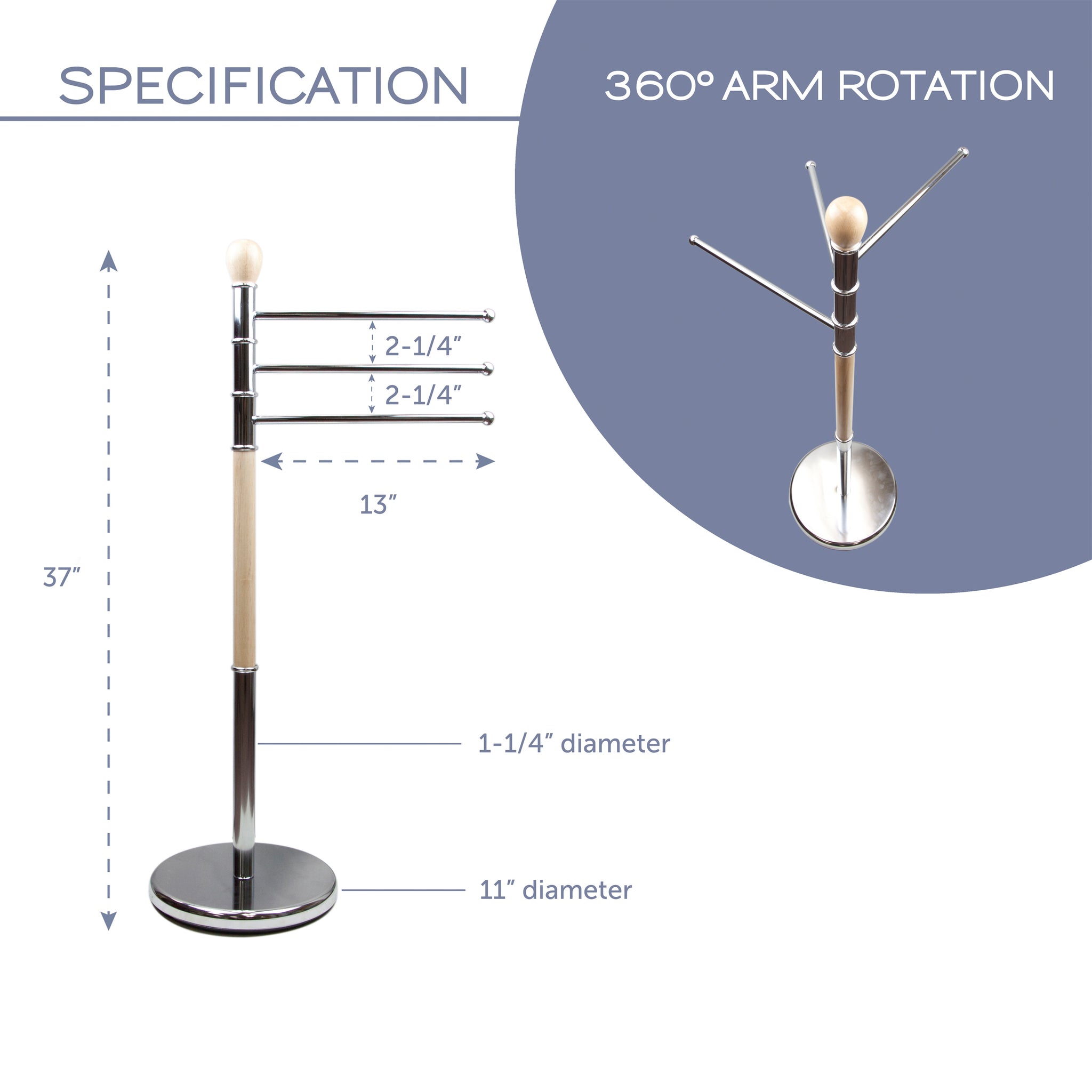 Free-standing Triple Hand Towel Bar Stand to provide additional organization space for your bathroom or more