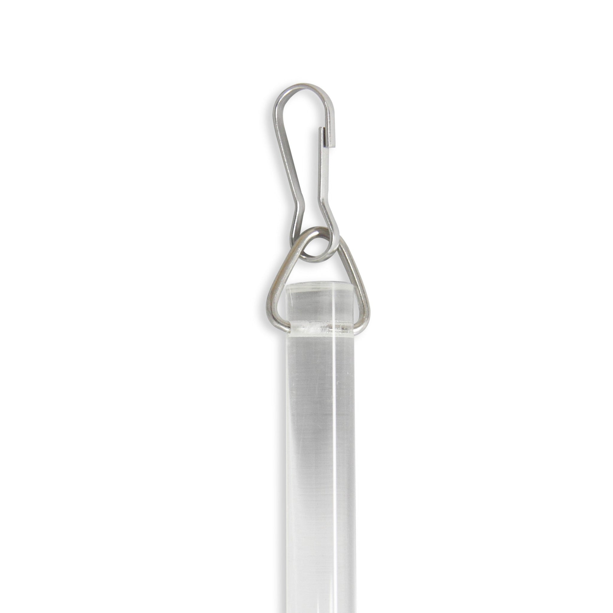 Includes four pieces of 1/2" smooth clear PVC baton with metal snaps