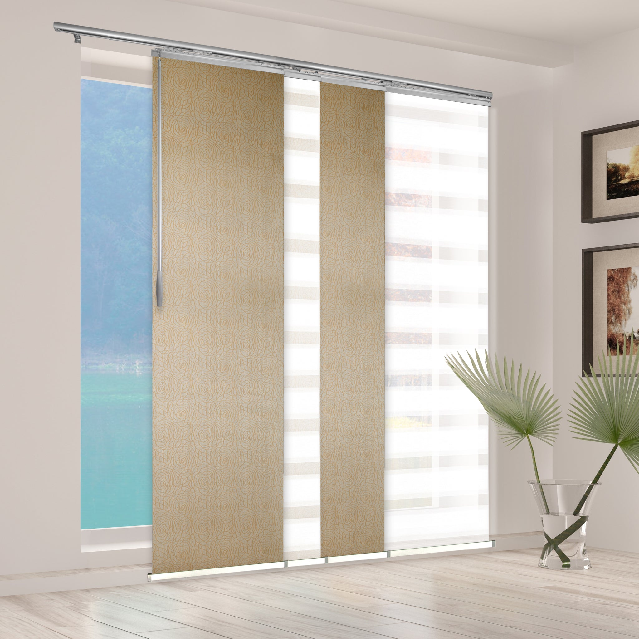 Patented Sliders Design: Durable and smooth operation, the patented sliders are made with aluminum and fitted with bearings that allow the sliders to glide across the rail. The sliders are also stacked closer together than conventional panel tracks, which reduces light bleed coming from the gaps between panels.
