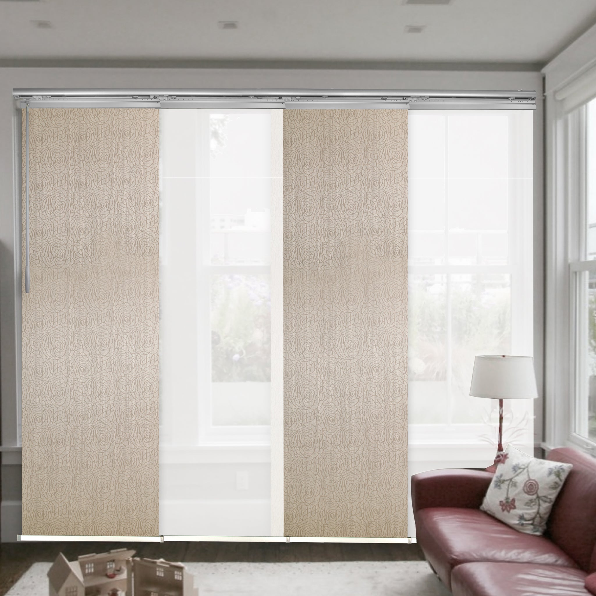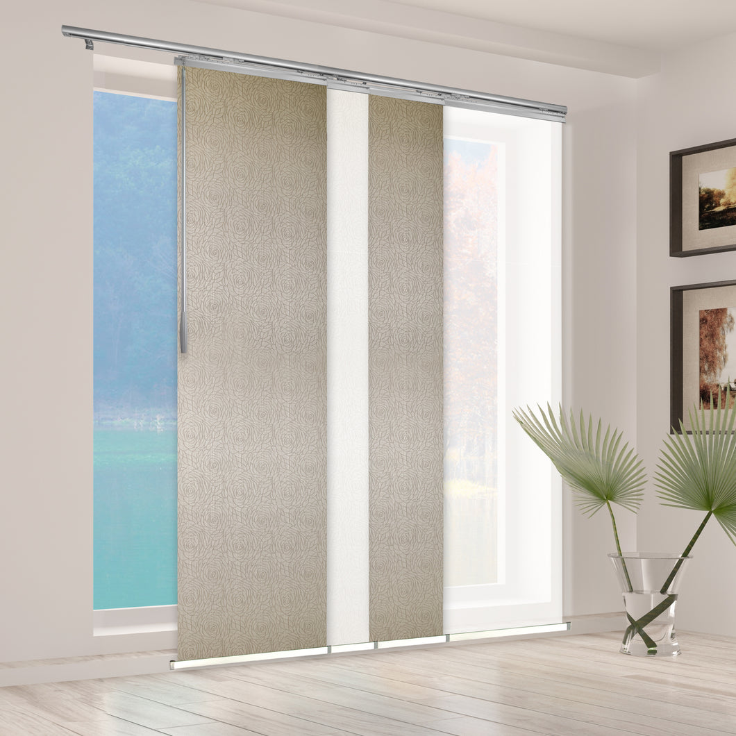 Patented Sliders Design: Durable and smooth operation, the patented sliders are made with aluminum and fitted with bearings that allow the sliders to glide across the rail. The sliders are also stacked closer together than conventional panel tracks, which reduces light bleed coming from the gaps between panels.