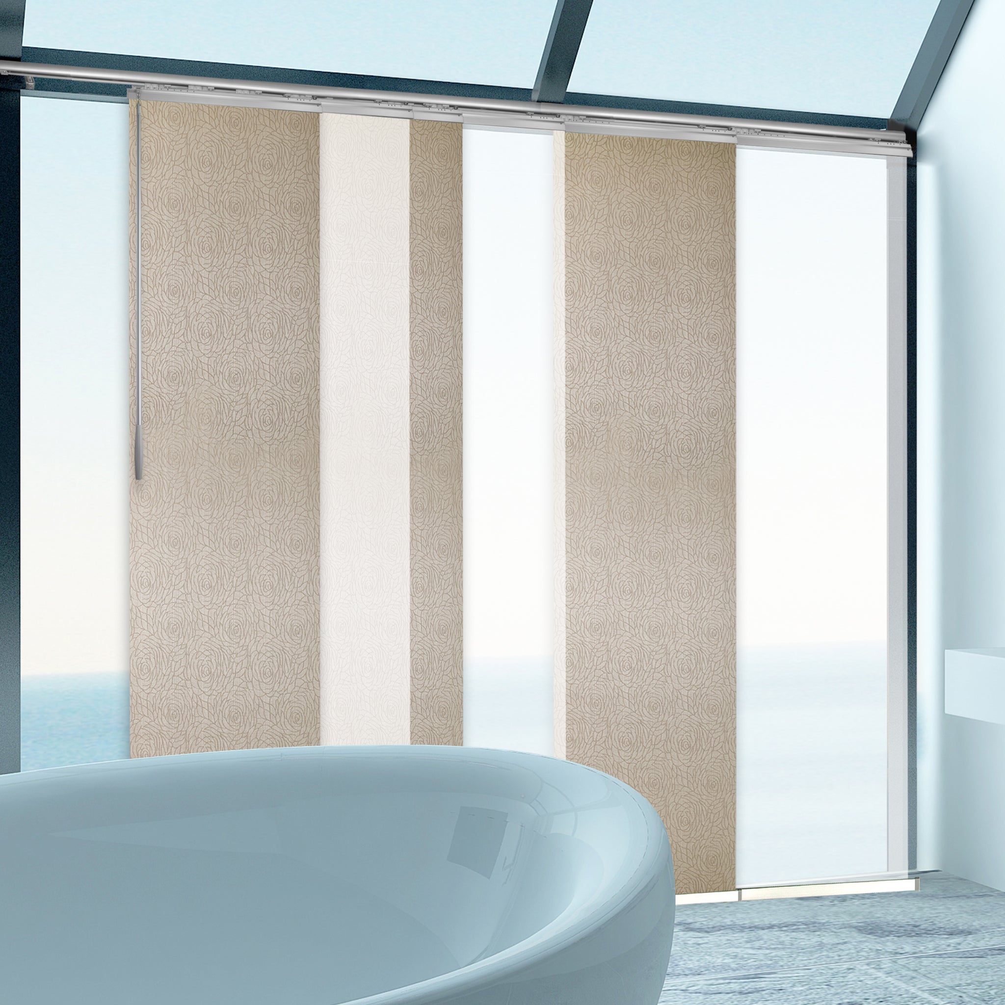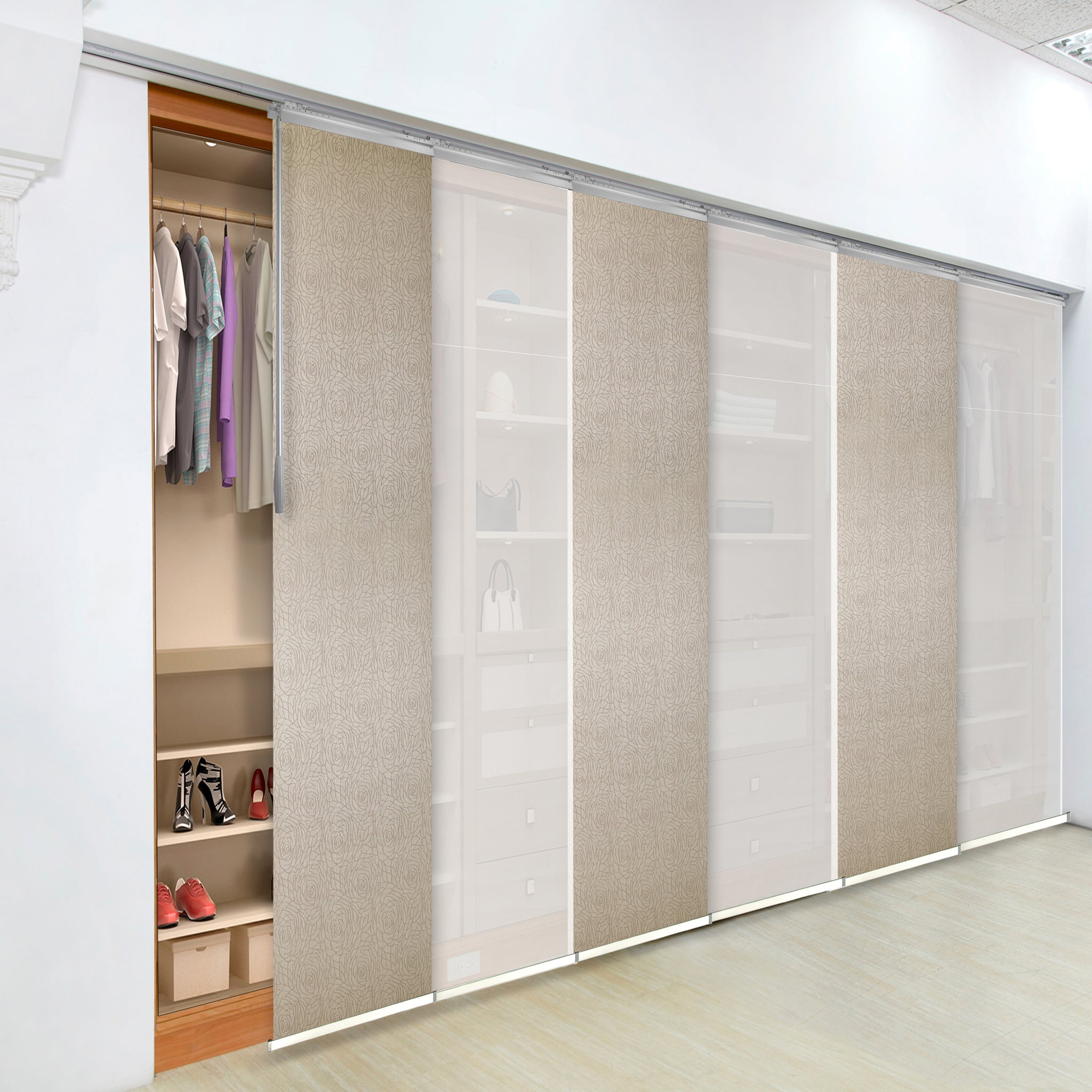 Patented Sliders Design: Durable and smooth operation, the patented sliders are made with aluminum and fitted with bearings that allow the sliders to glide across the rail. The sliders are also stacked closer together than conventional panel tracks, which reduces light bleed coming from the gaps between panels.