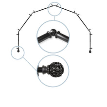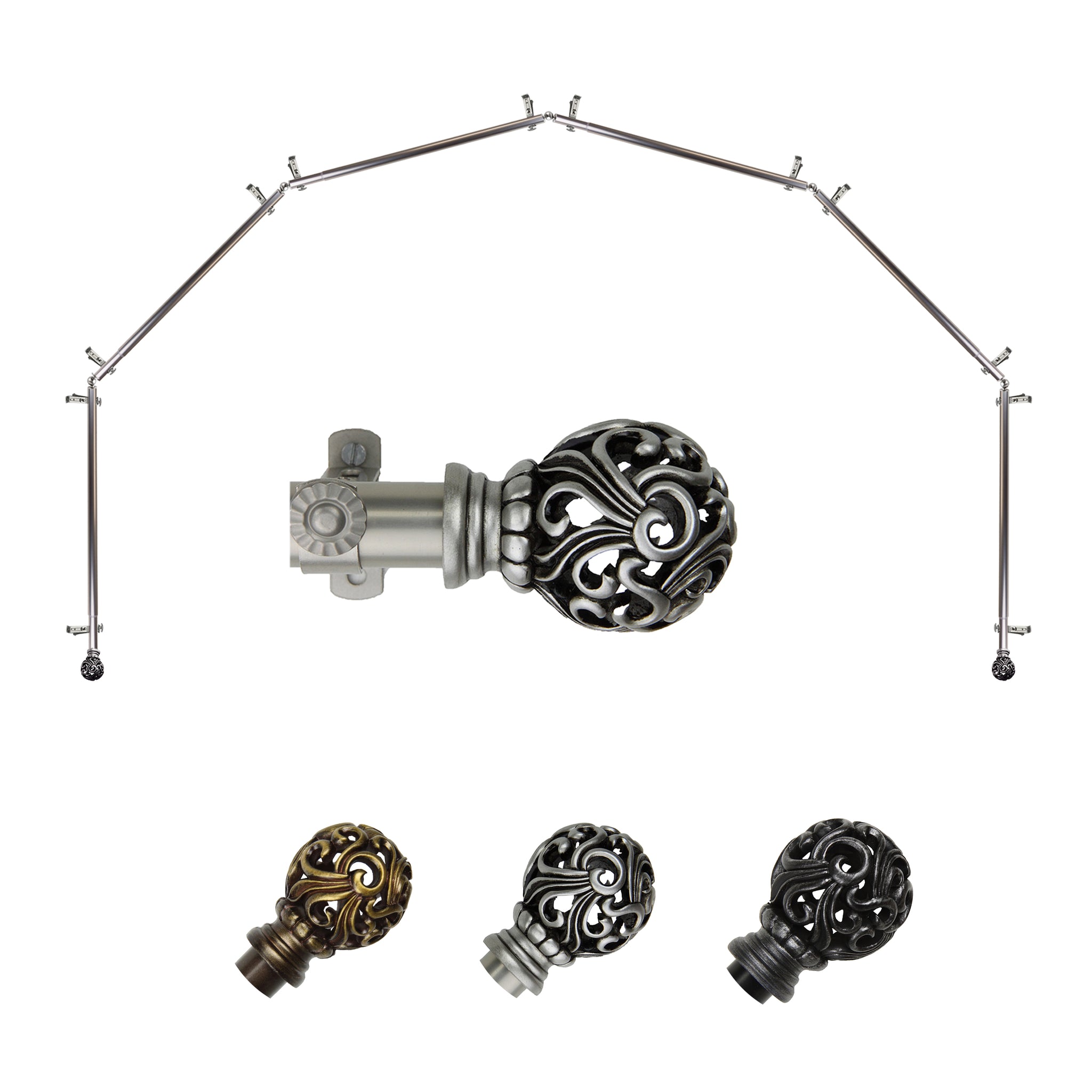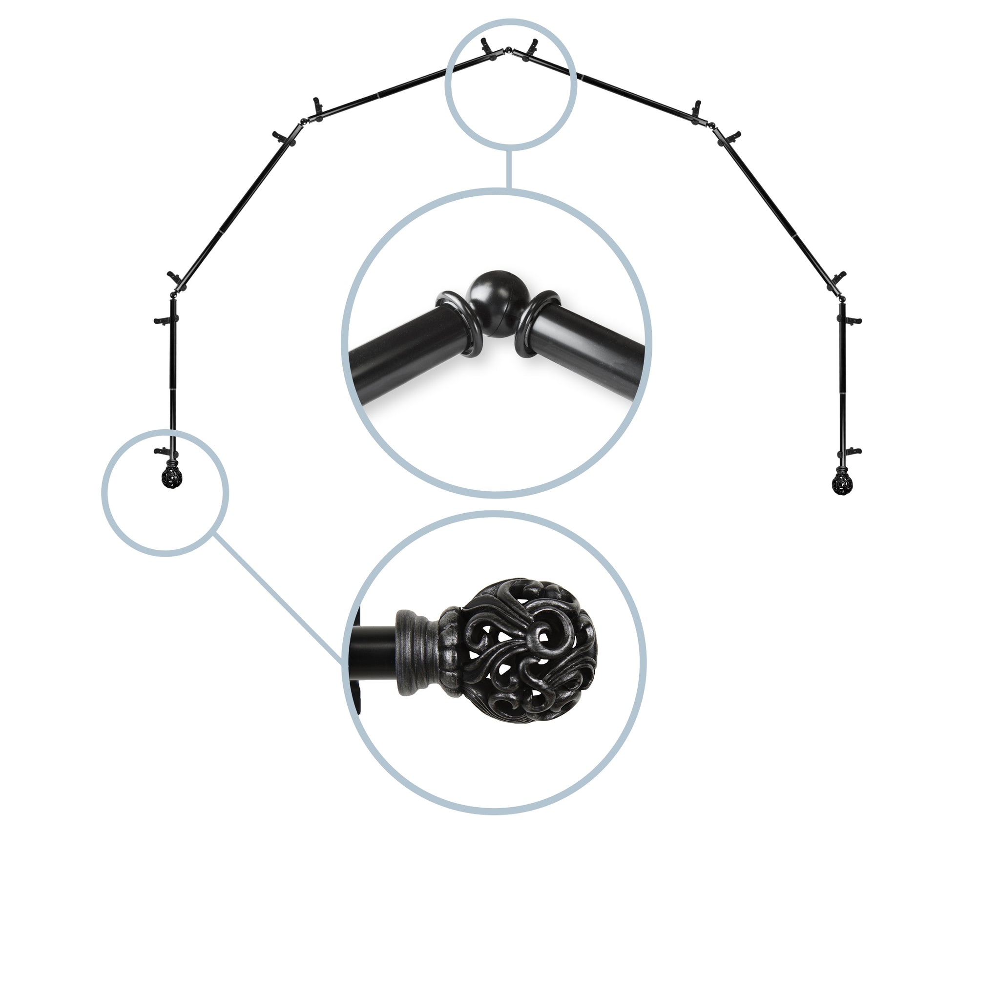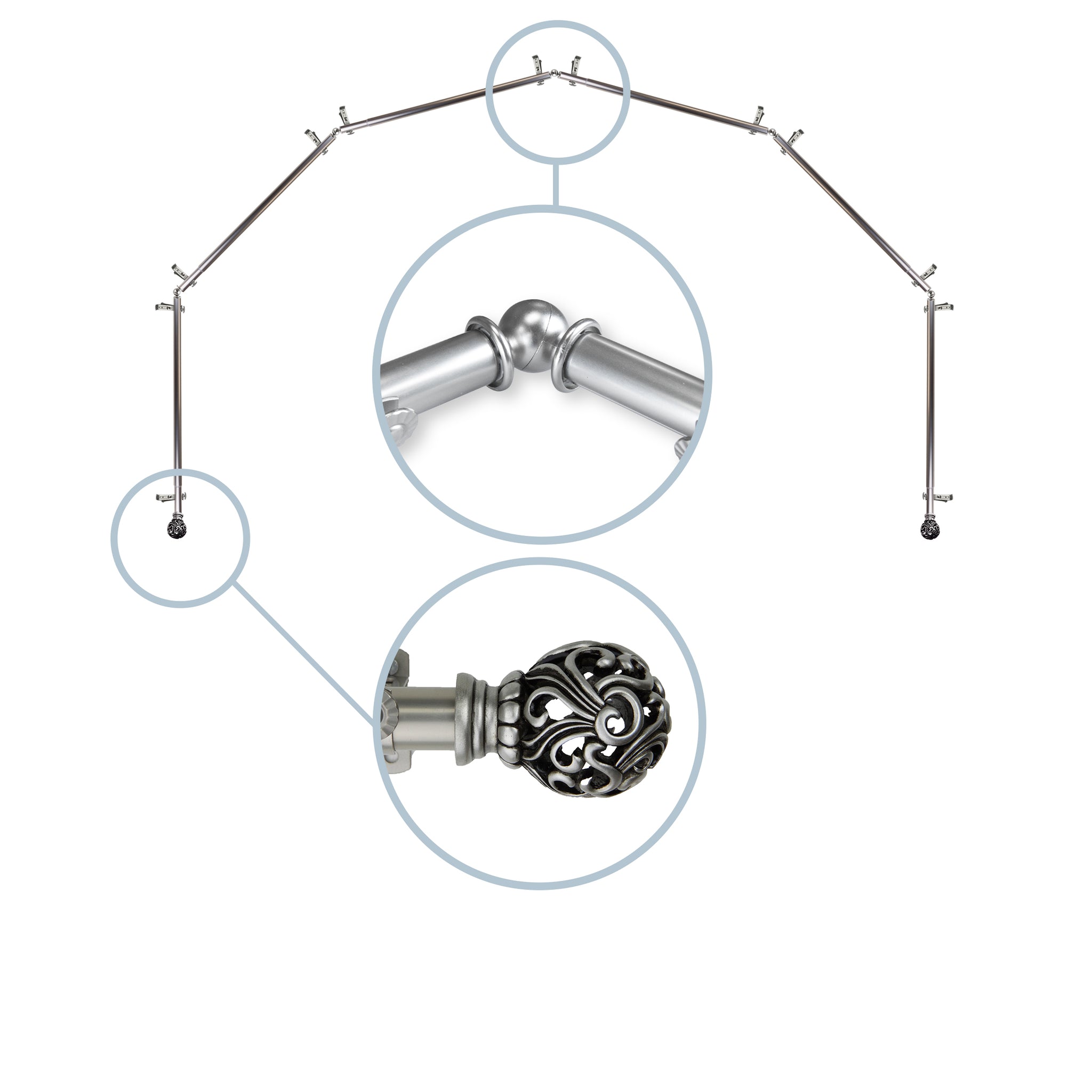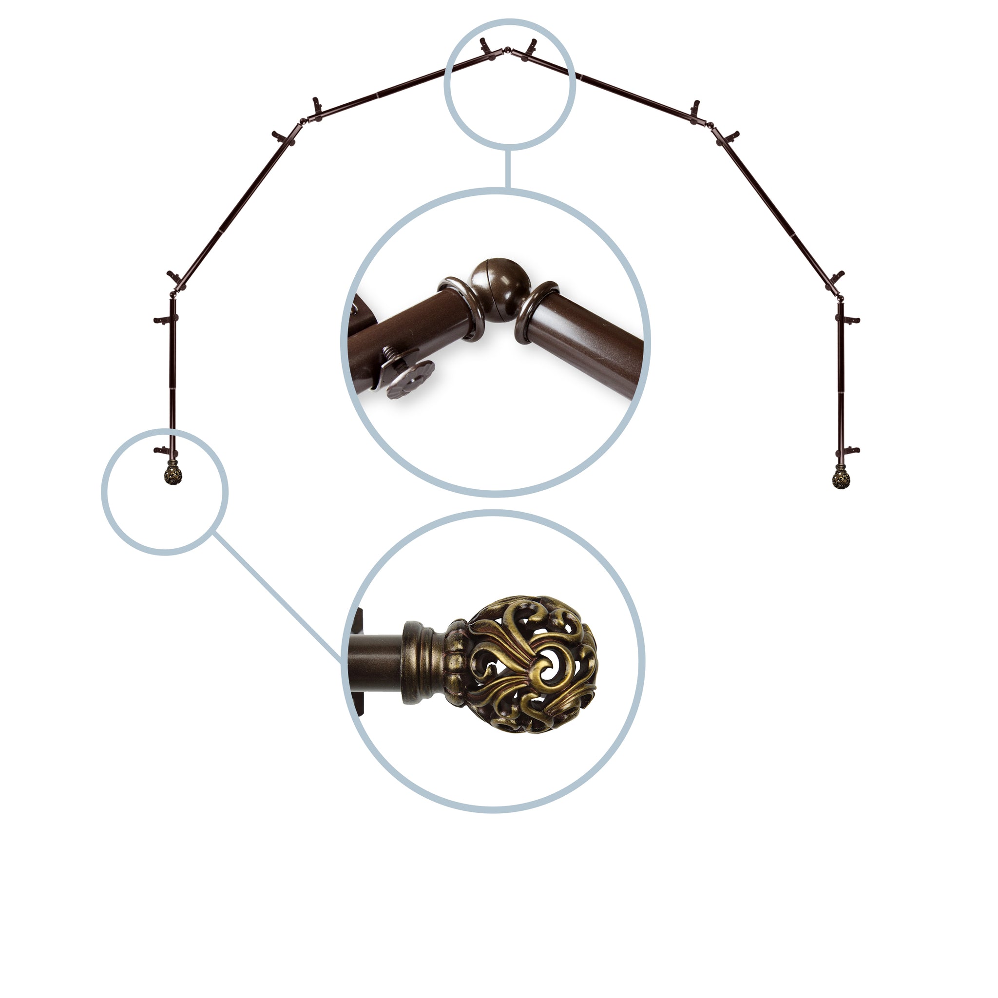 Includes six 13/16" diameter adjustable poles, one pair of decorative finials, 12 single brackets, 5 corner connectors, and mounting hardware