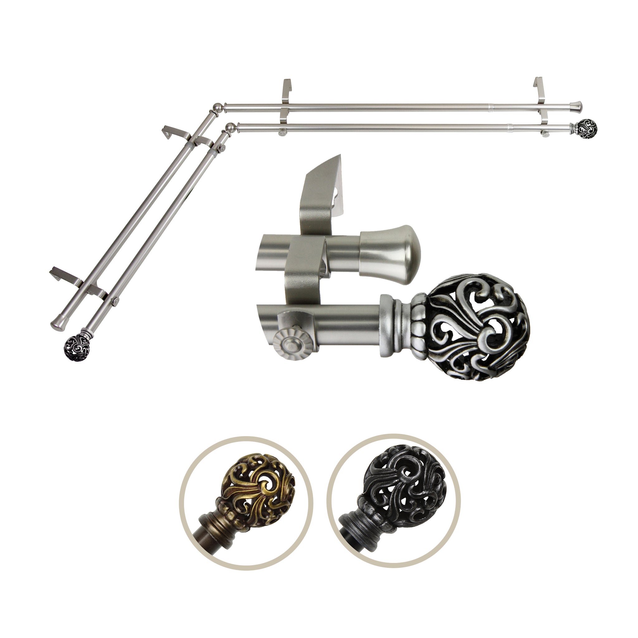 Includes four 13/16" diameter adjustable poles, one pair of decorative finials, one pair of end caps, two corner connectors, brackets, and mounting hardware