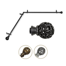 Includes two 13/16" diameter adjustable poles, one pair of decorative finials, one corner connector, brackets and mounting hardware