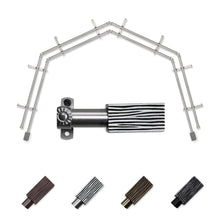 Includes eight 13/16" diameter adjustable poles, one pair of decorative finials, 8 double brackets, 6 corner connectors, and mounting hardware