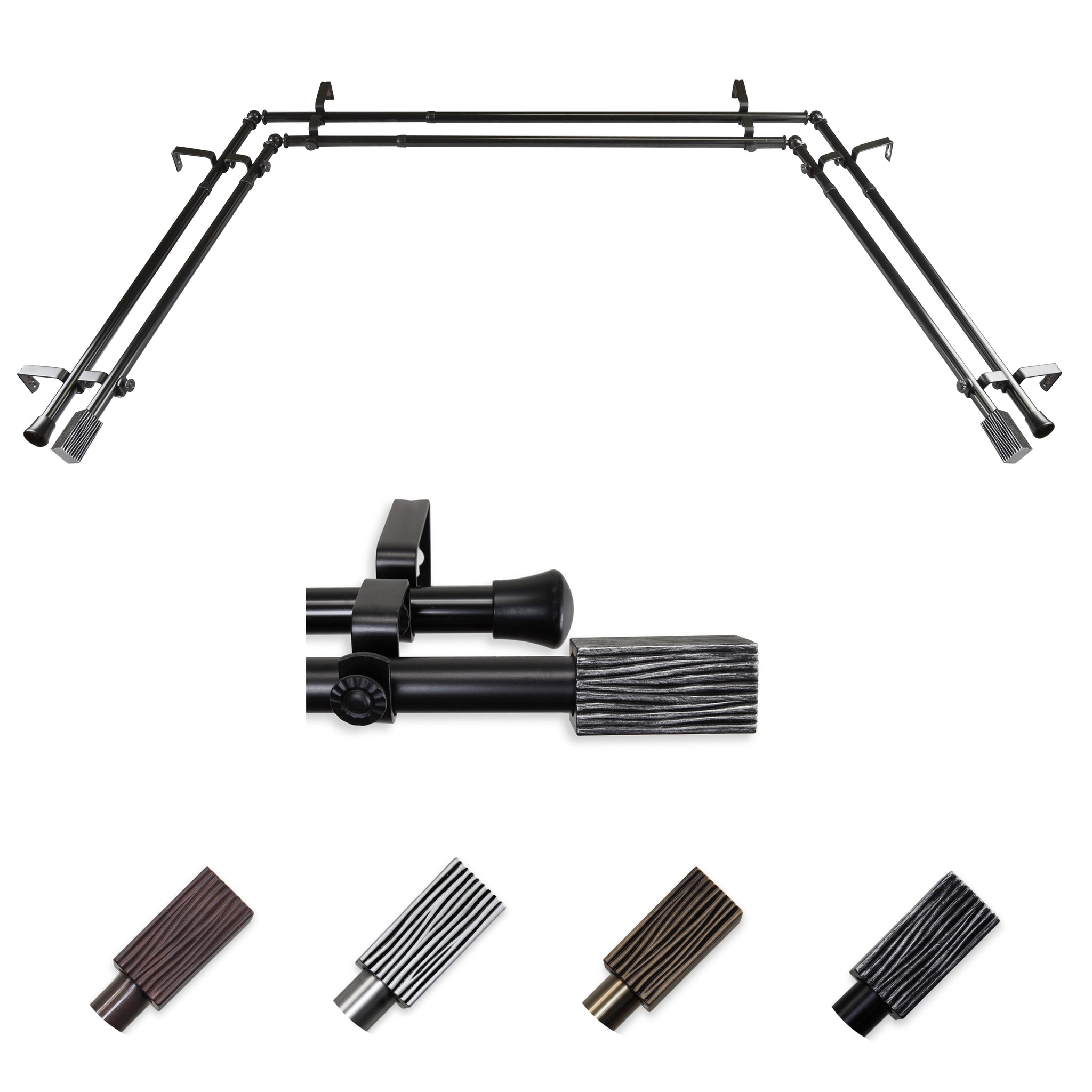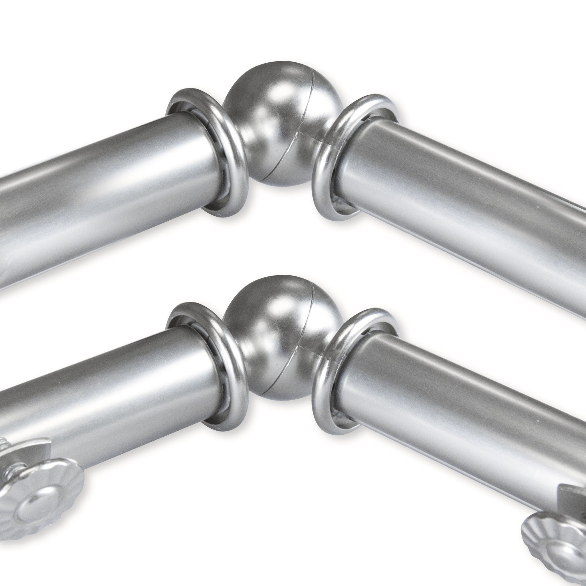 Includes four 13/16" diameter adjustable 20-36 inch poles, two adjustable 38-72 inch poles, one pair of finials, 6 brackets, 4 corner connectors, and mounting hardware