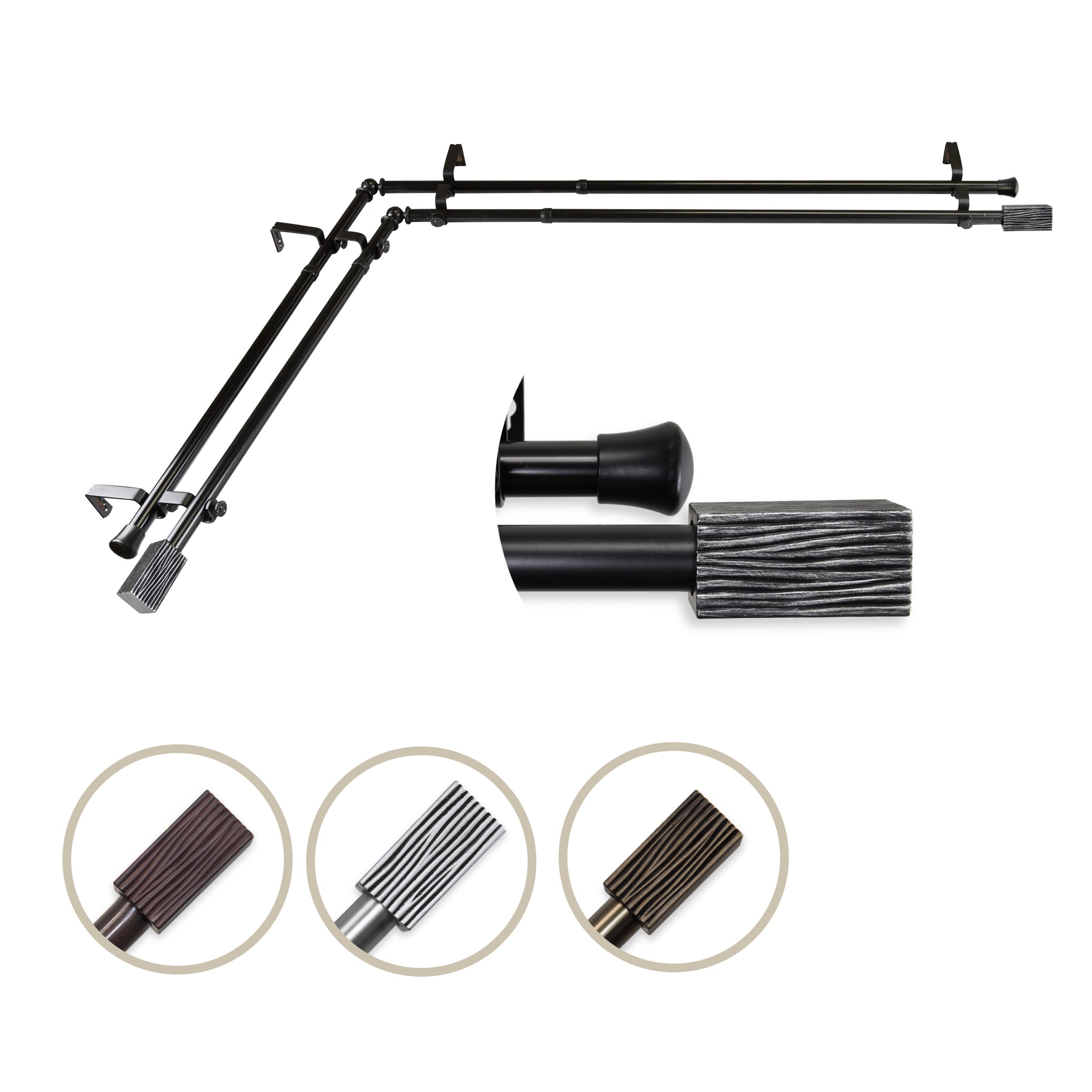 Includes four 13/16" diameter adjustable poles, one pair of decorative finials, one pair of end caps, two corner connectors, brackets, and mounting hardware