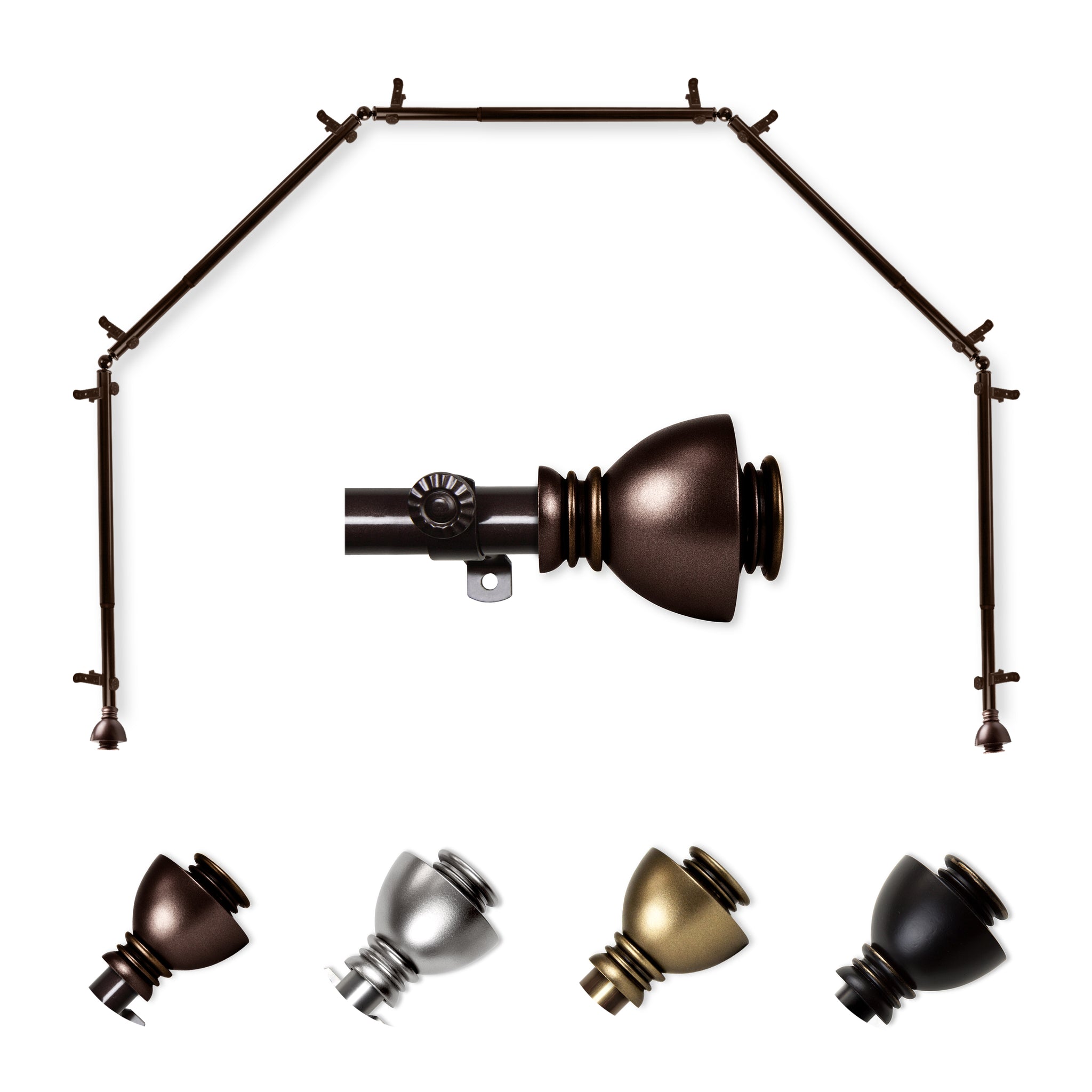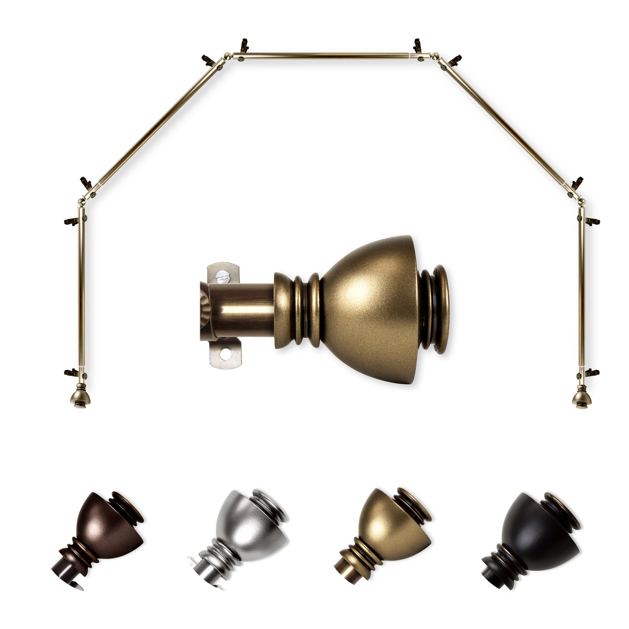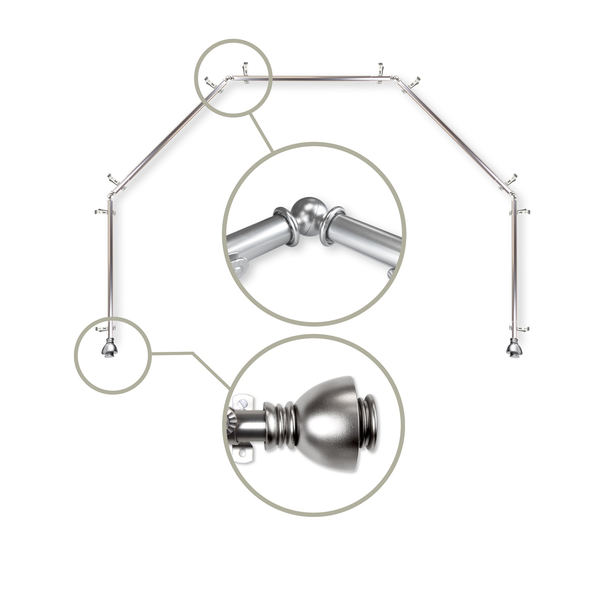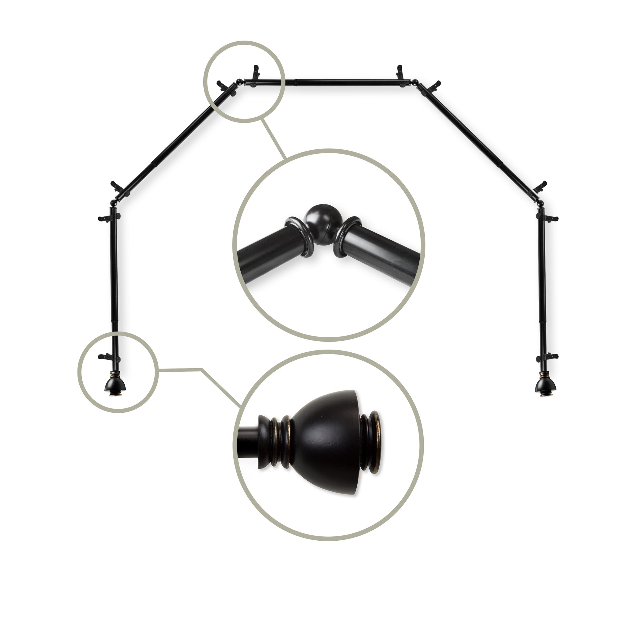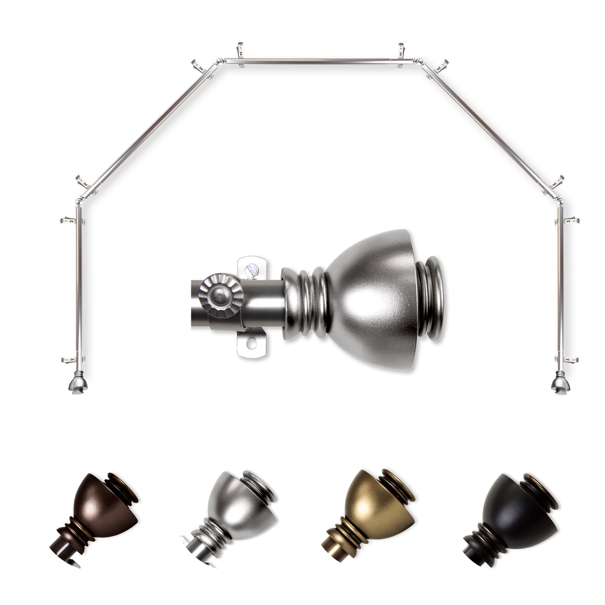 Includes five 13/16" diameter adjustable poles, one pair of decorative finials, 10 single brackets, 4 corner connectors, and mounting hardware