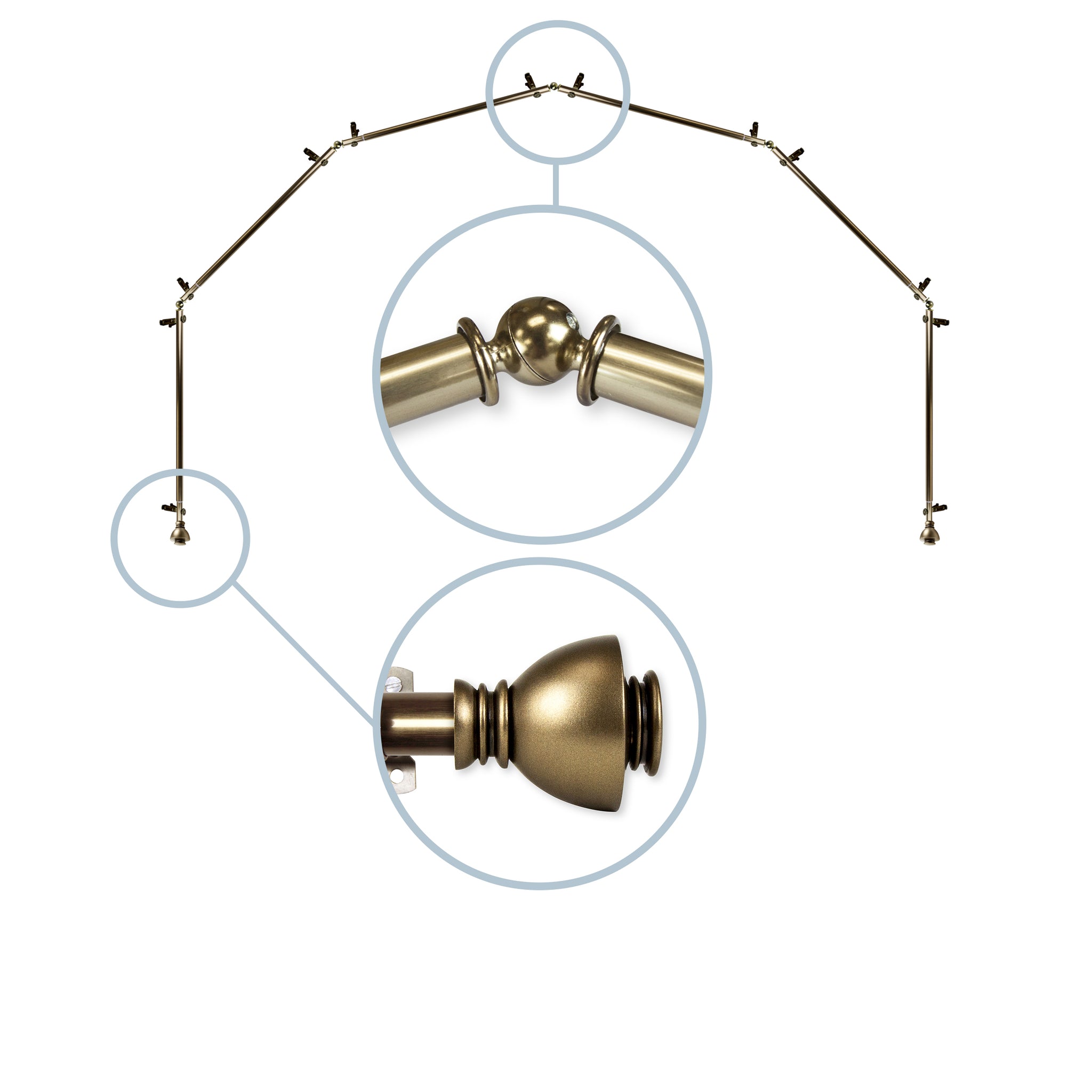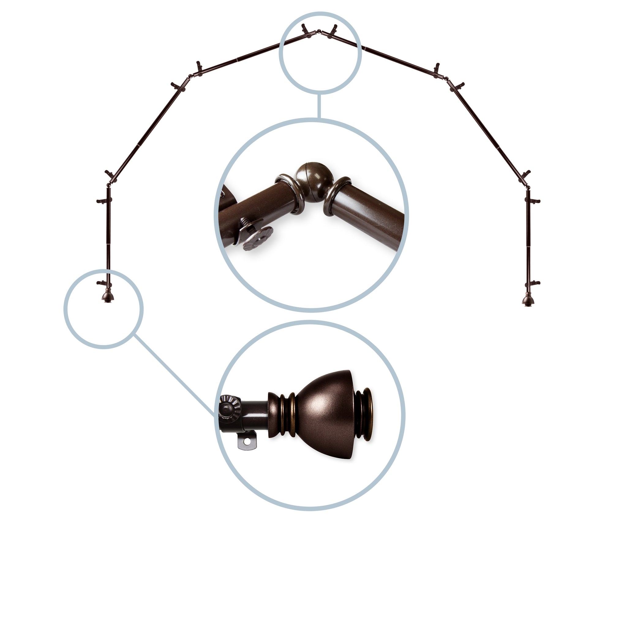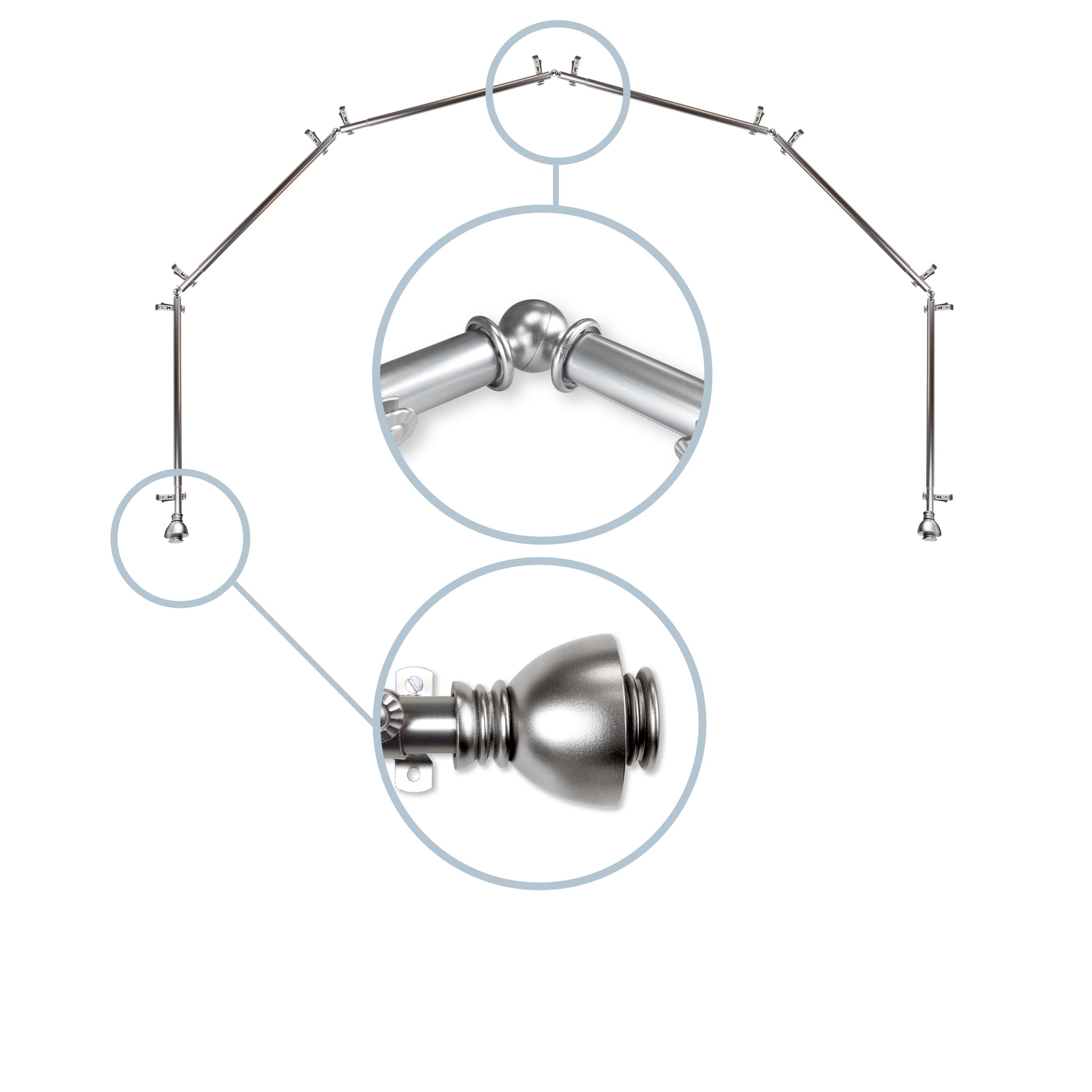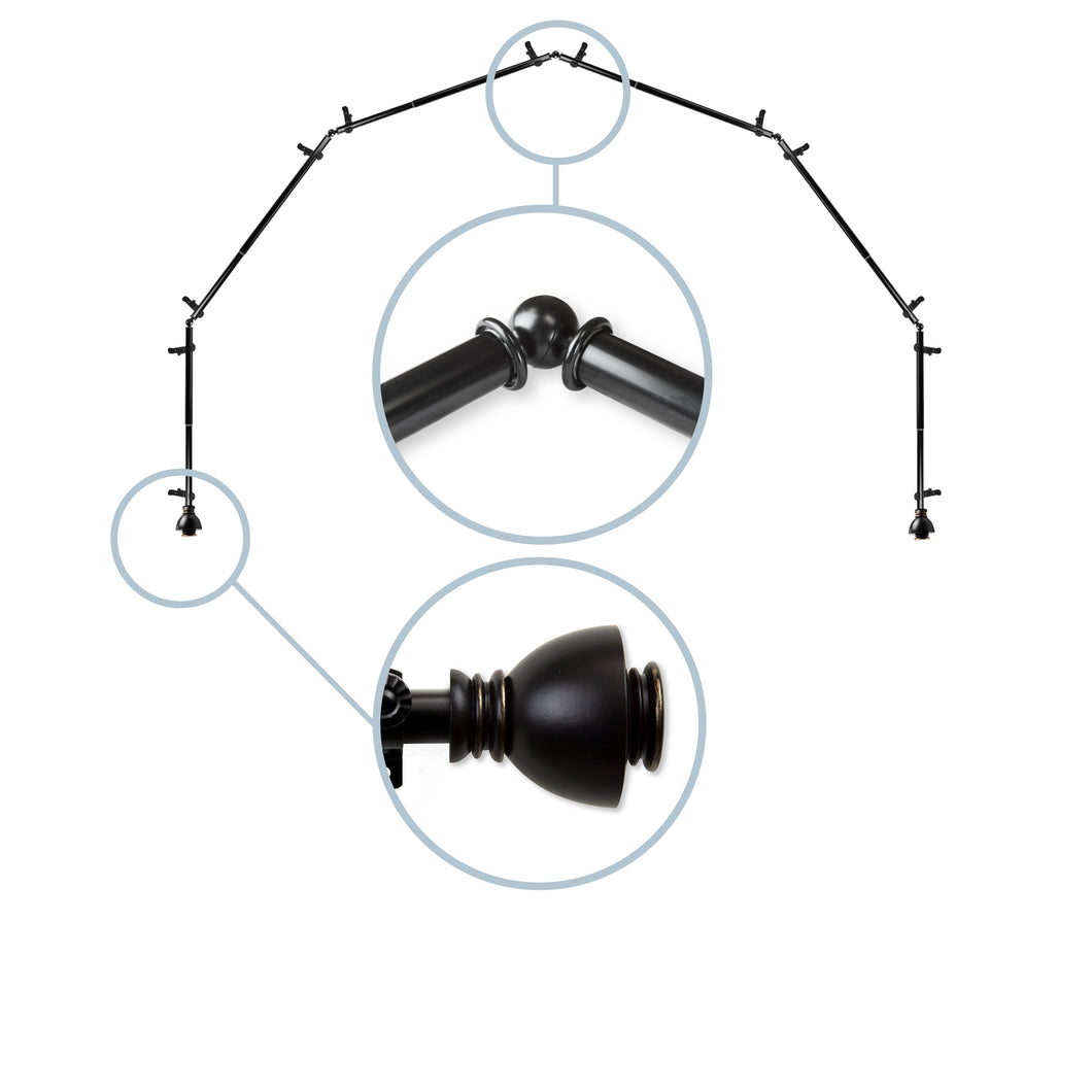 Includes six 13/16" diameter adjustable poles, one pair of decorative finials, 12 single brackets, 5 corner connectors, and mounting hardware