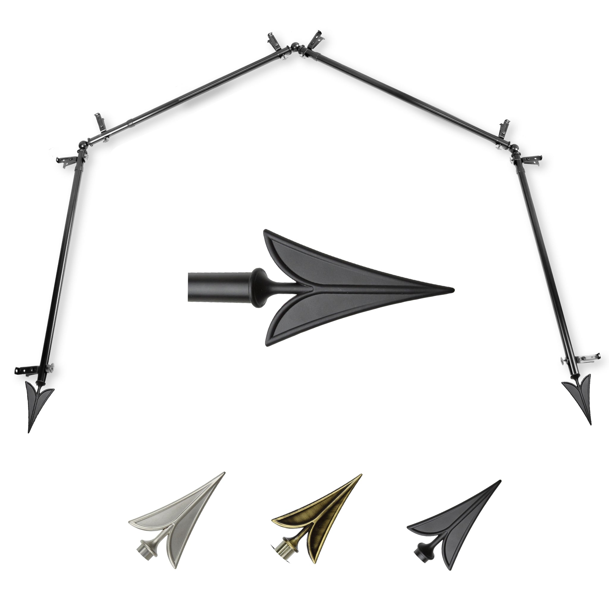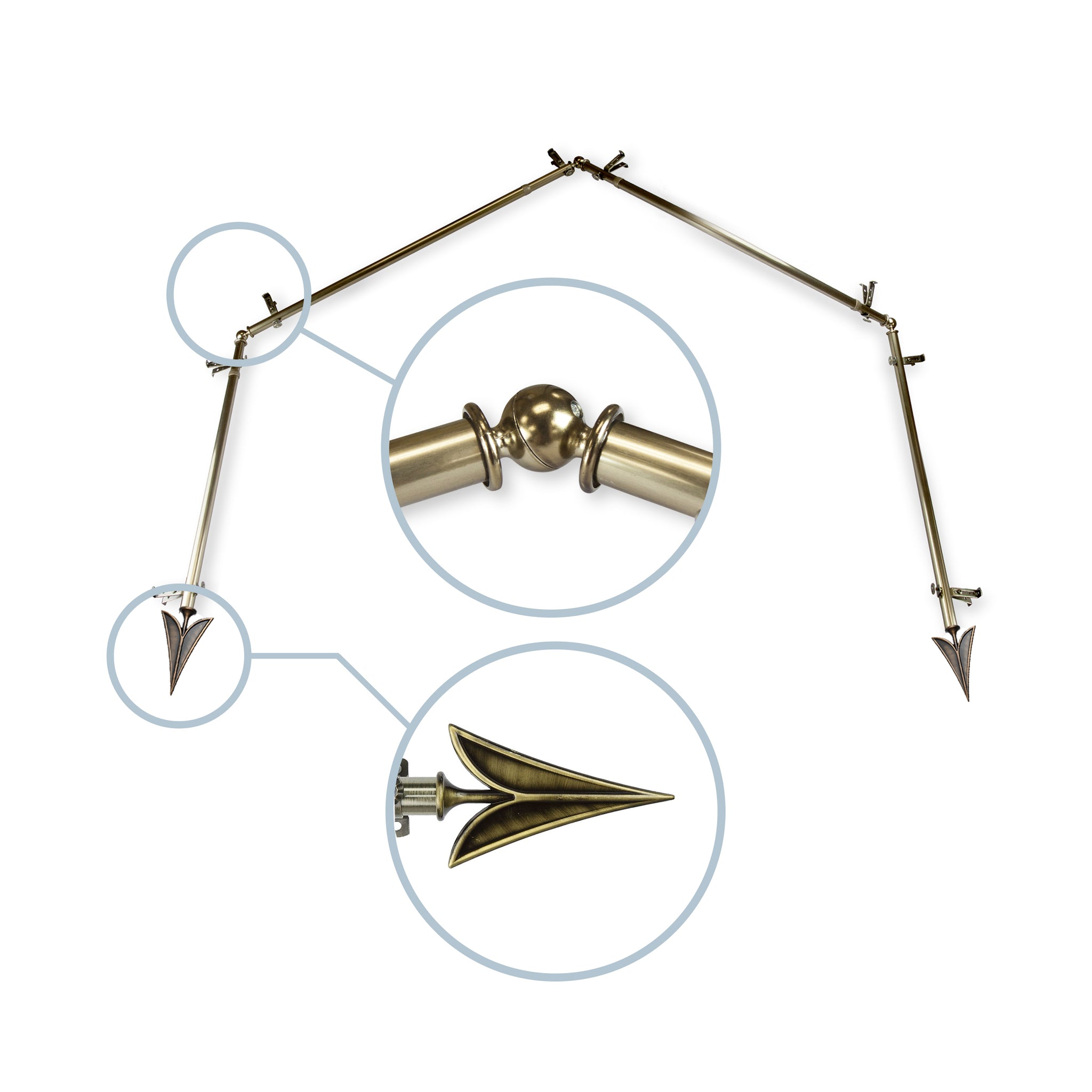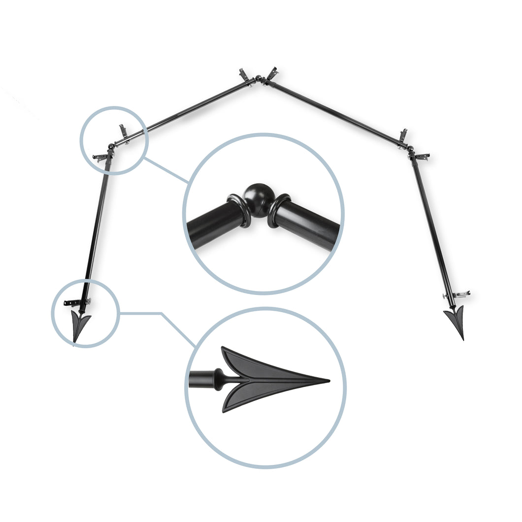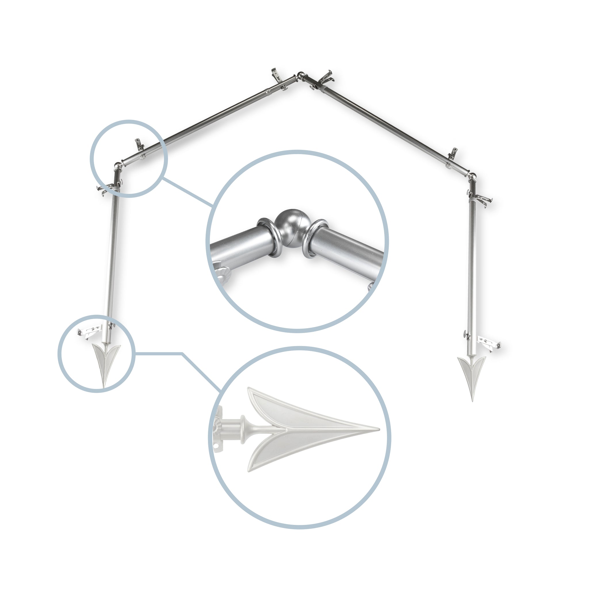 Includes four 13/16" diameter adjustable poles, one pair of decorative finials, 8 single brackets, 3 corner connectors, and mounting hardware