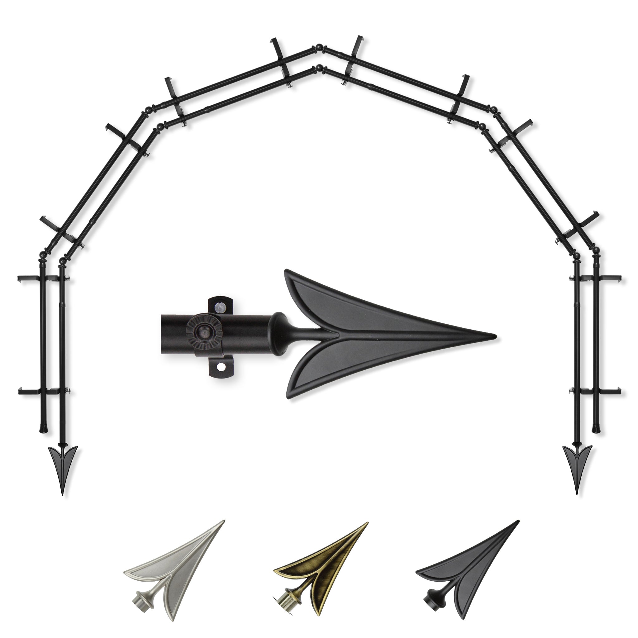 Includes twelve 13/16" diameter adjustable poles, one pair of decorative finials, 12 double brackets, 10 corner connectors, and mounting hardware