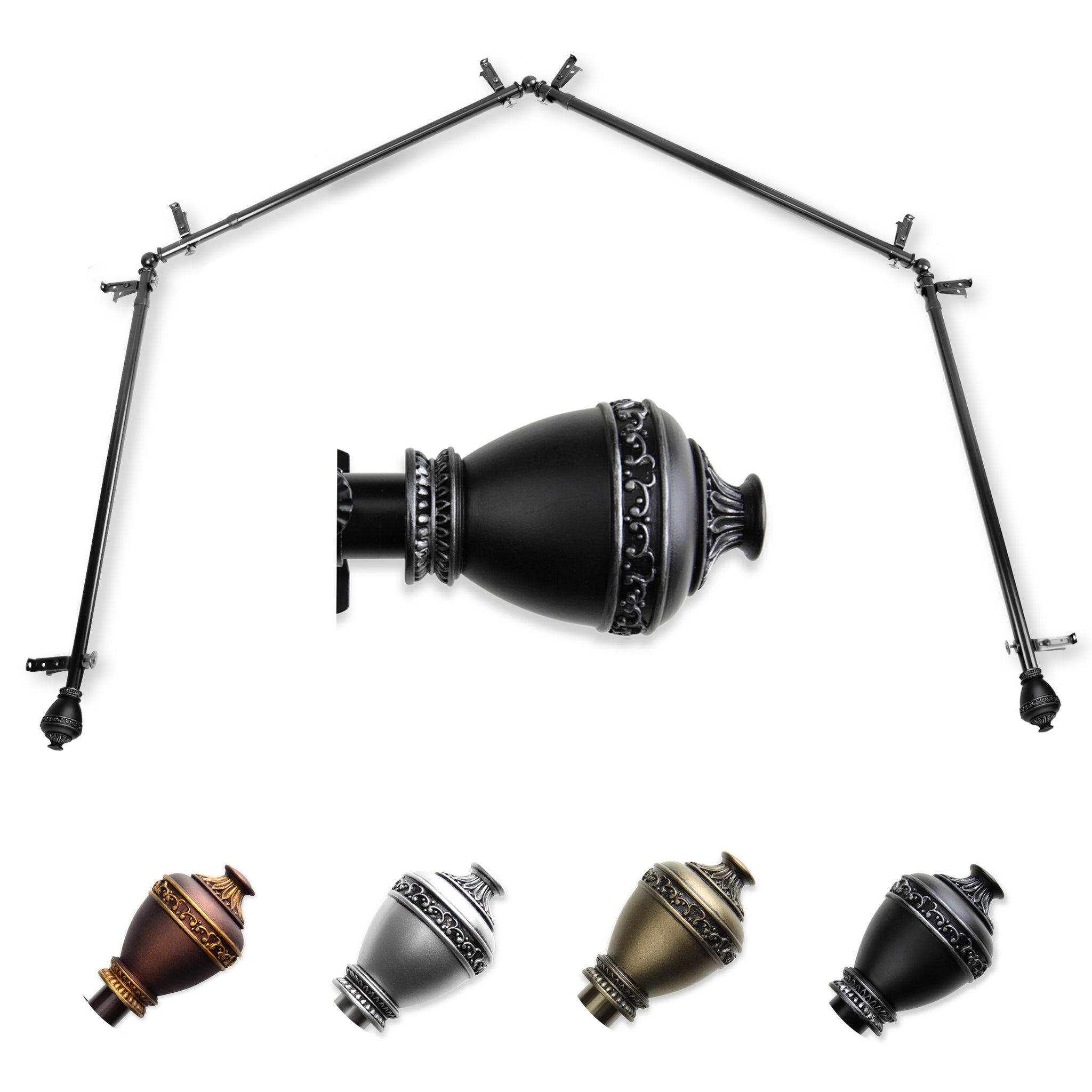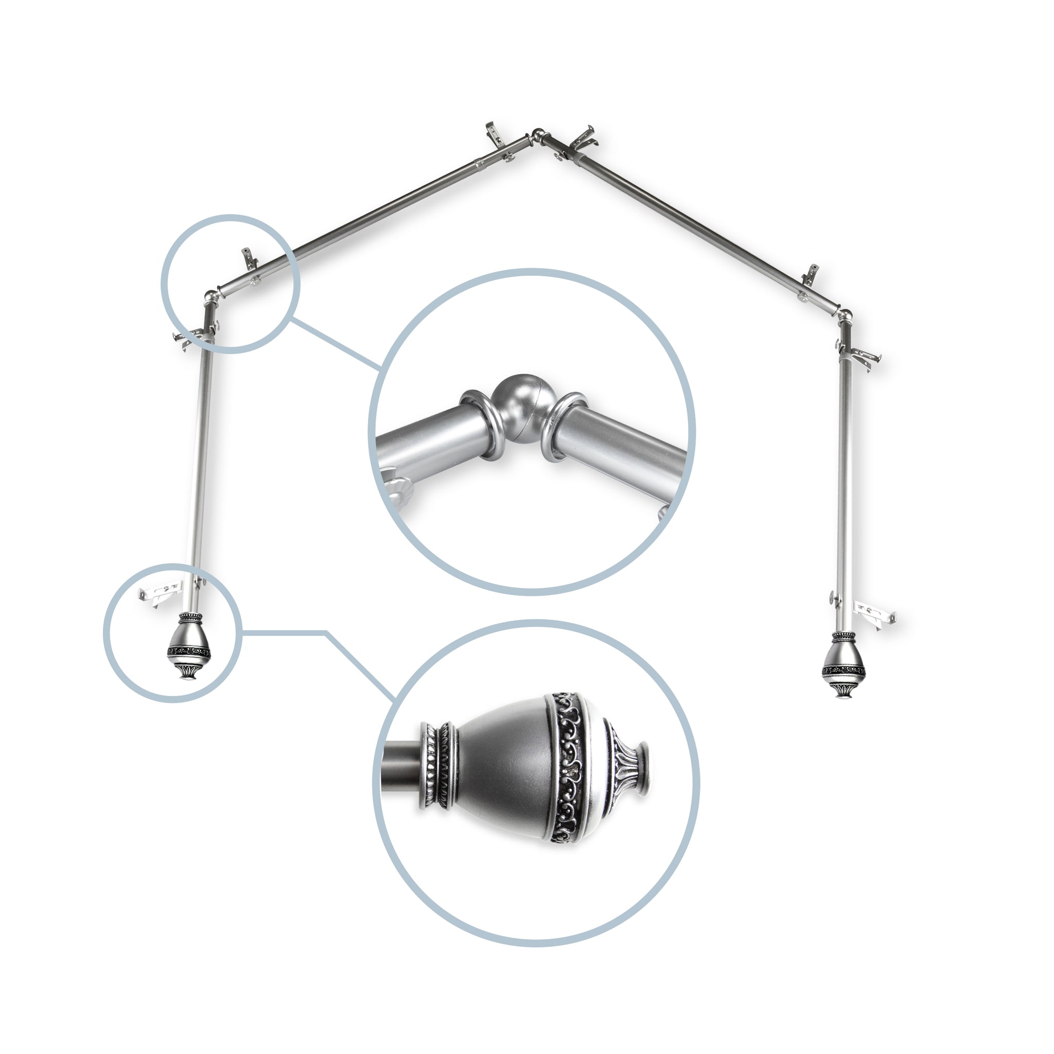 Includes four 13/16" diameter adjustable poles, one pair of decorative finials, 8 single brackets, 3 corner connectors, and mounting hardware
