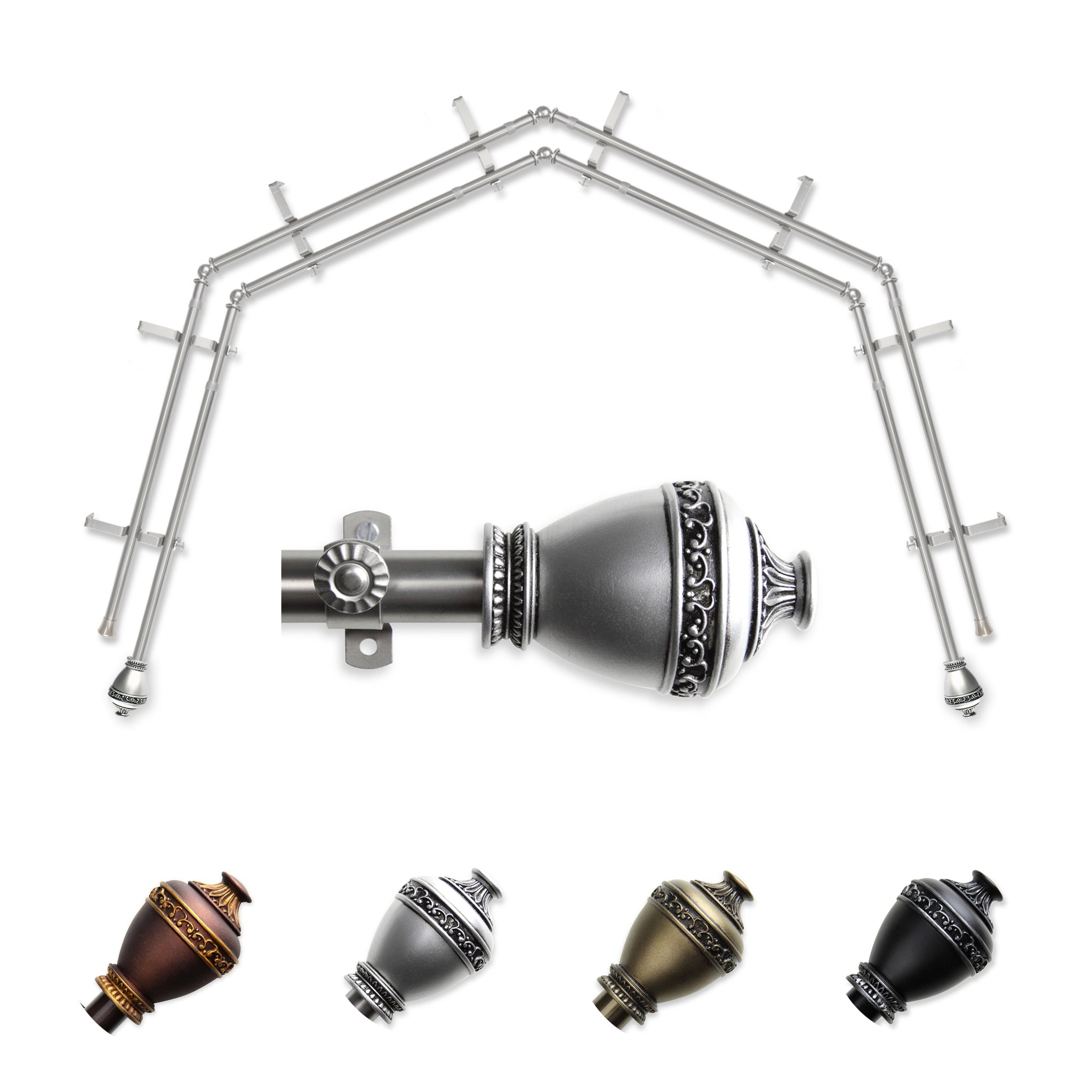 Includes eight 13/16" diameter adjustable poles, one pair of decorative finials, 8 double brackets, 6 corner connectors, and mounting hardware