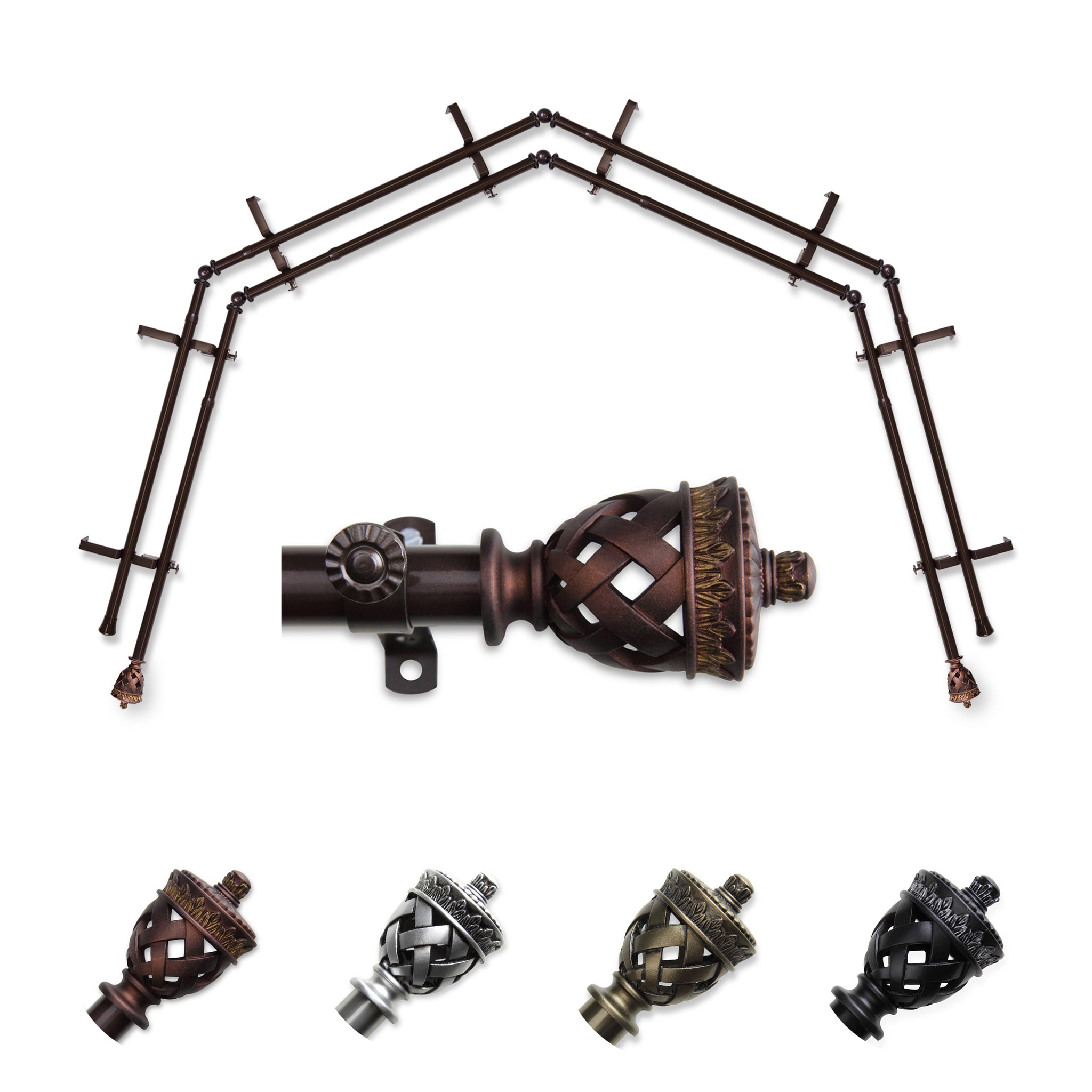 Includes eight 13/16" diameter adjustable poles, one pair of decorative finials, 8 double brackets, 6 corner connectors, and mounting hardware