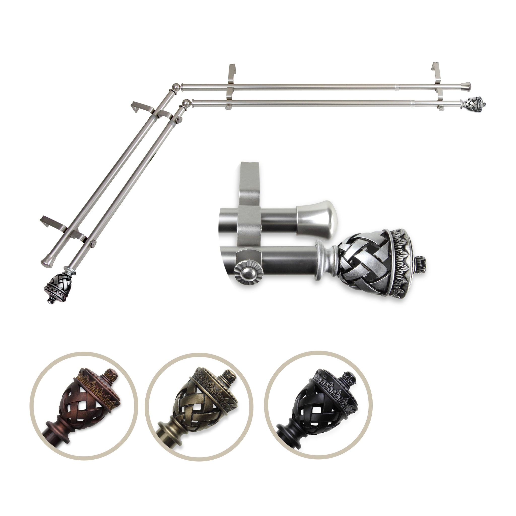 Includes four 13/16" diameter adjustable poles, one pair of decorative finials, one pair of end caps, two corner connectors, brackets, and mounting hardware