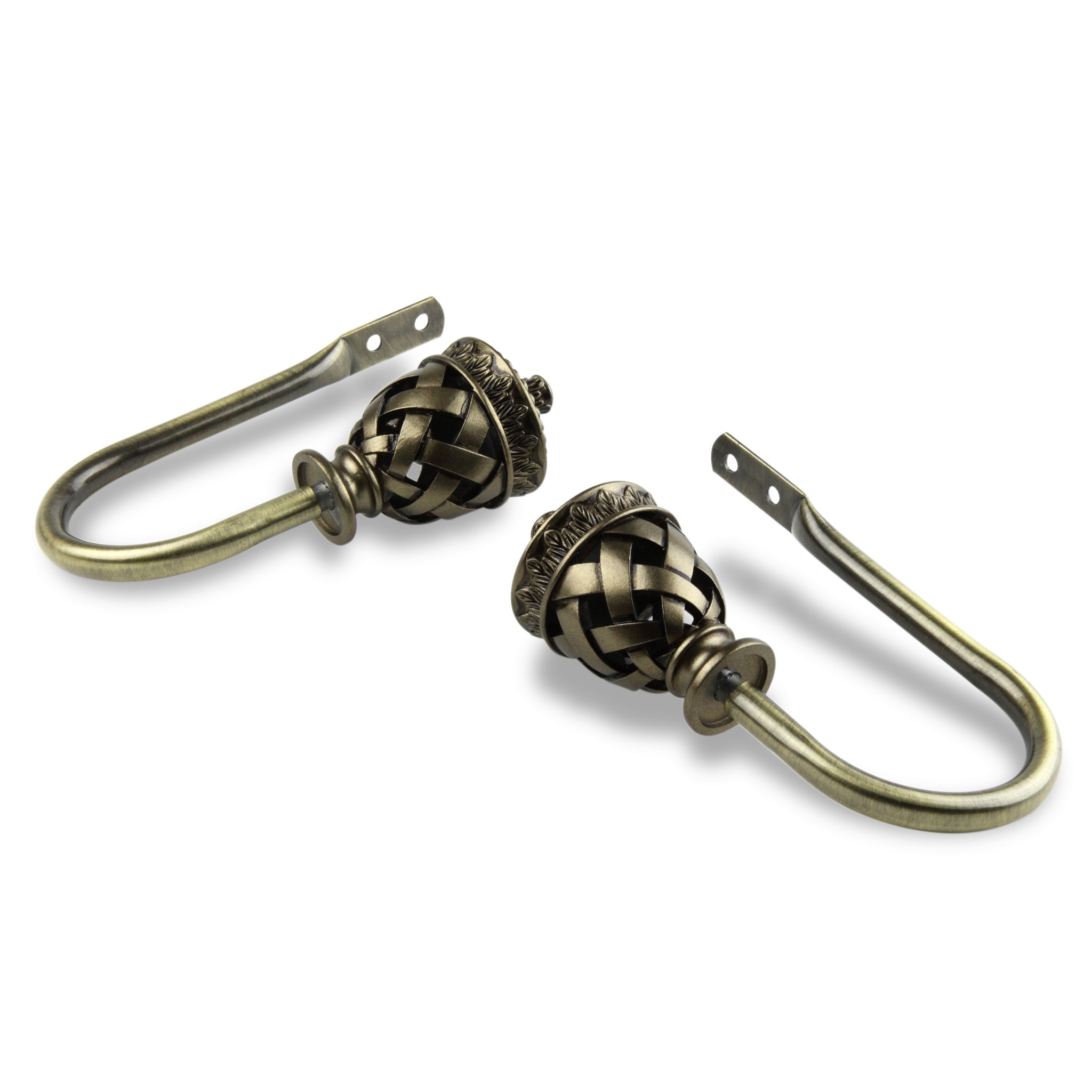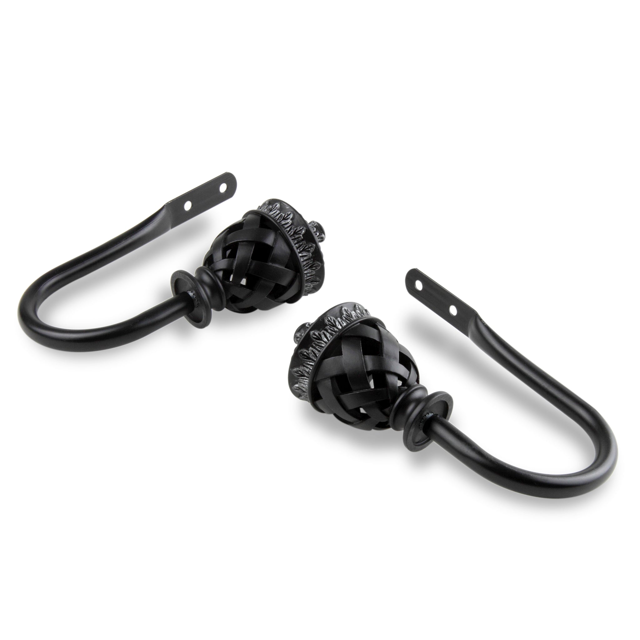 Includes one pair of decorative holdbacks and mounting hardware