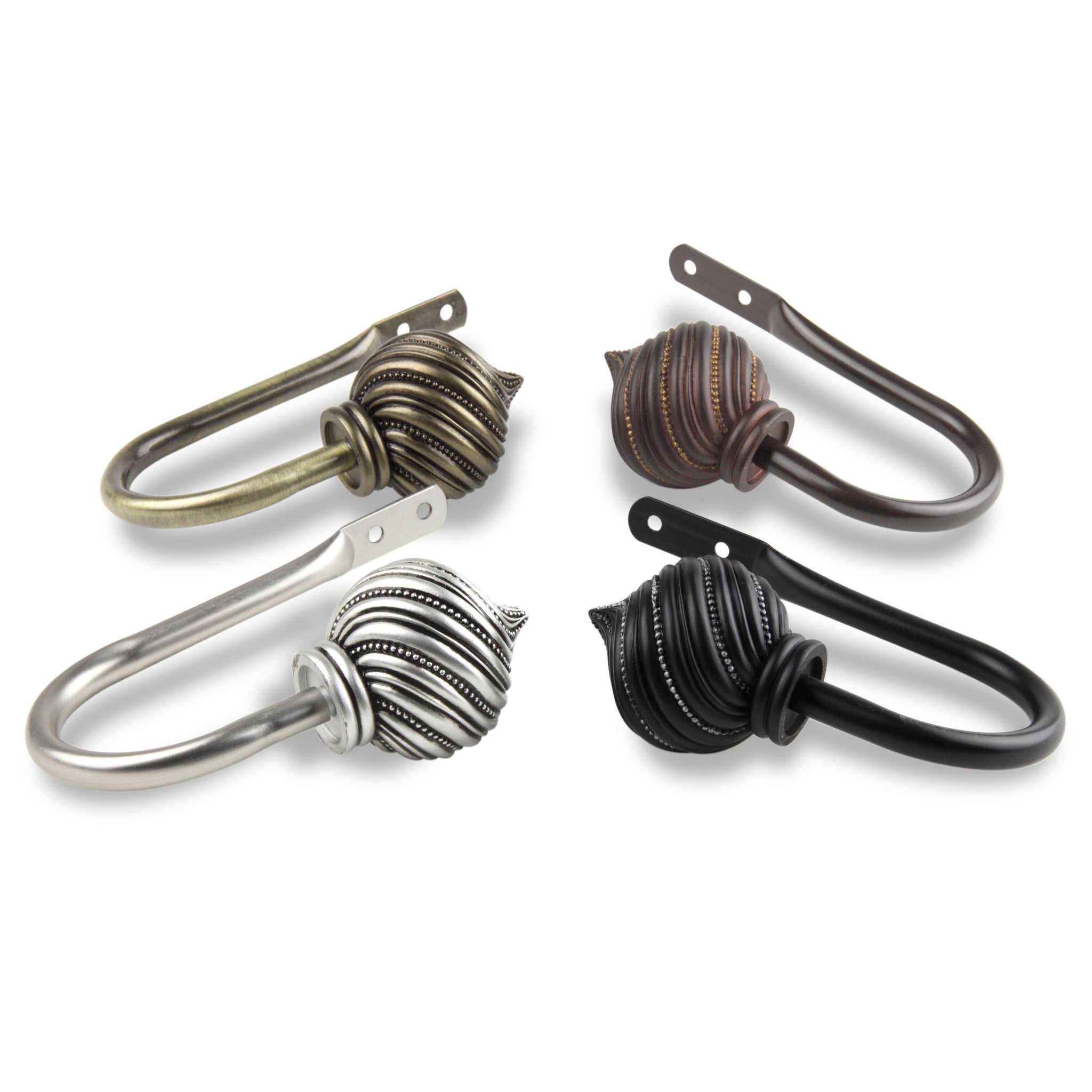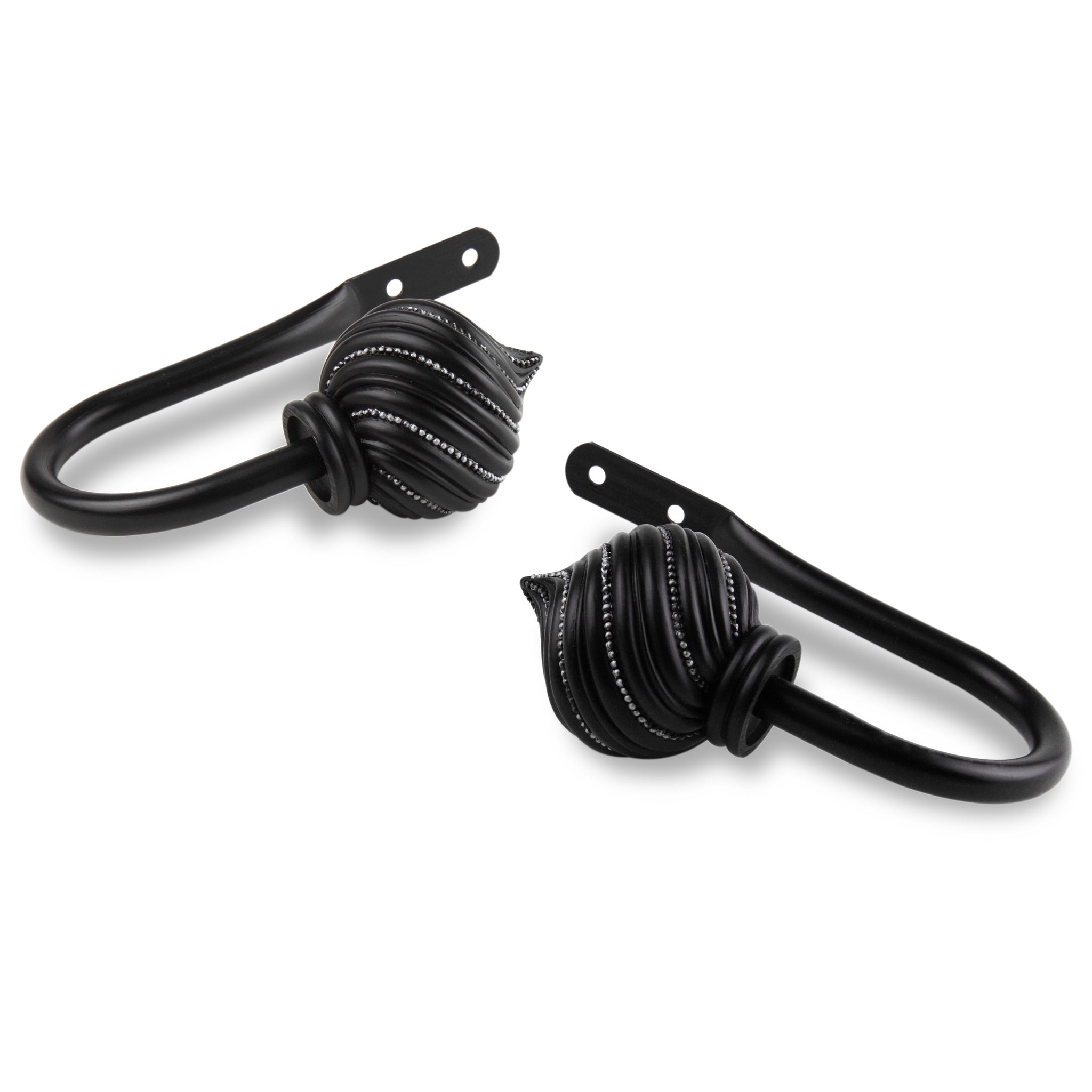 Includes one pair of decorative holdbacks and mounting hardware