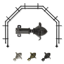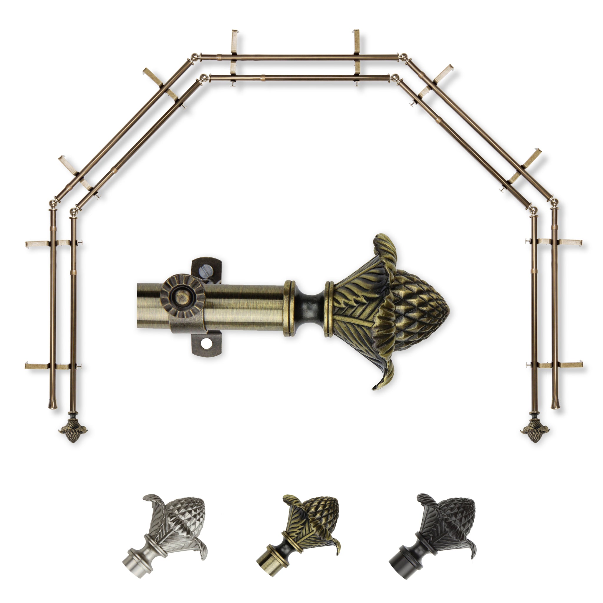 Includes ten 13/16" diameter adjustable poles, one pair of decorative finials, 10 double brackets, 8 corner connectors, and mounting hardware