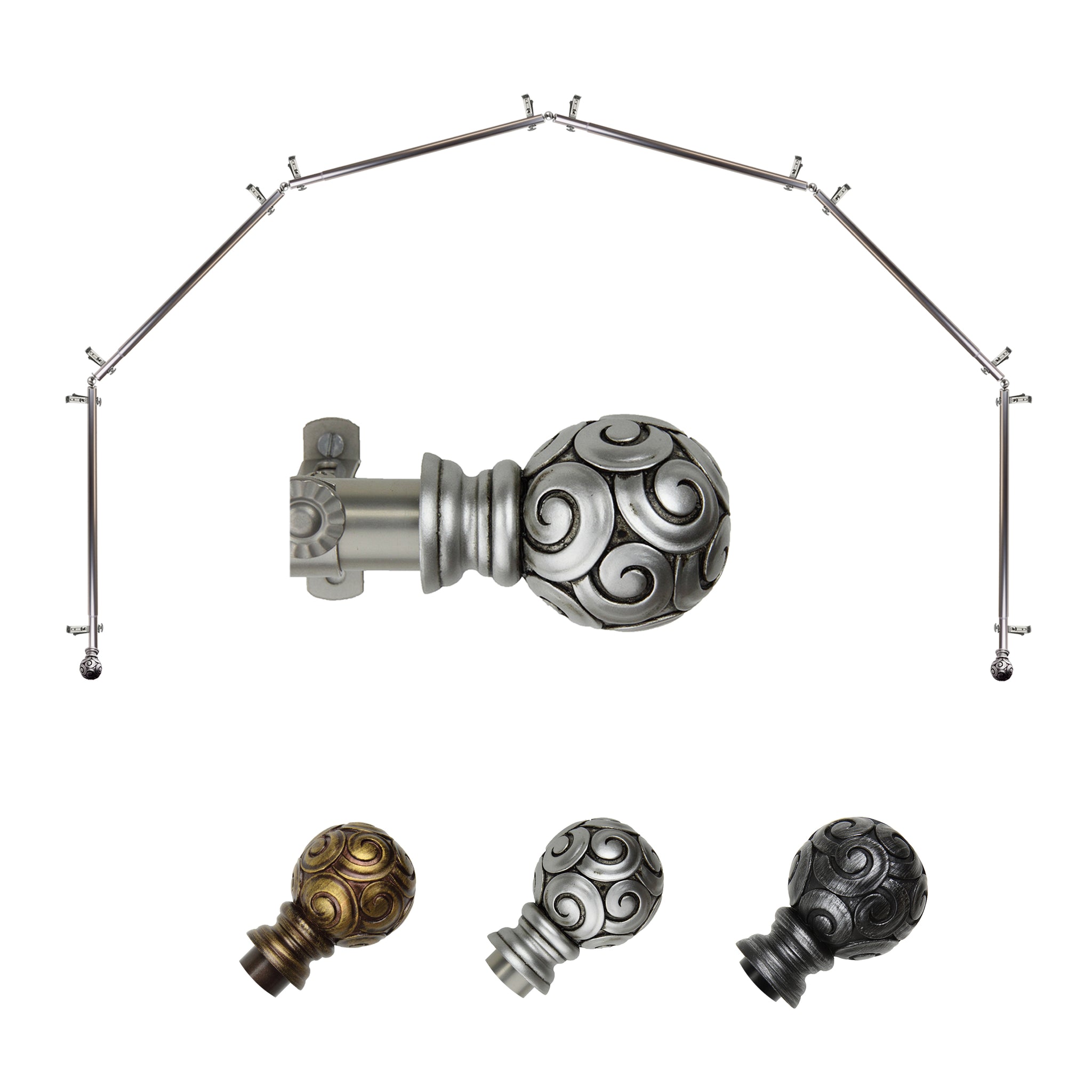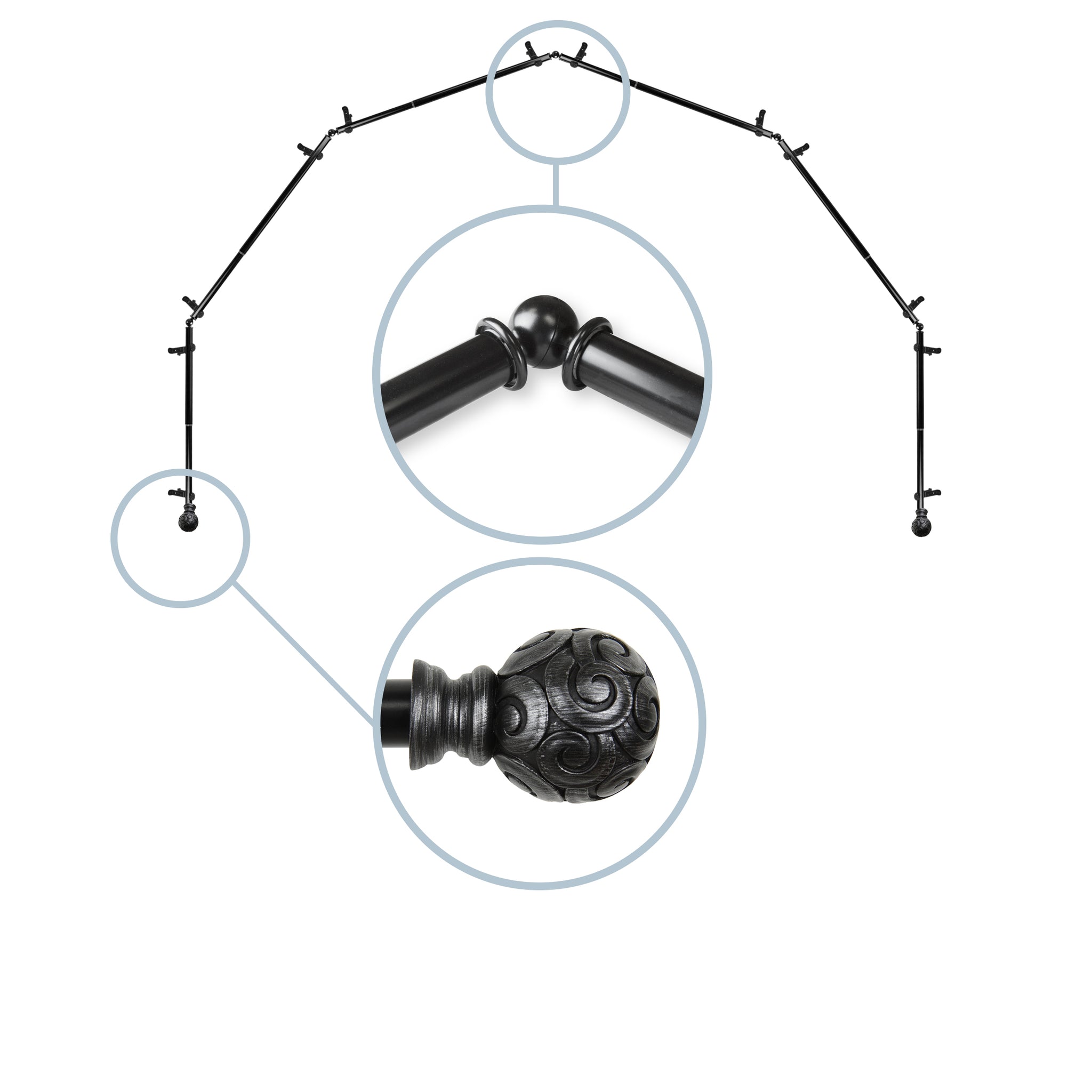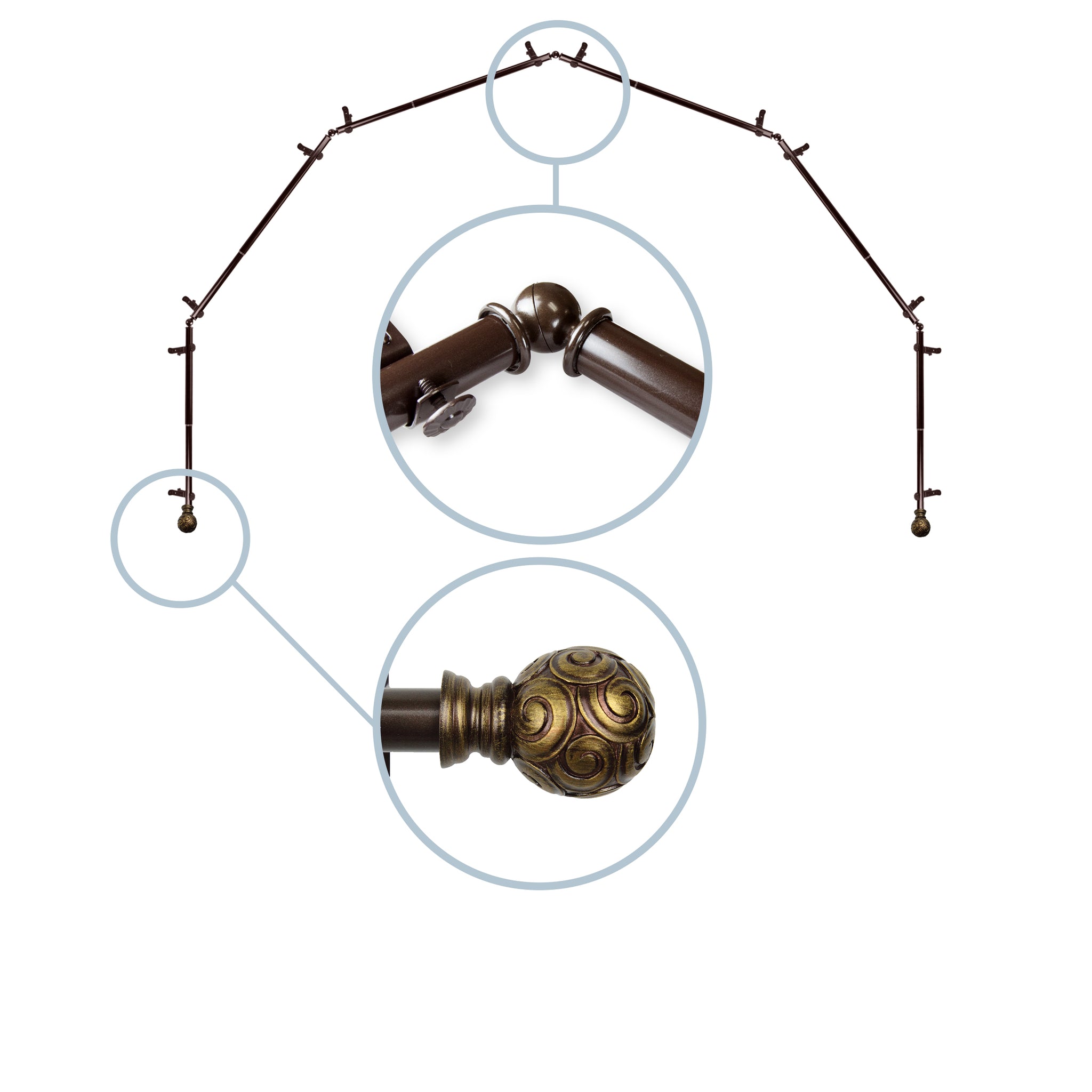 Includes six 13/16" diameter adjustable poles, one pair of decorative finials, 12 single brackets, 5 corner connectors, and mounting hardware