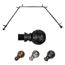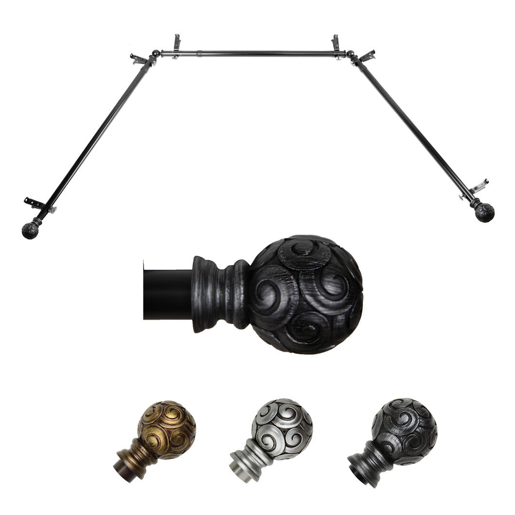 Includes two 13/16" diameter adjustable 20-36 inch poles, one adjustable 38-72 inch pole, one pair of finials, 6 brackets, 2 corner connectors, and mounting hardware