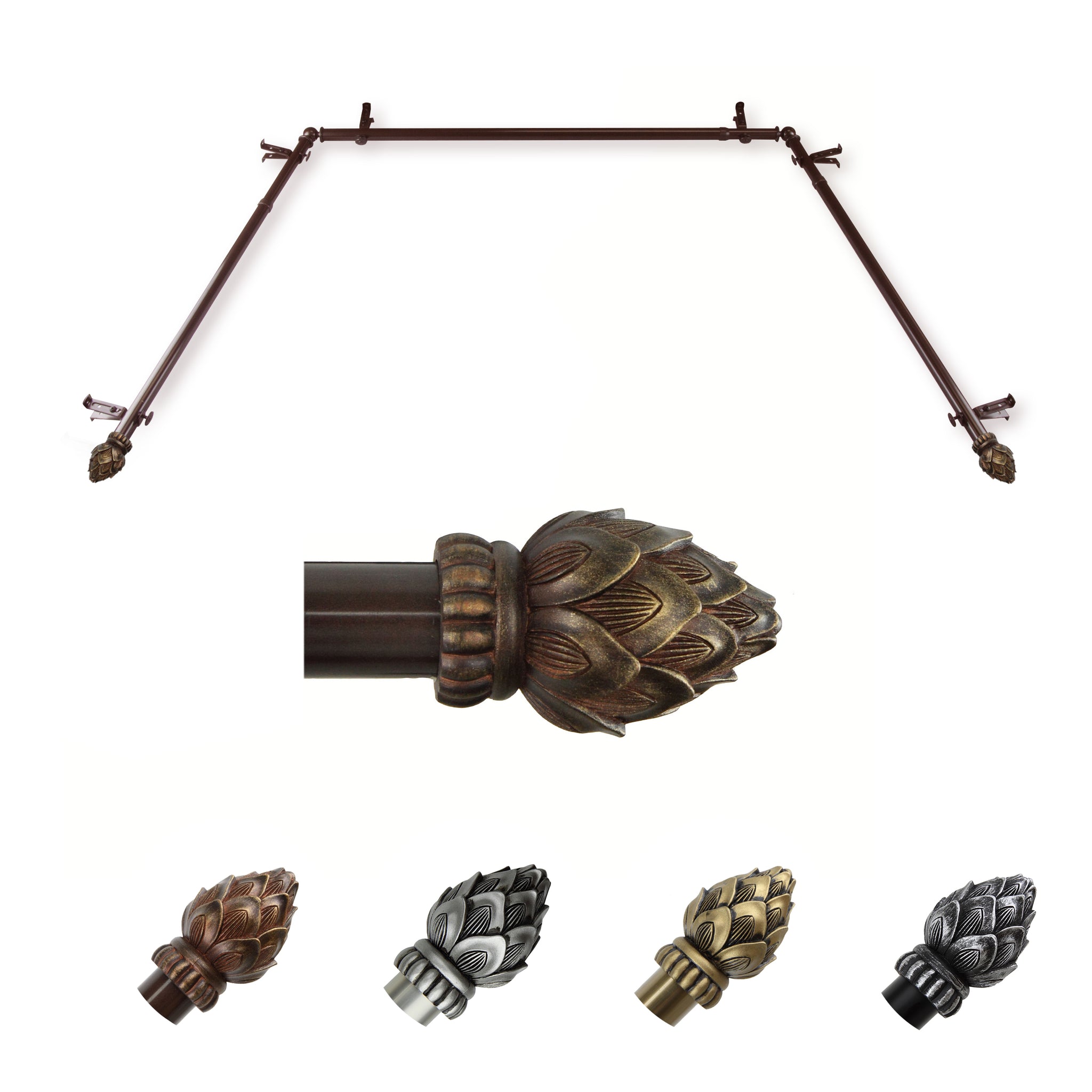Includes two 13/16" diameter adjustable 20-36 inch poles, one adjustable 38-72 inch pole, one pair of finials, 6 brackets, 2 corner connectors, and mounting hardware