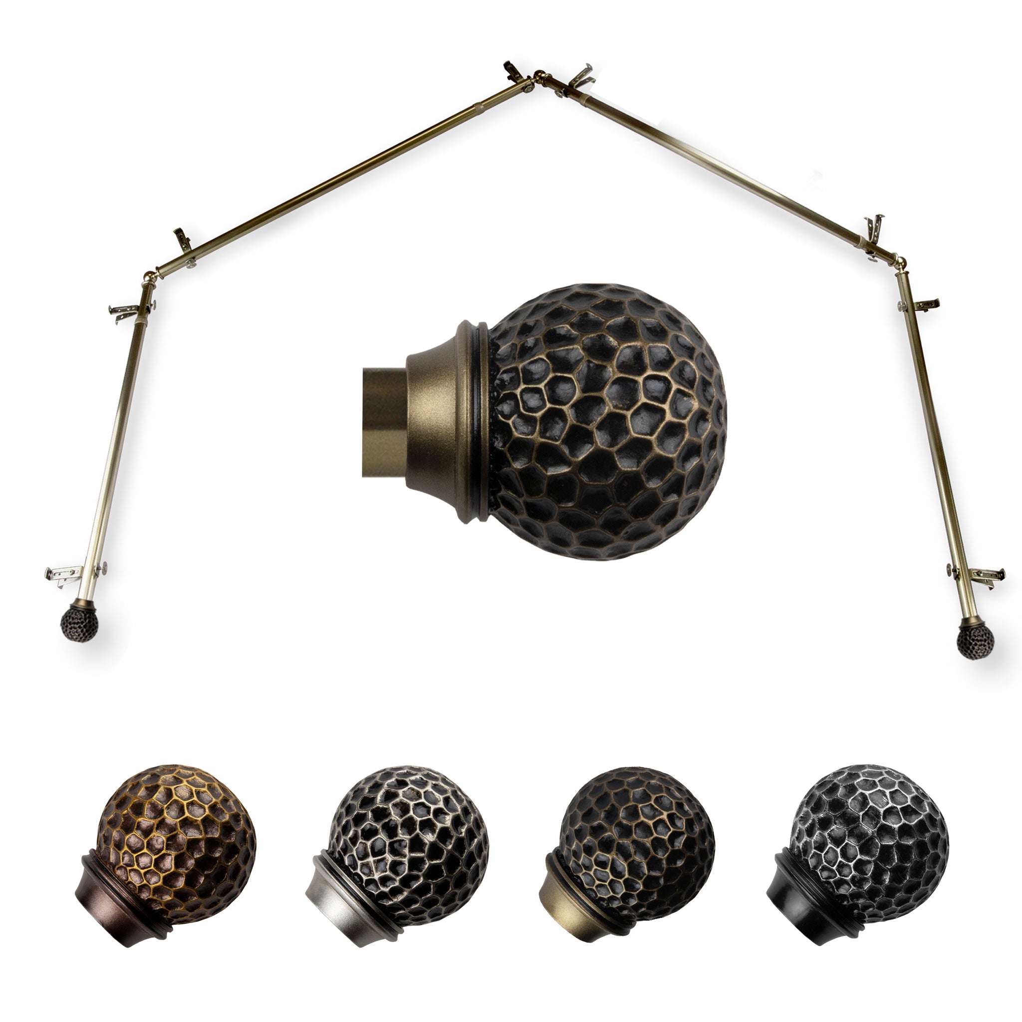 Includes four 13/16" diameter adjustable poles, one pair of decorative finials, 8 single brackets, 3 corner connectors, and mounting hardware