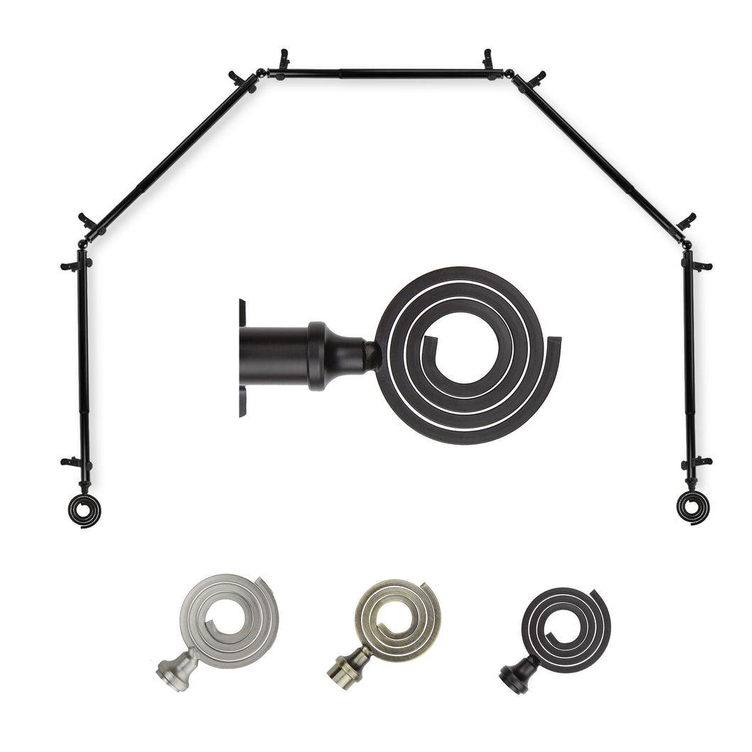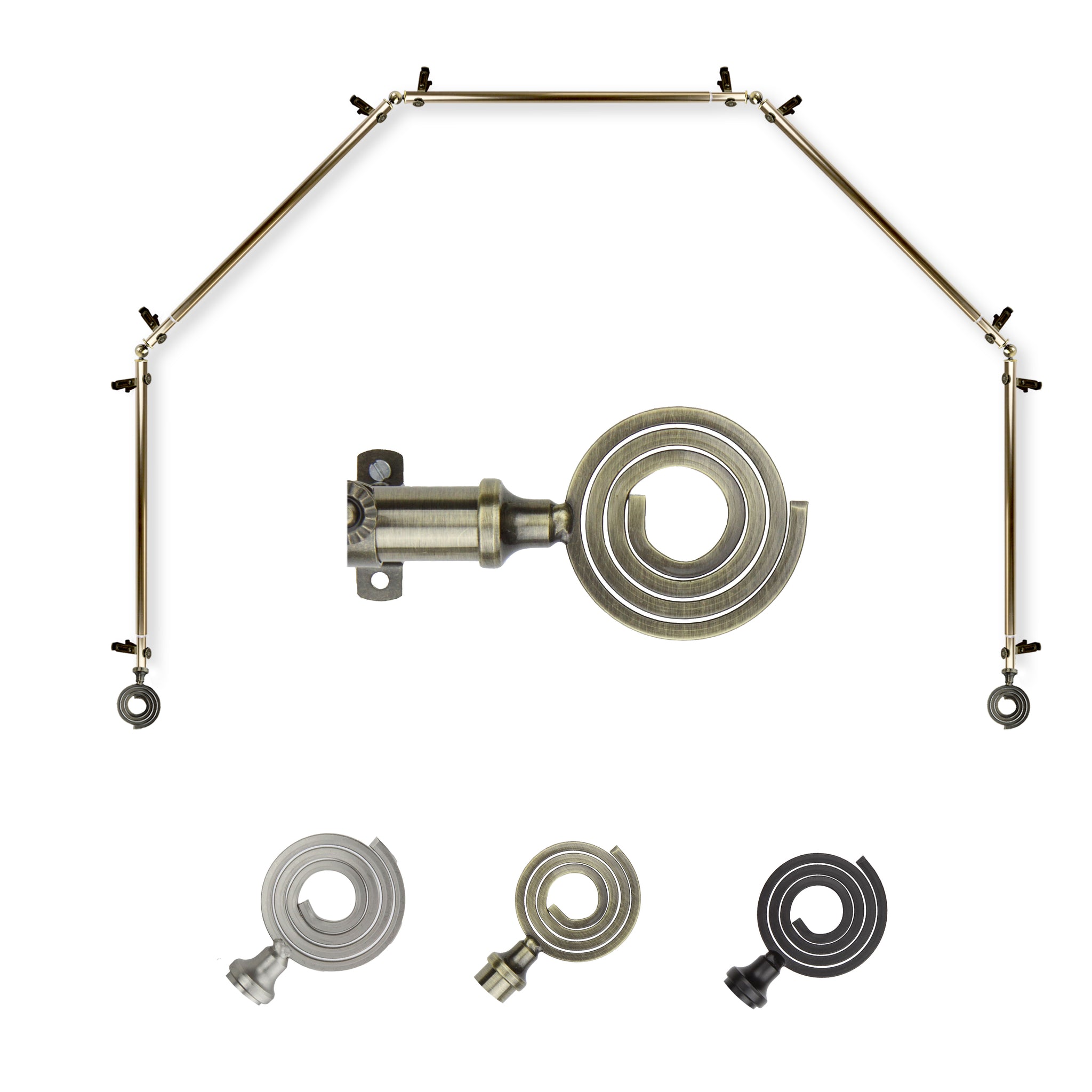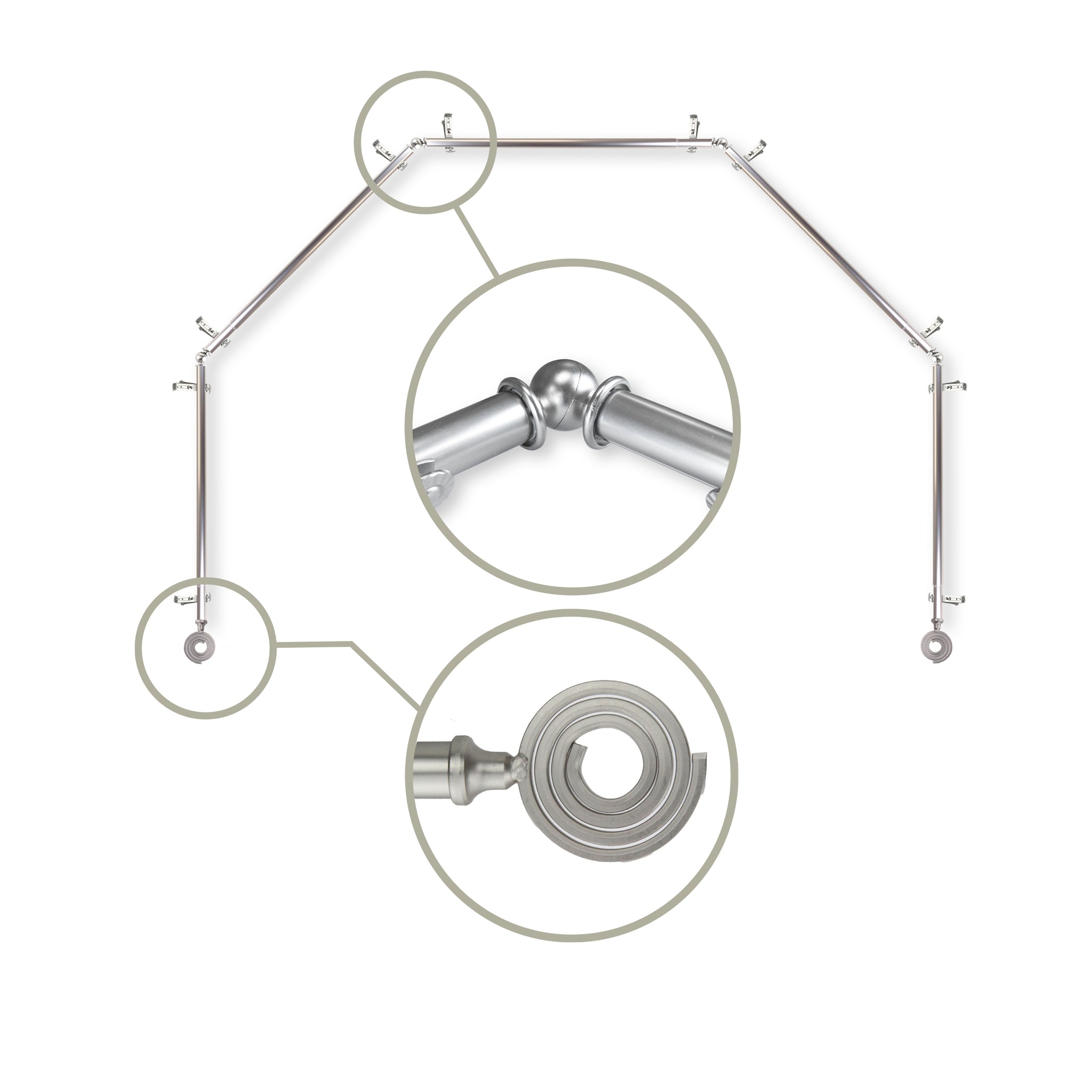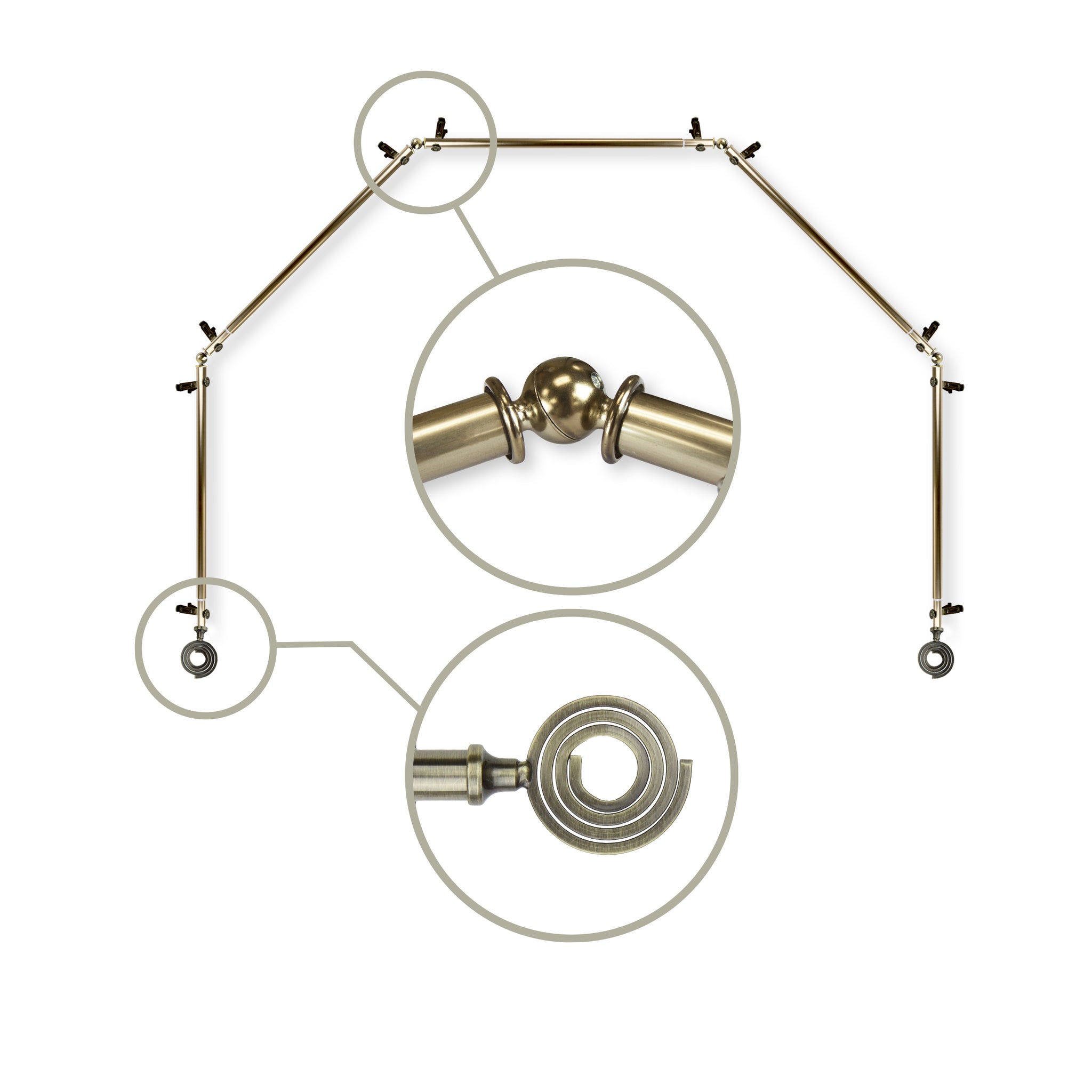 Includes five 13/16" diameter adjustable poles, one pair of decorative finials, 10 single brackets, 4 corner connectors, and mounting hardware