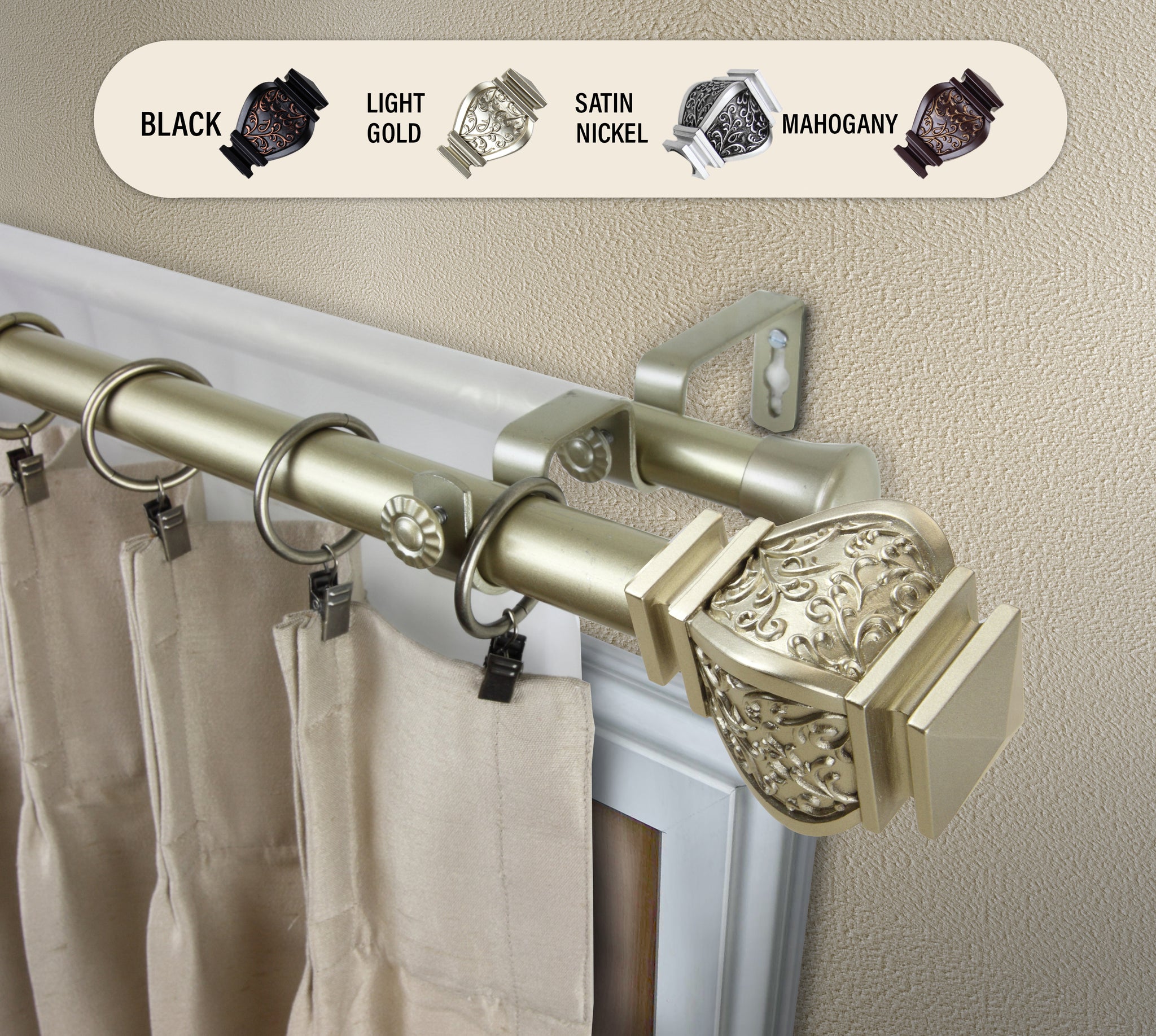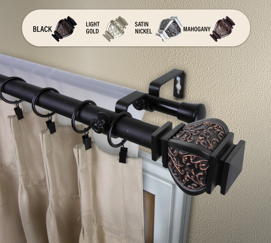 Includes one 1" high-quality steel telescoping pole and one 13/16" adjustable back rod, two finials, double brackets, and mounting hardware