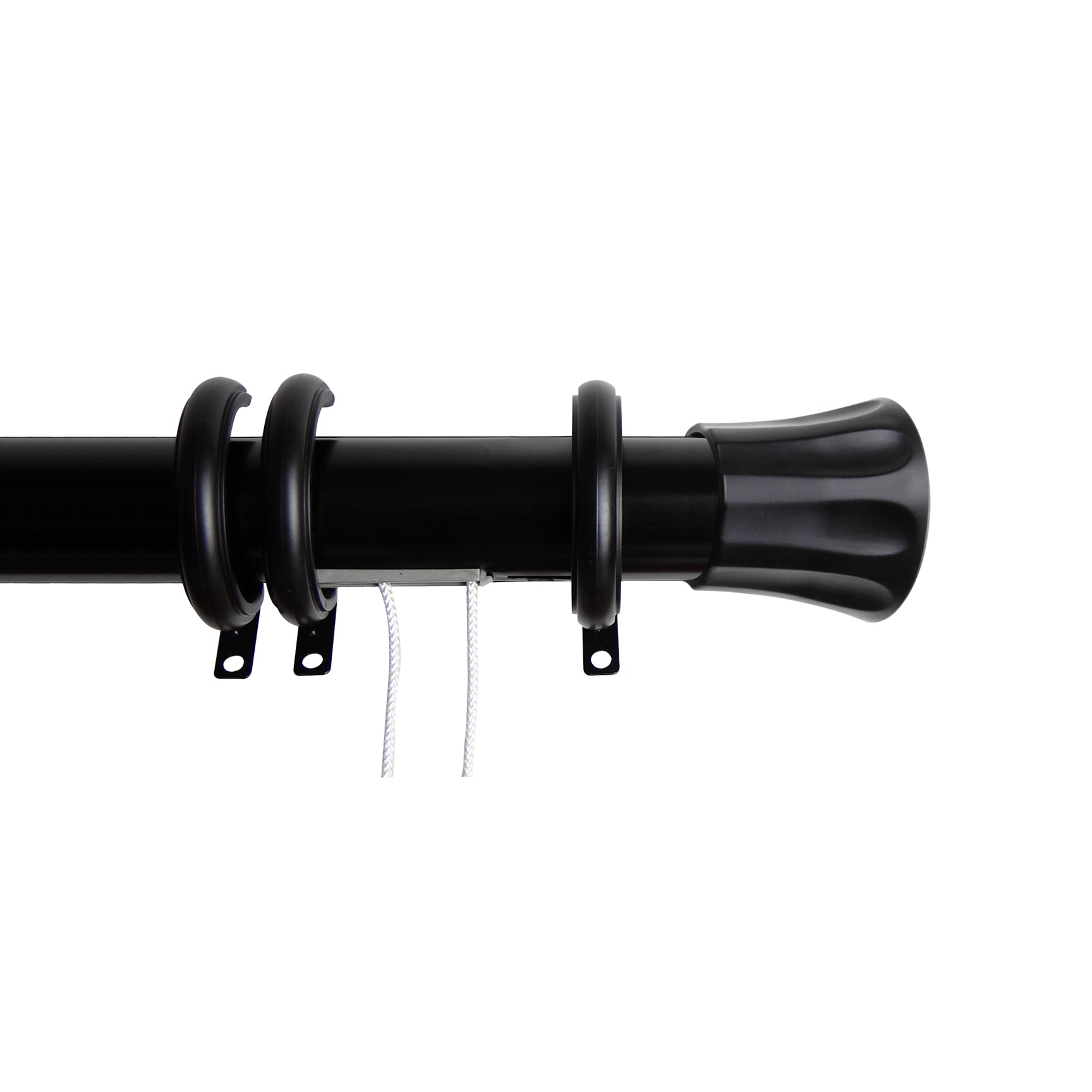Includes one 1.5" diameter adjustable traverse rod w/ rings, one pair of decorative finials, brackets, and mounting hardware