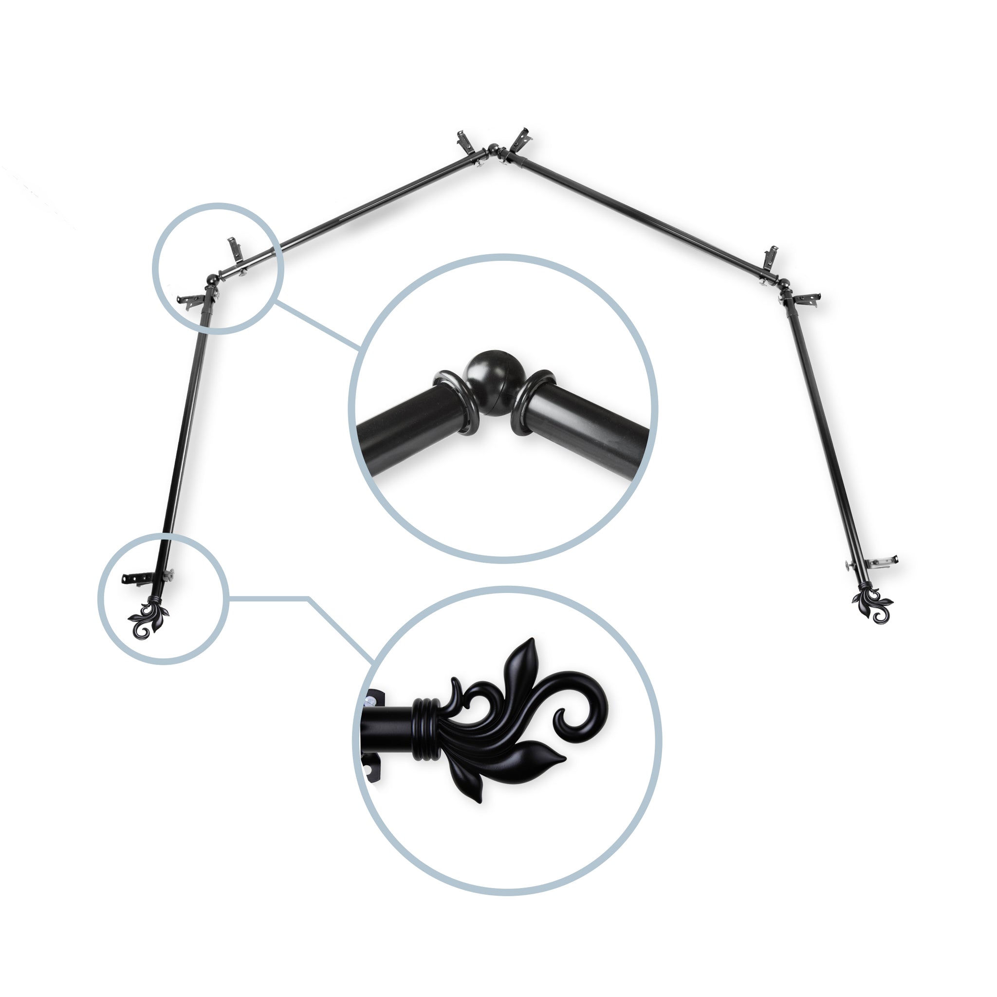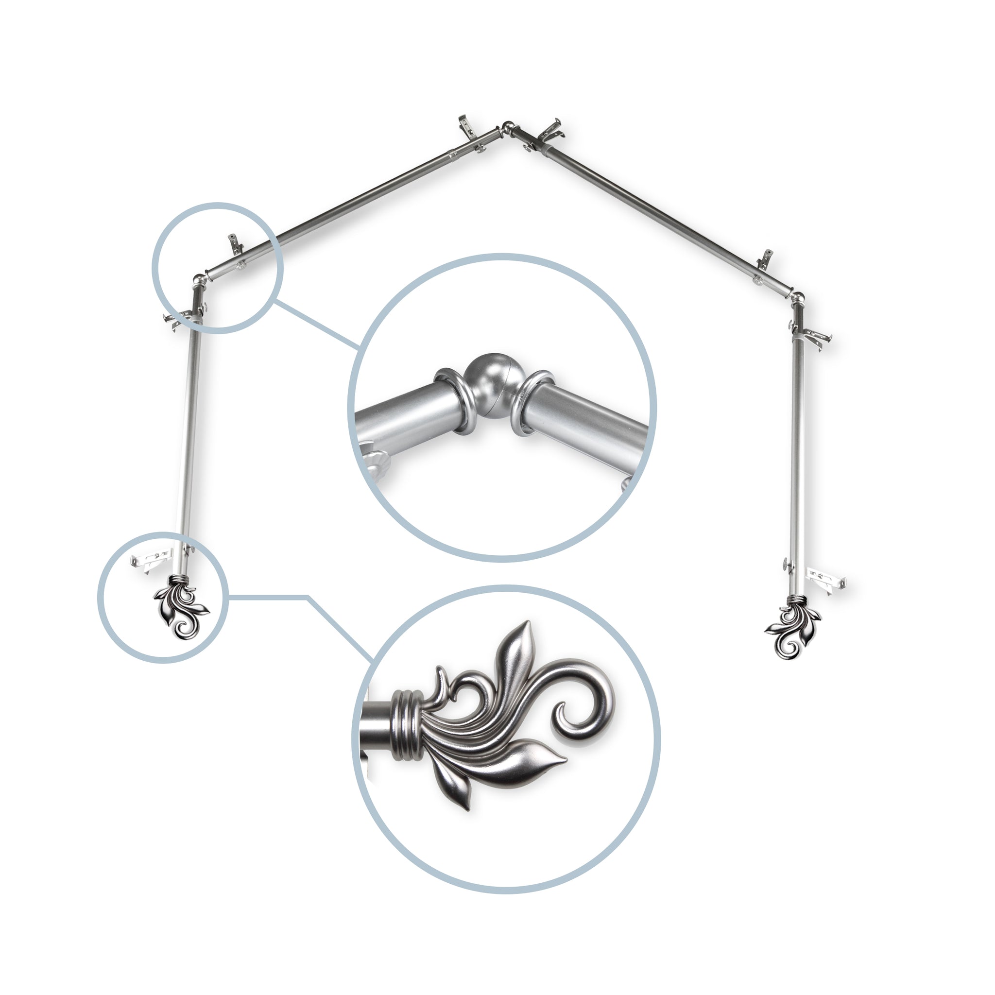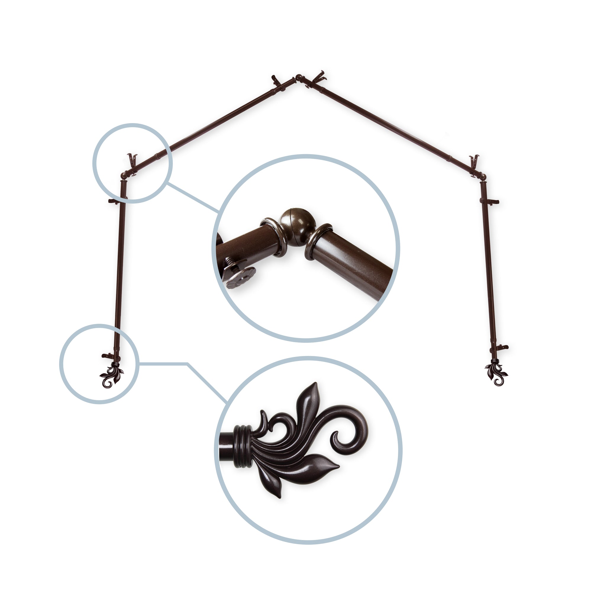 Includes four 13/16" diameter adjustable poles, one pair of decorative finials, 8 single brackets, 3 corner connectors, and mounting hardware