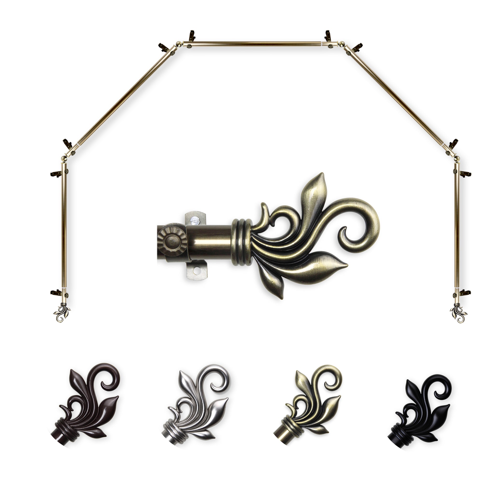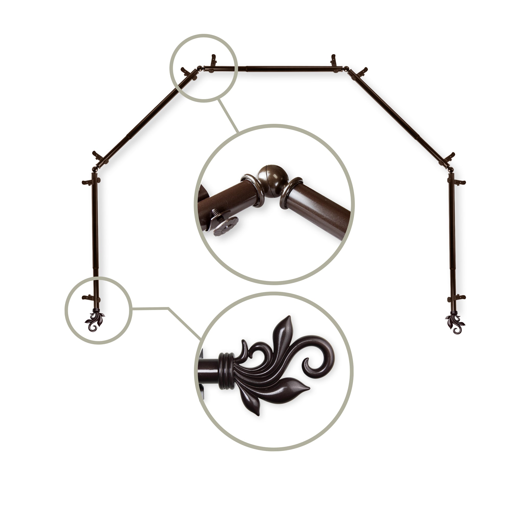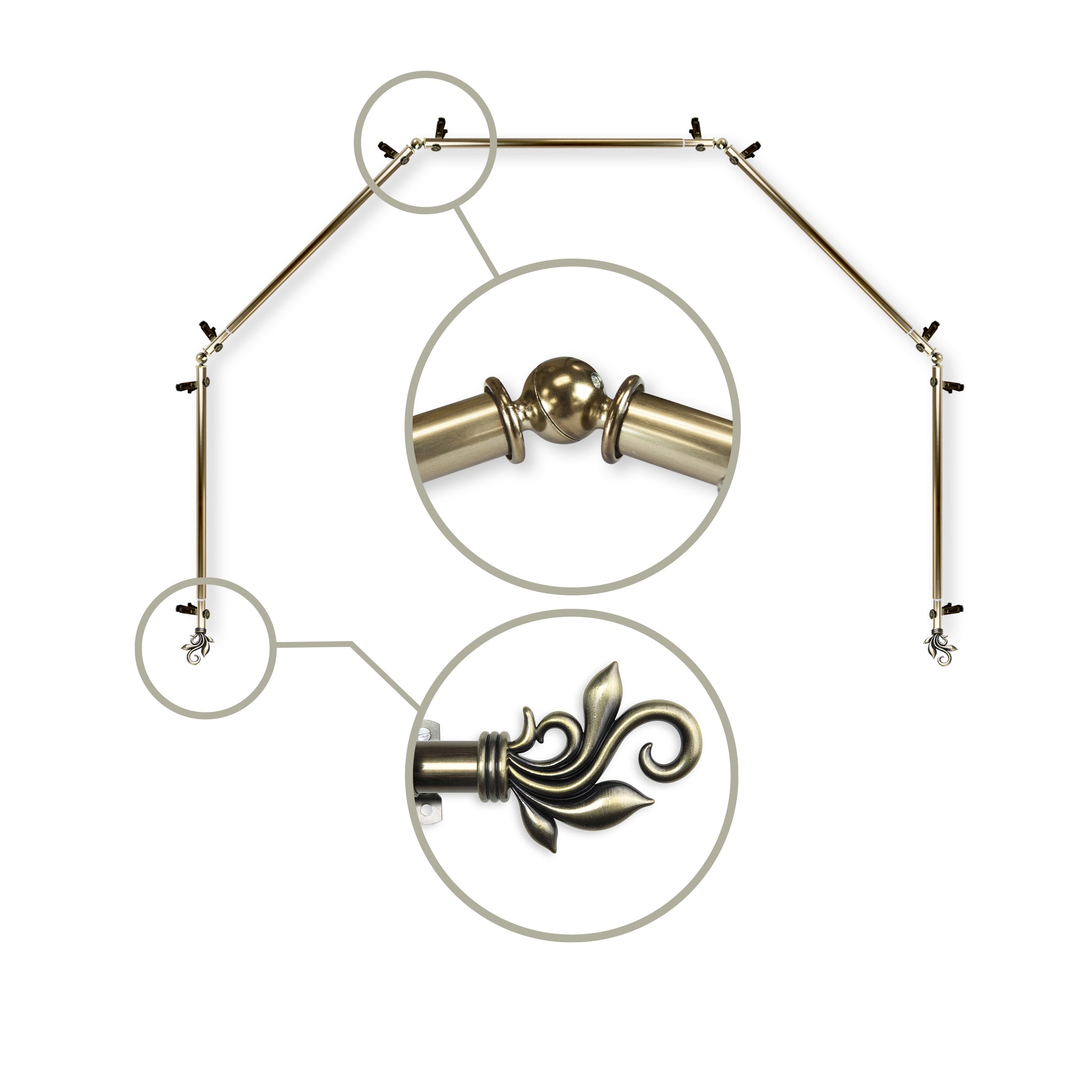 Includes five 13/16" diameter adjustable poles, one pair of decorative finials, 10 single brackets, 4 corner connectors, and mounting hardware