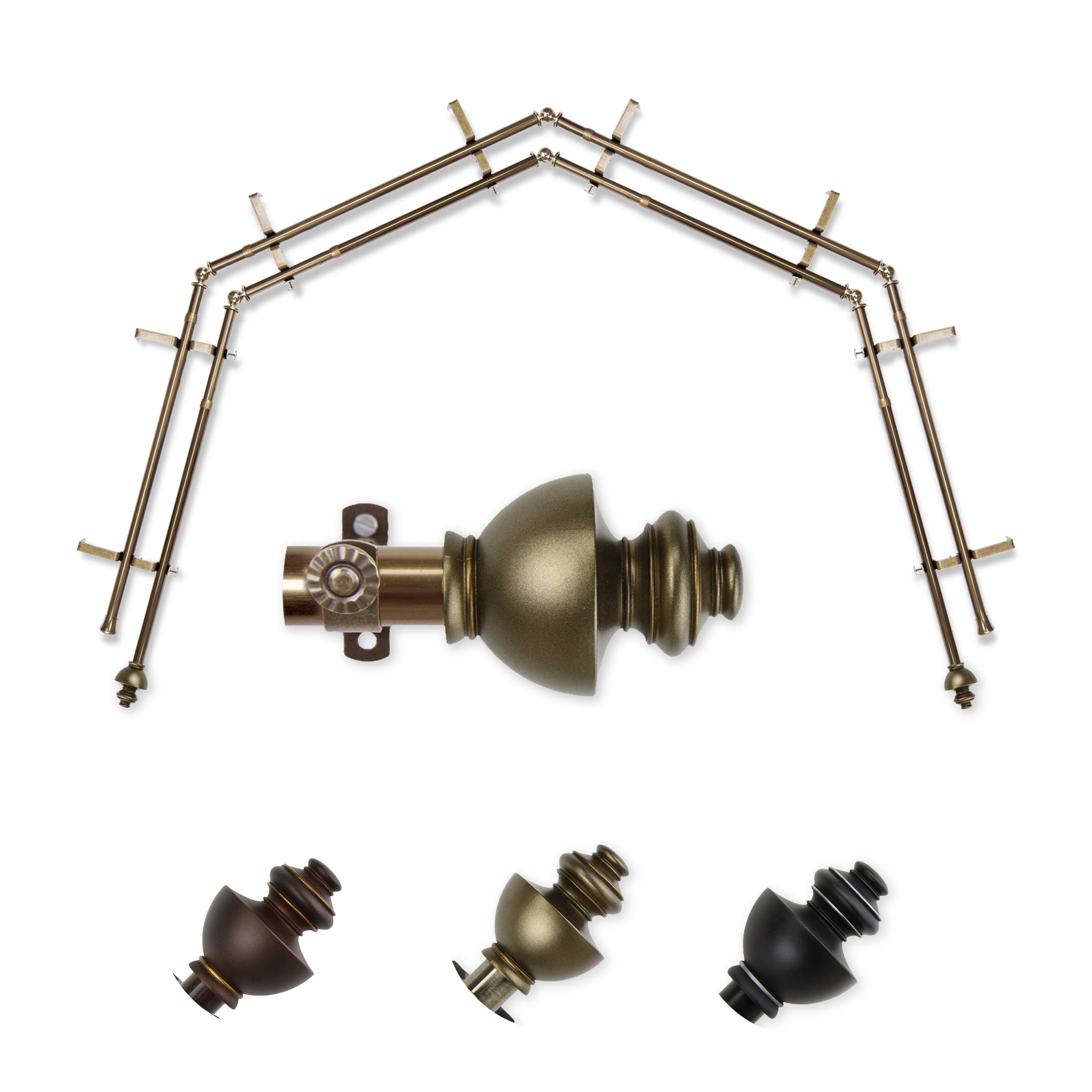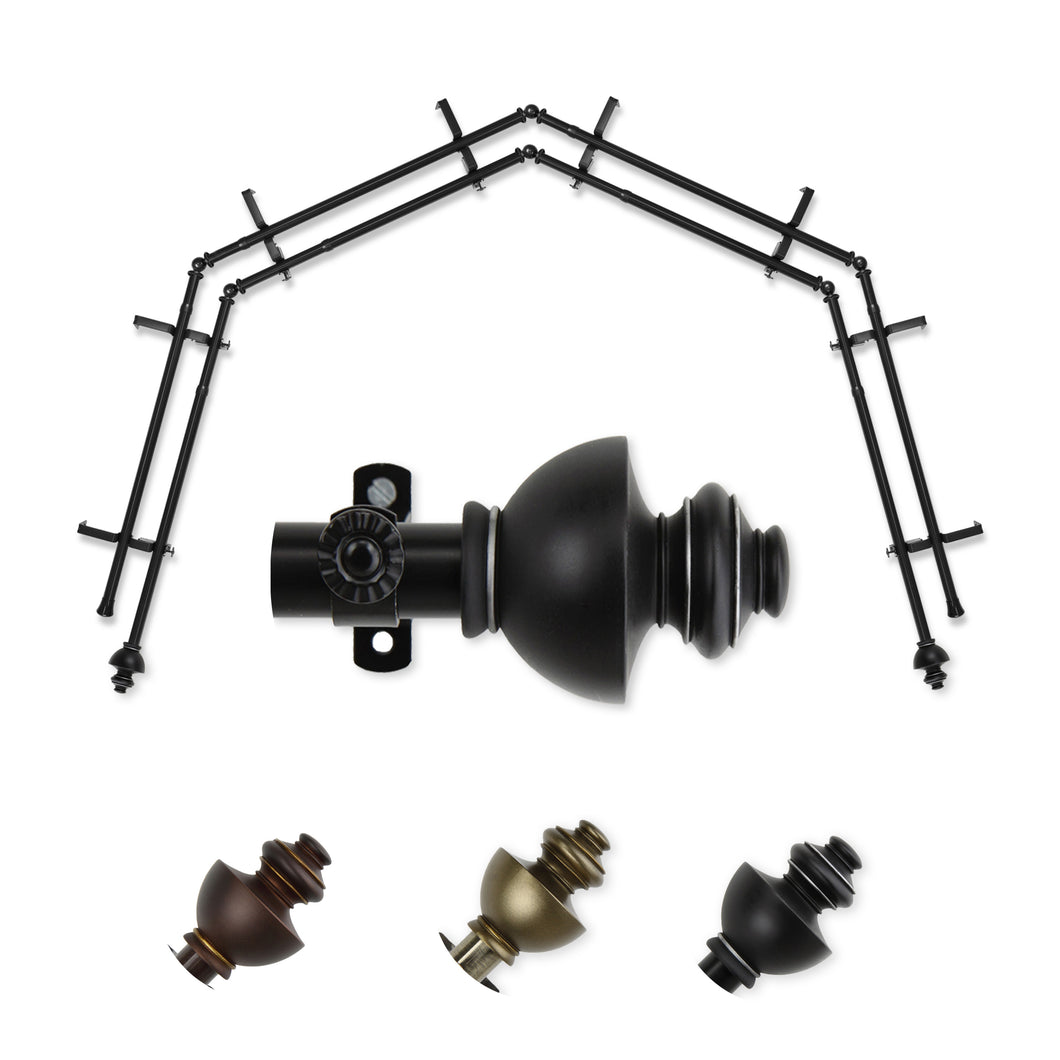 Includes eight 13/16" diameter adjustable poles, one pair of decorative finials, 8 double brackets, 6 corner connectors, and mounting hardware