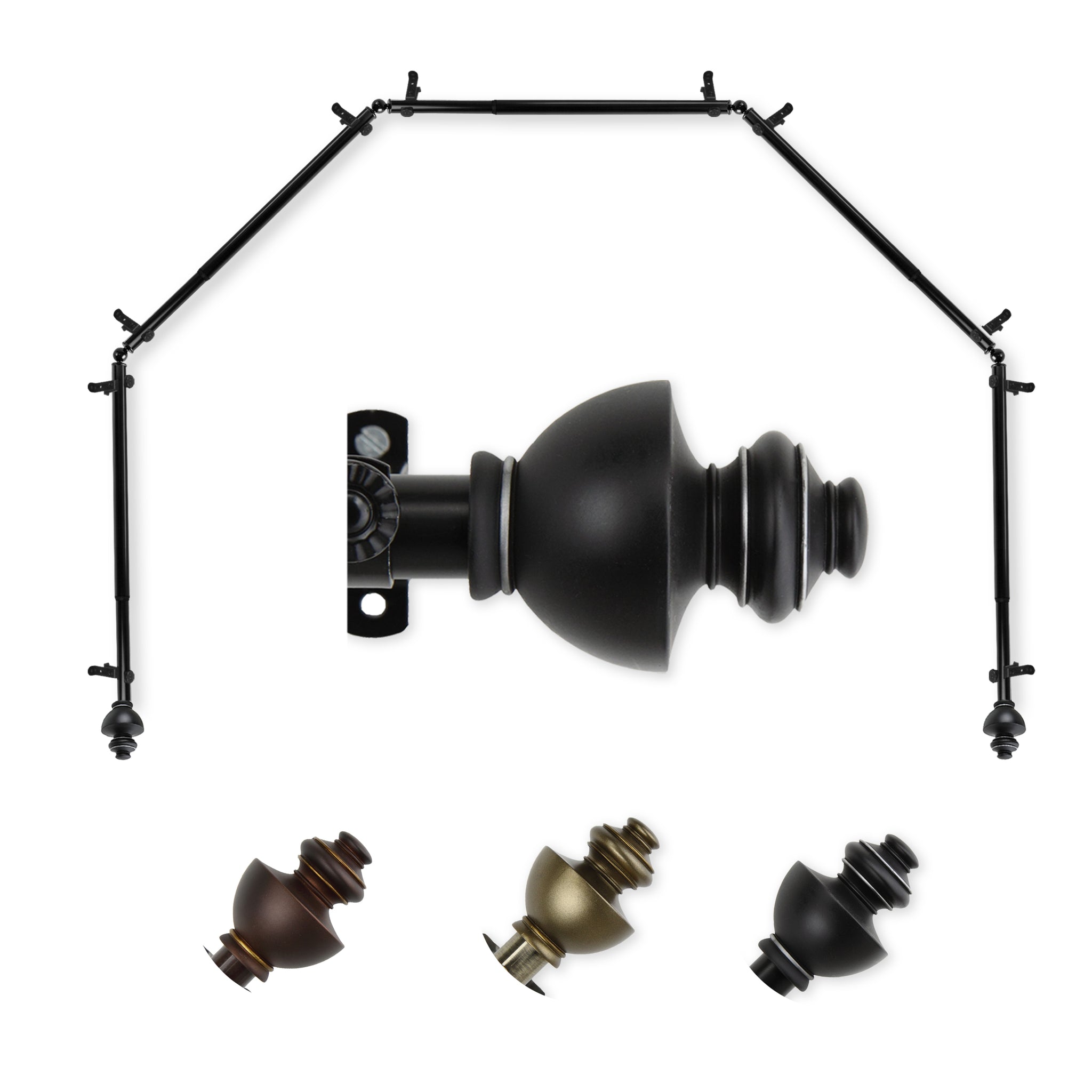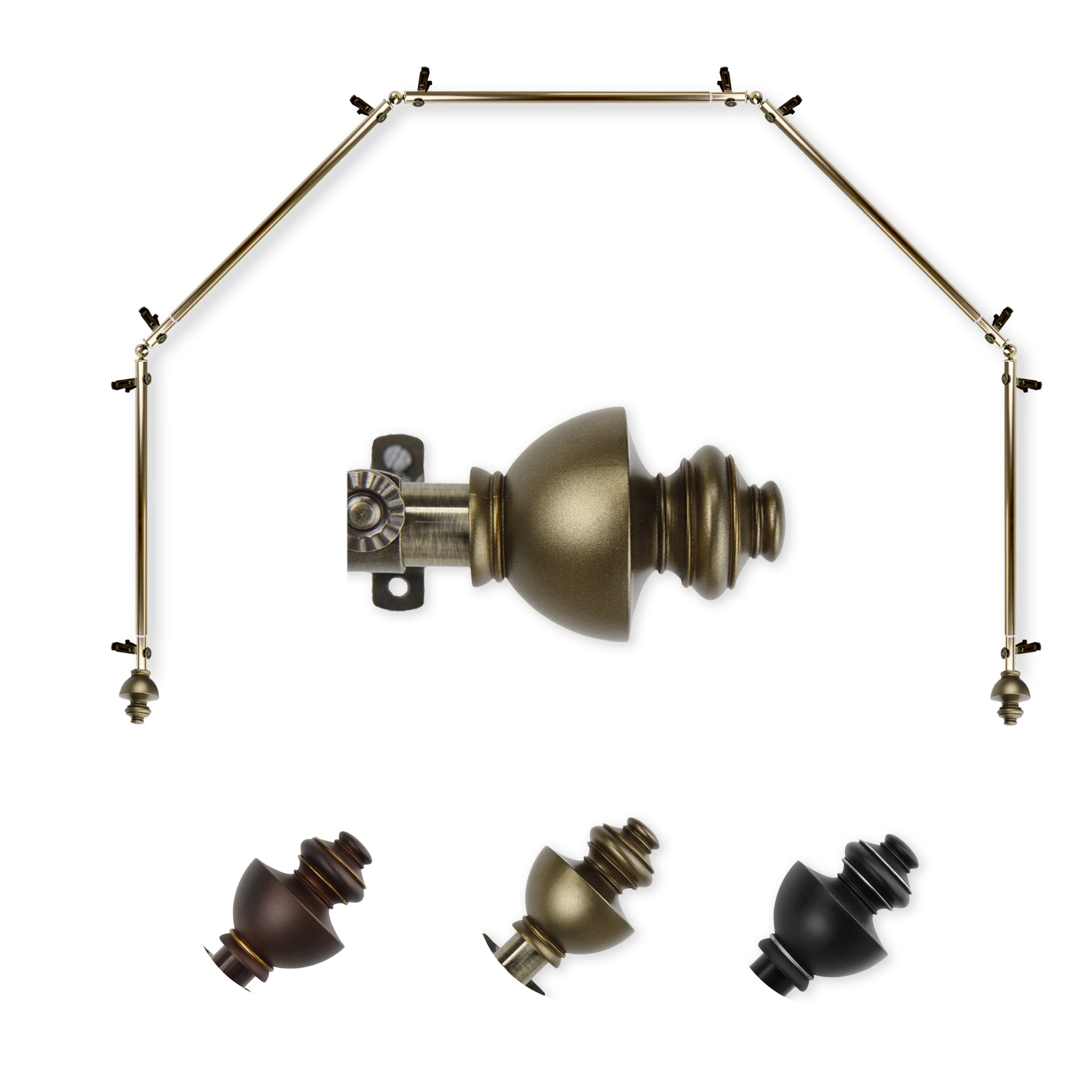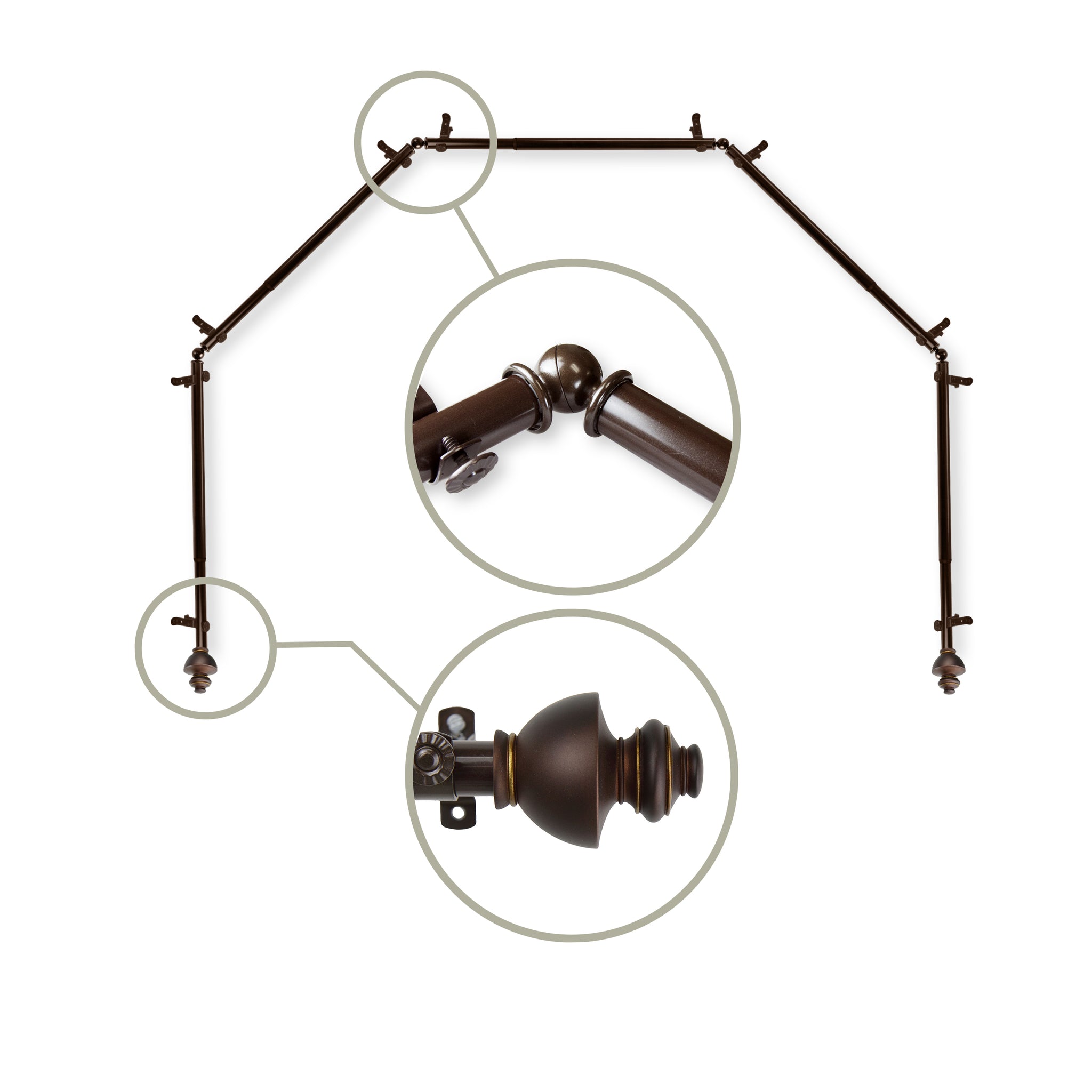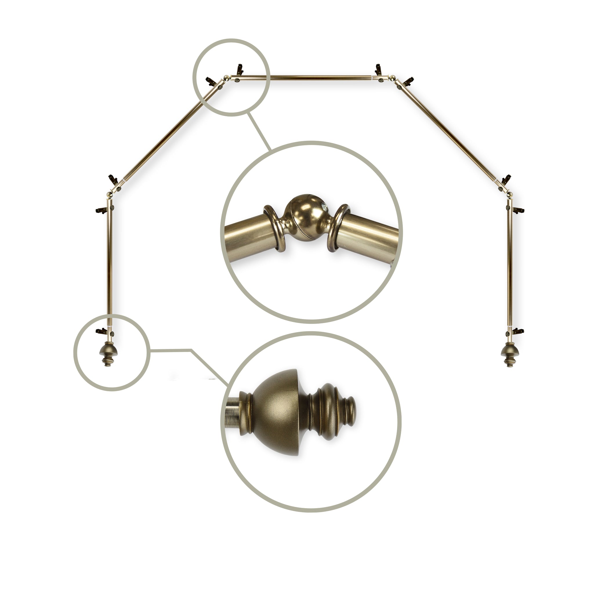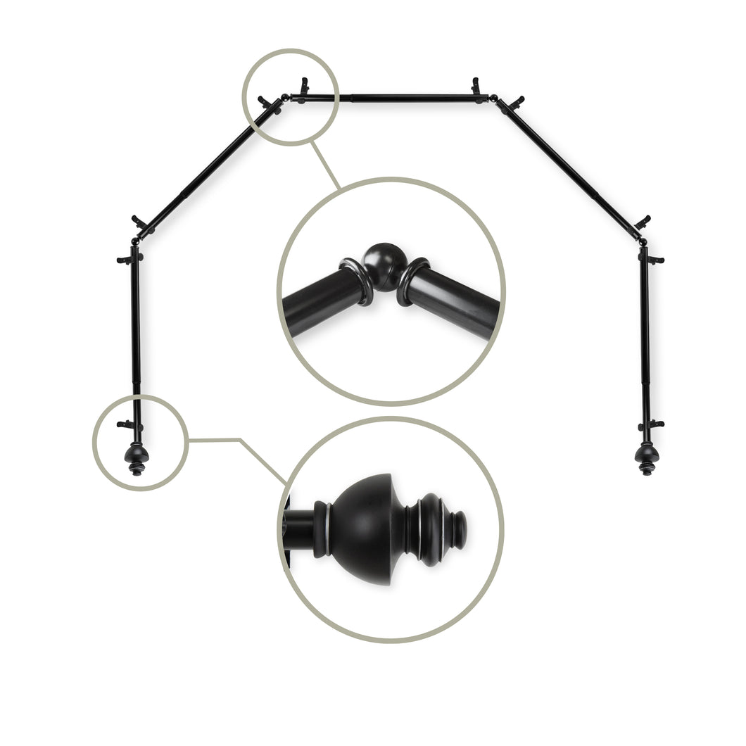 Includes five 13/16" diameter adjustable poles, one pair of decorative finials, 10 single brackets, 4 corner connectors, and mounting hardware