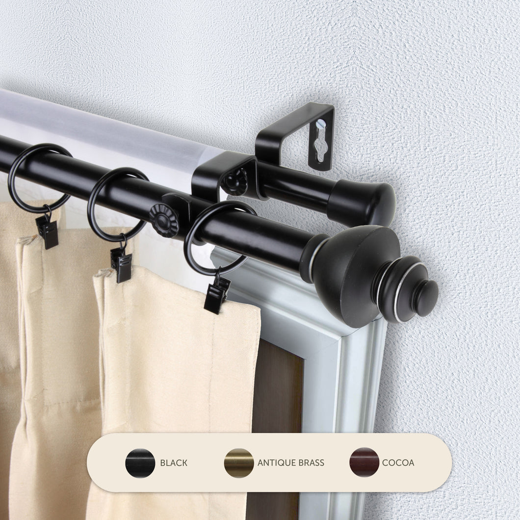 Includes two 13/16" adjustable high-quality steel telescoping poles, two finials, double brackets, and mounting hardware