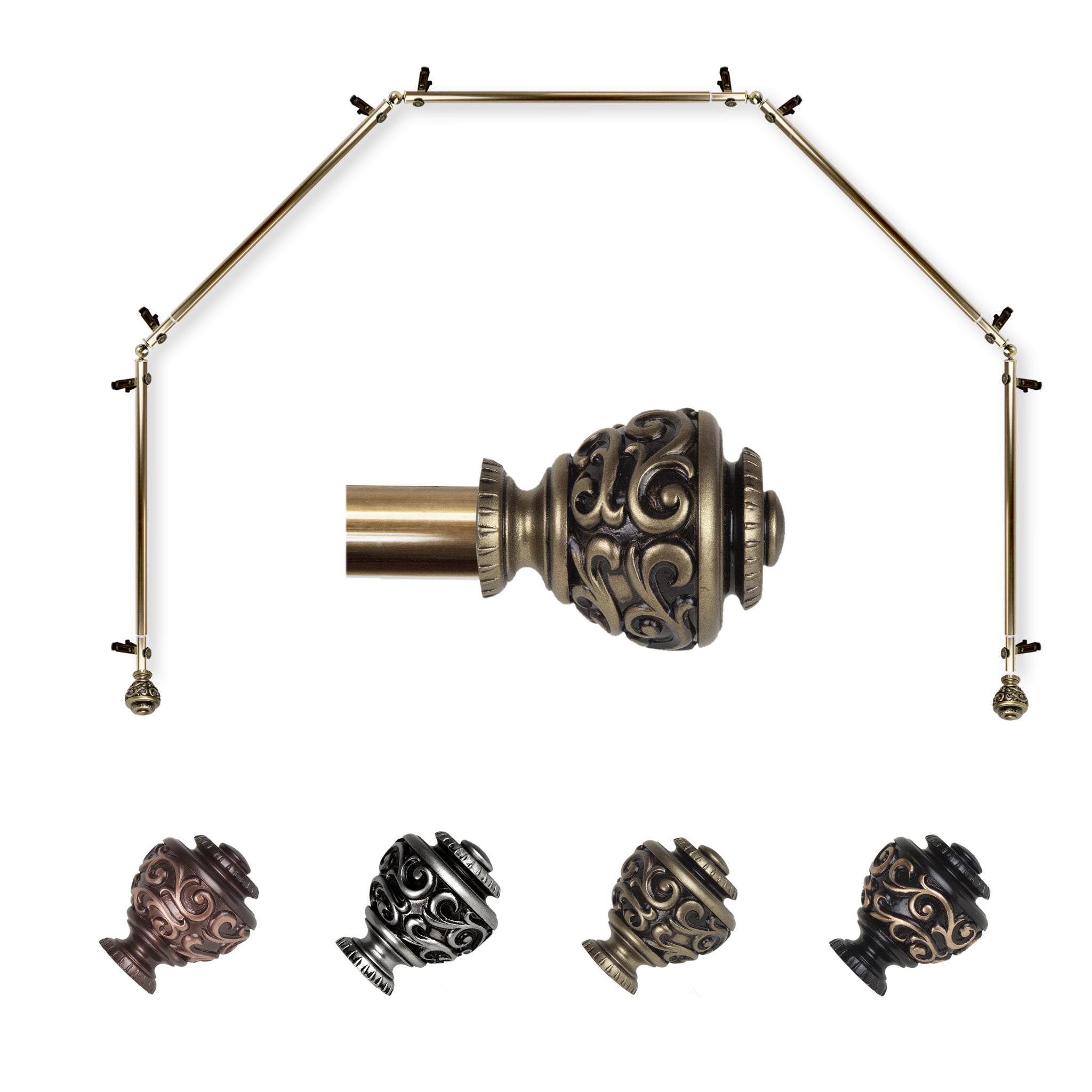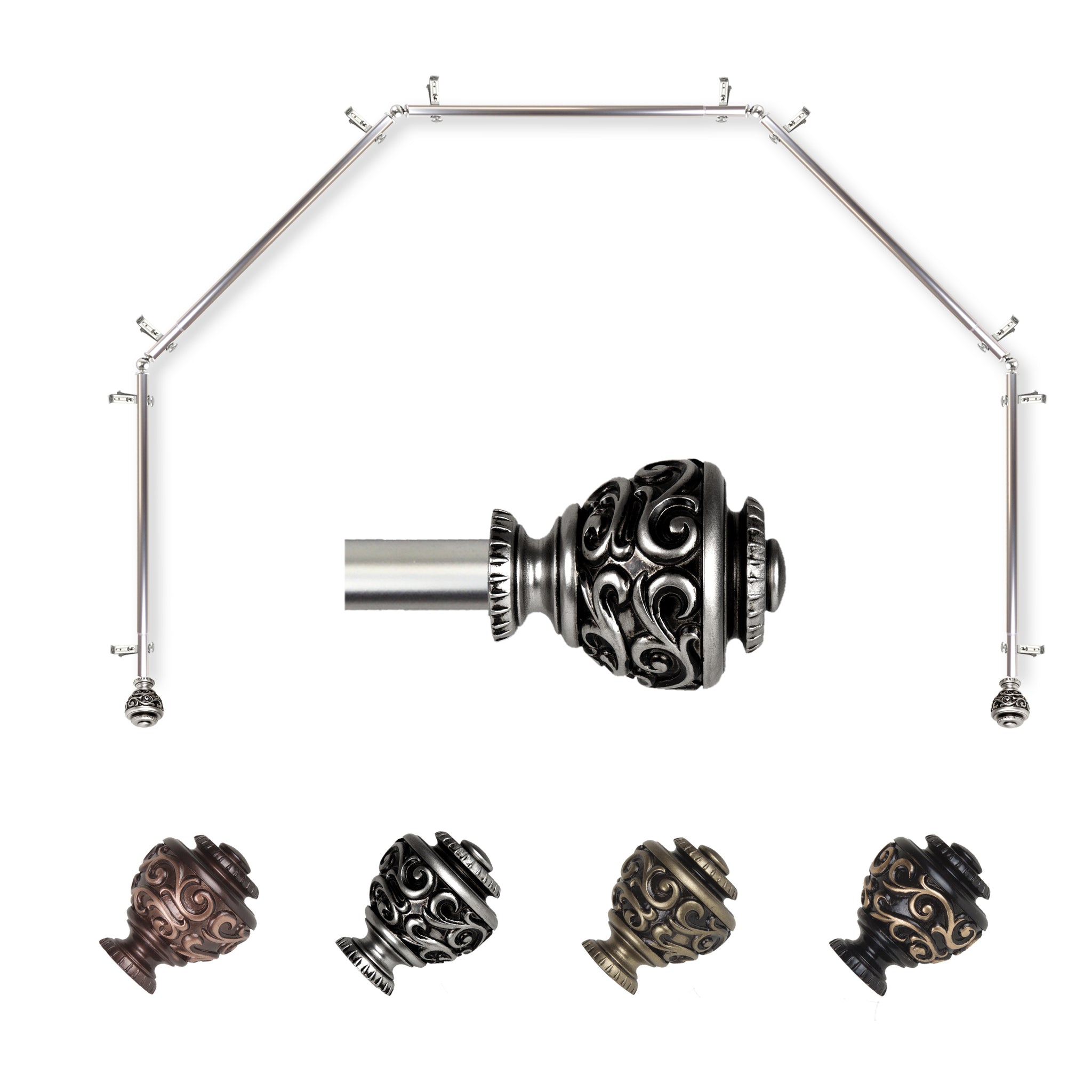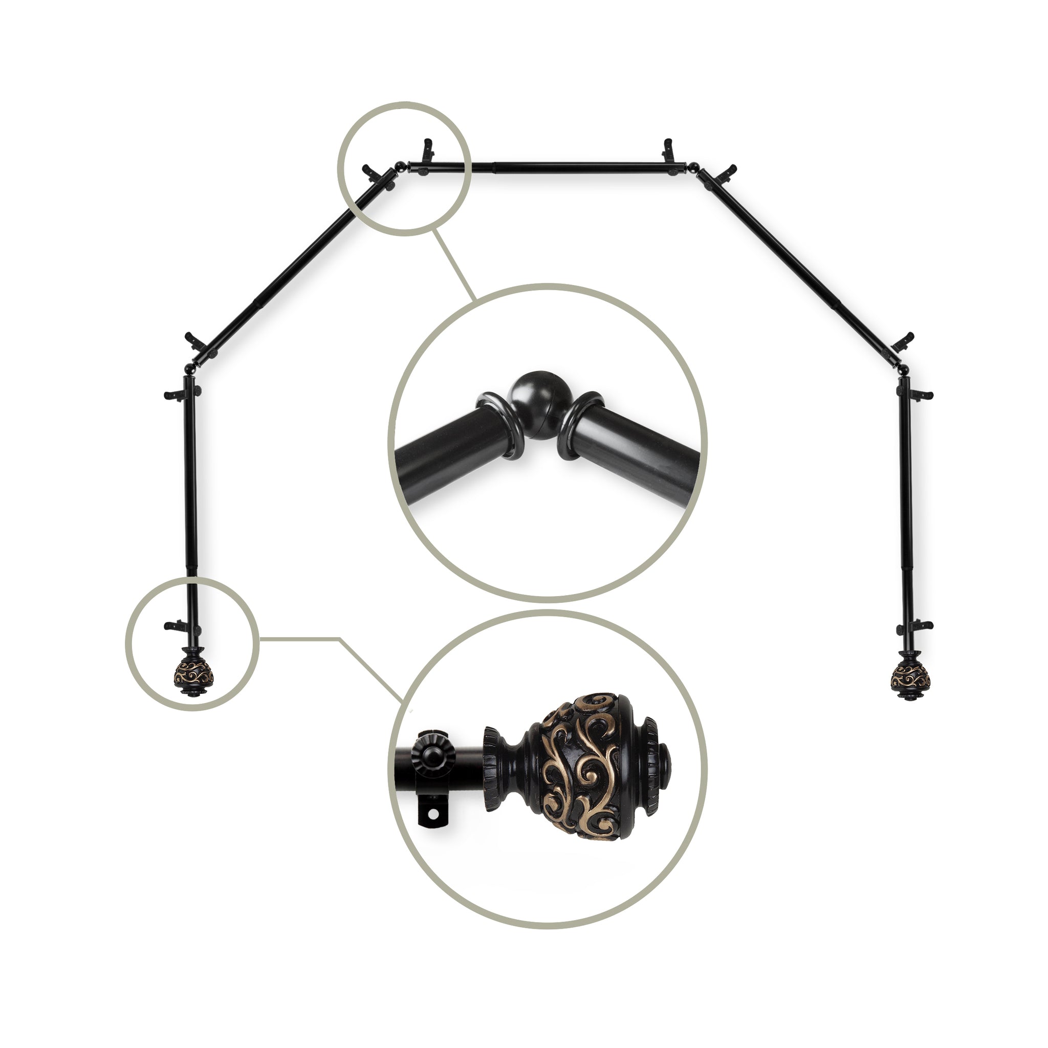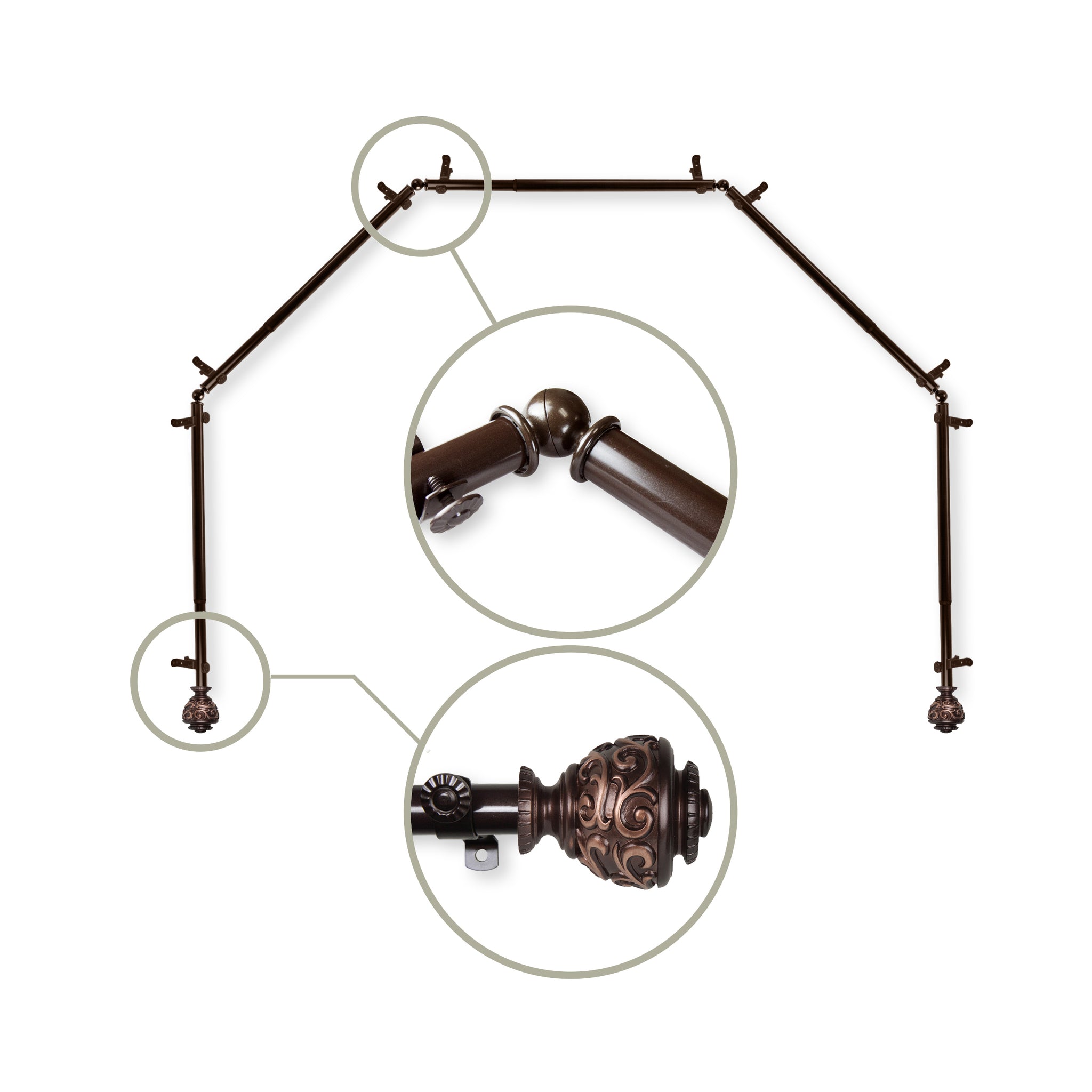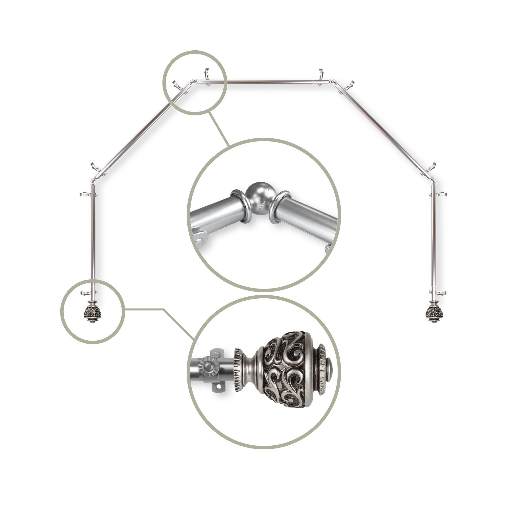Includes five 13/16" diameter adjustable poles, one pair of decorative finials, 10 single brackets, 4 corner connectors, and mounting hardware