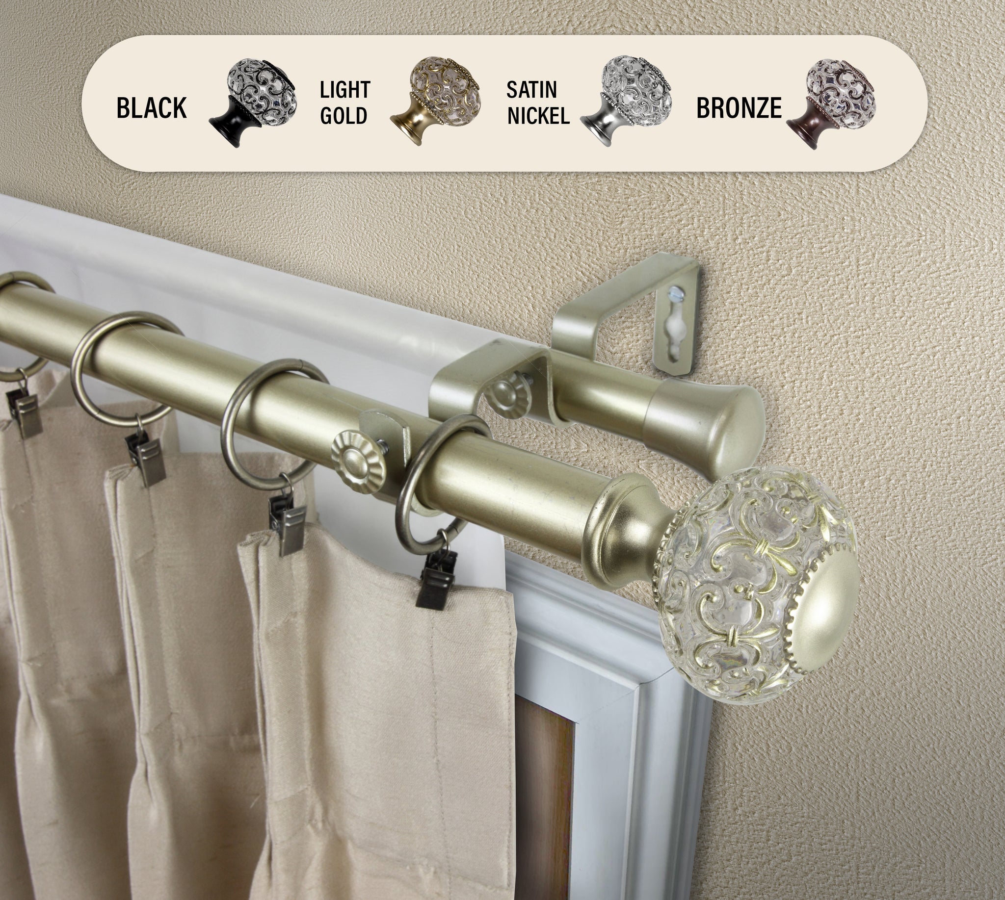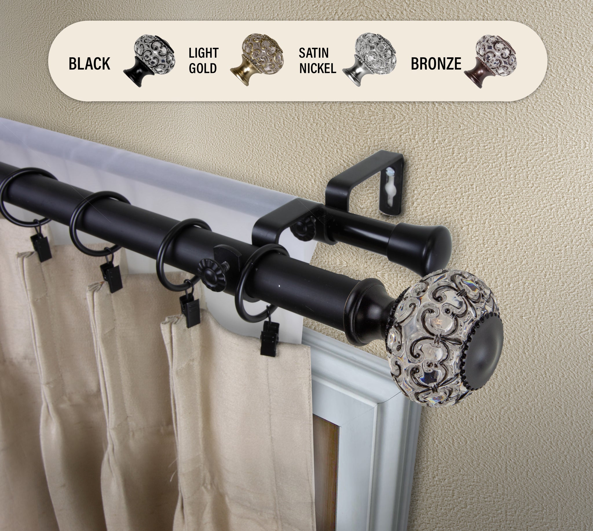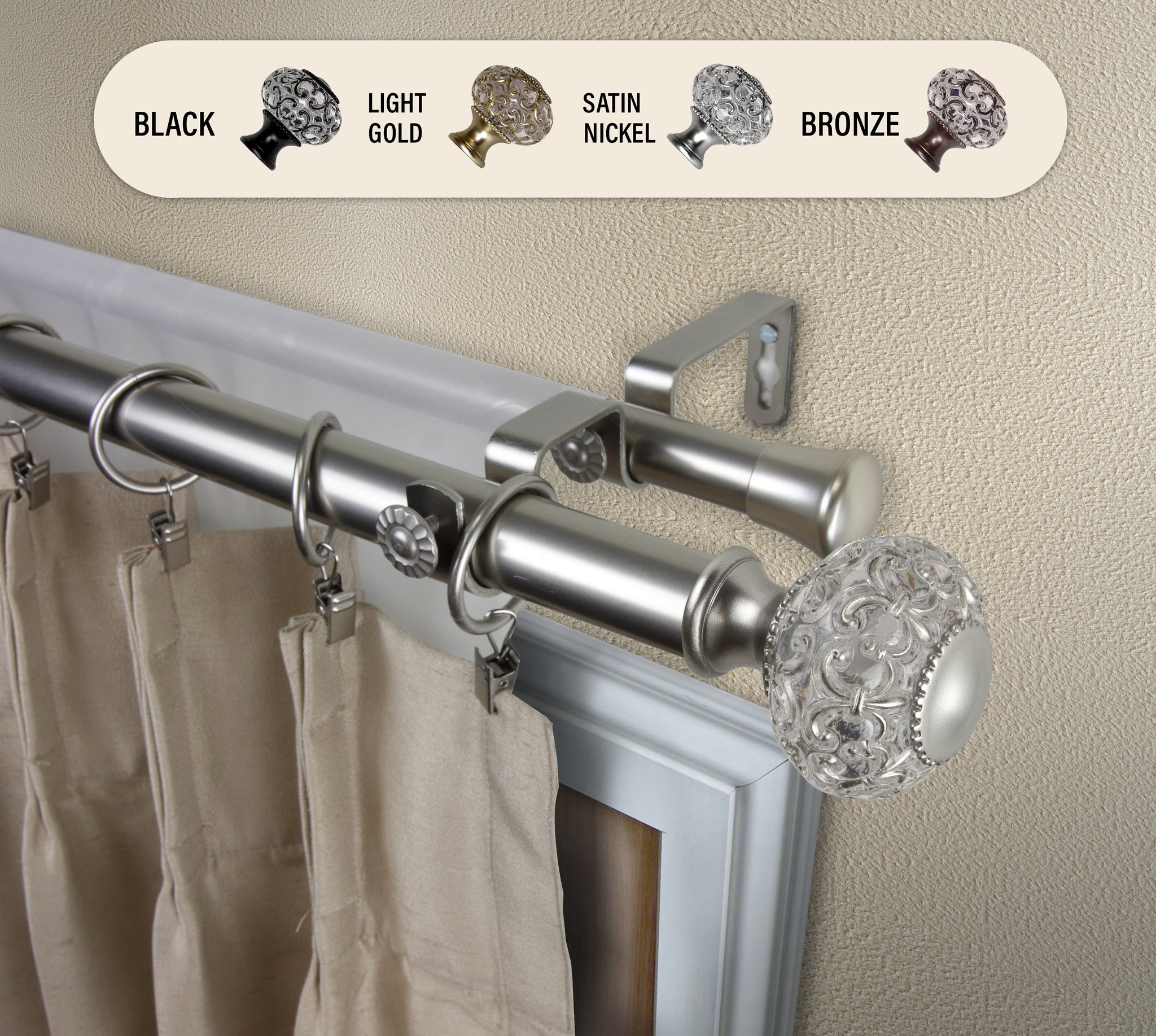 Includes one 1" high-quality steel telescoping pole and one 13/16" adjustable back rod, two finials, double brackets, and mounting hardware
