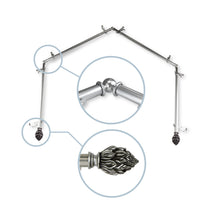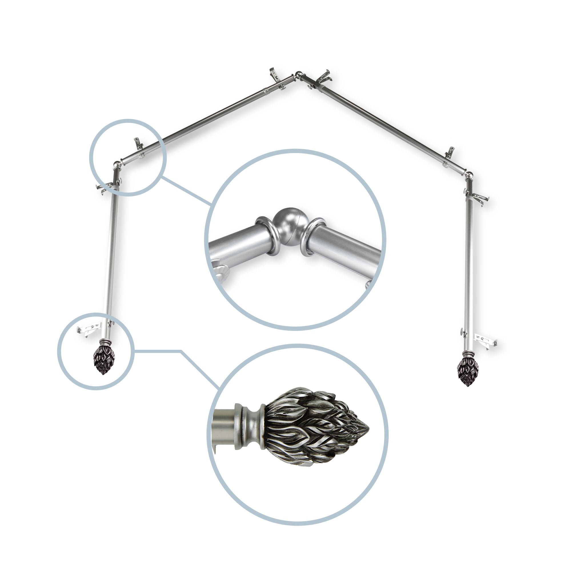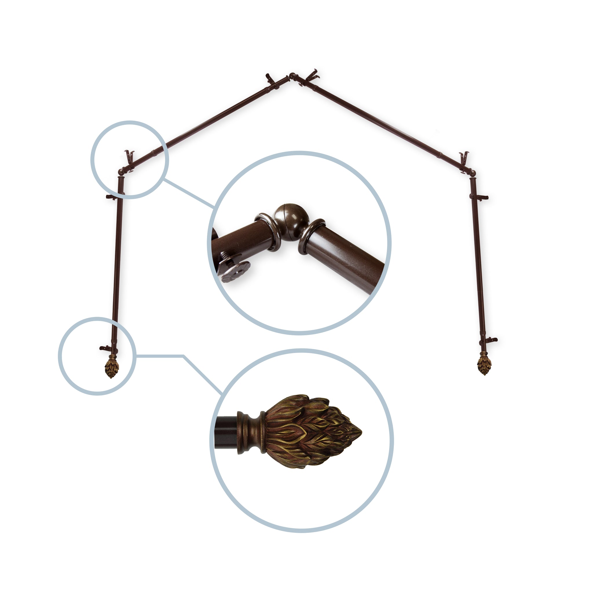 Includes four 13/16" diameter adjustable poles, one pair of decorative finials, 8 single brackets, 3 corner connectors, and mounting hardware