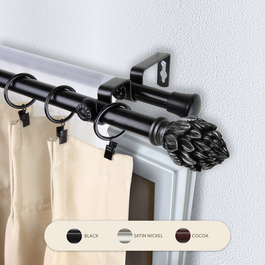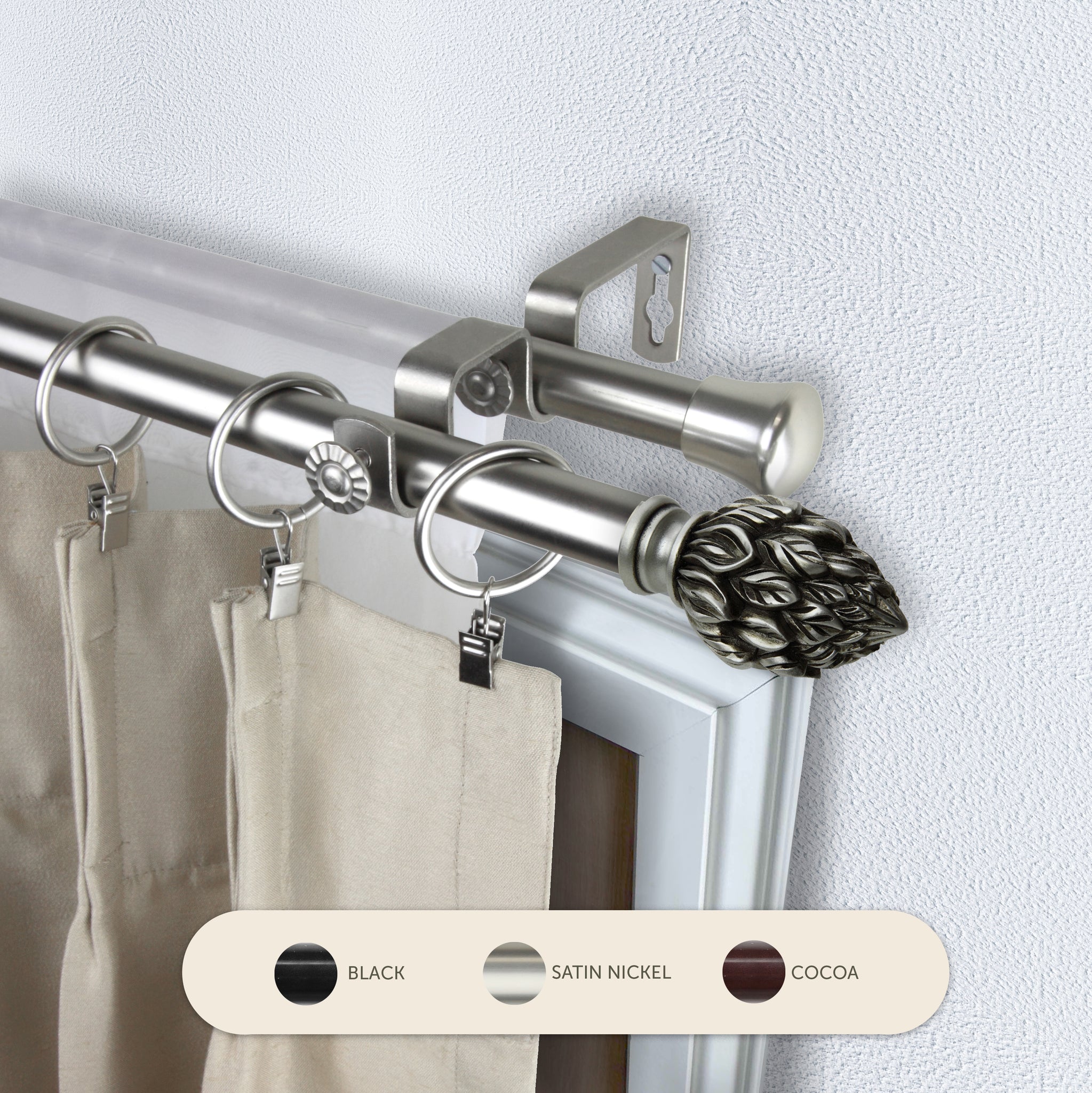 Includes two 13/16" adjustable high-quality steel telescoping poles, two finials, double brackets, and mounting hardware